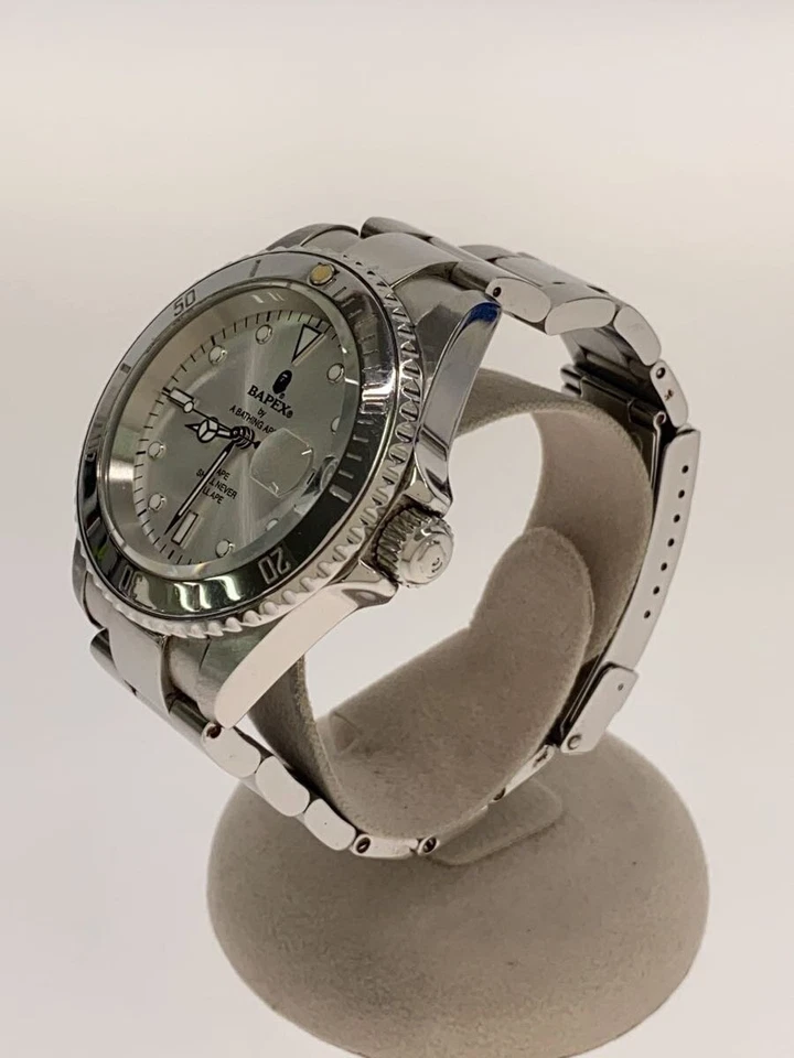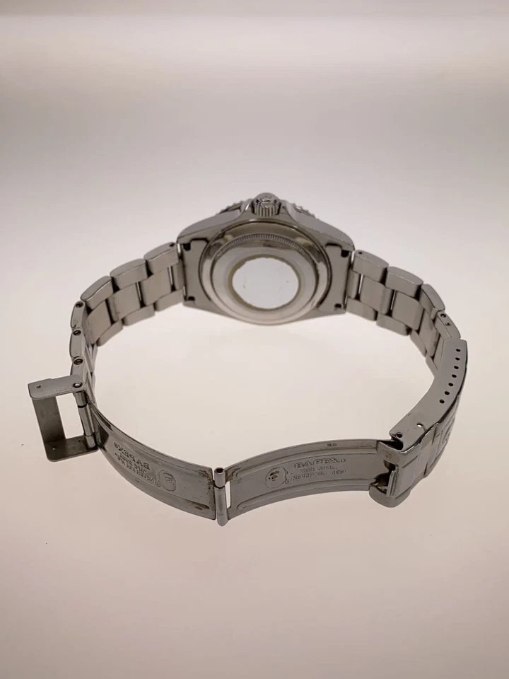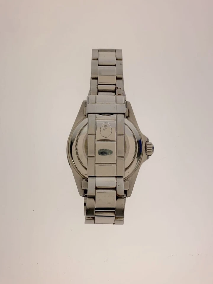A BATHING APE Automatic Analog Stainless Steel Watch Silver Dial Excellent JAPAN
