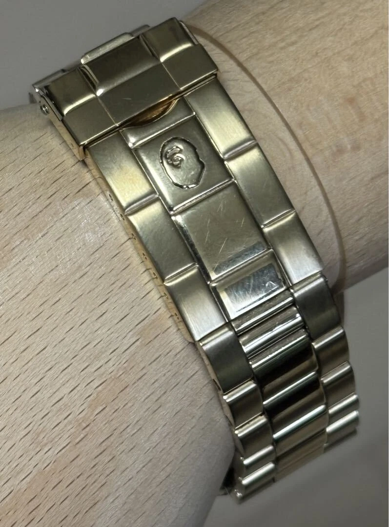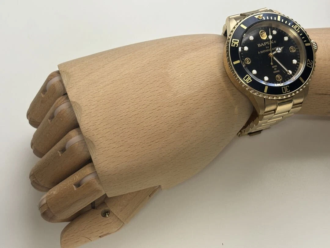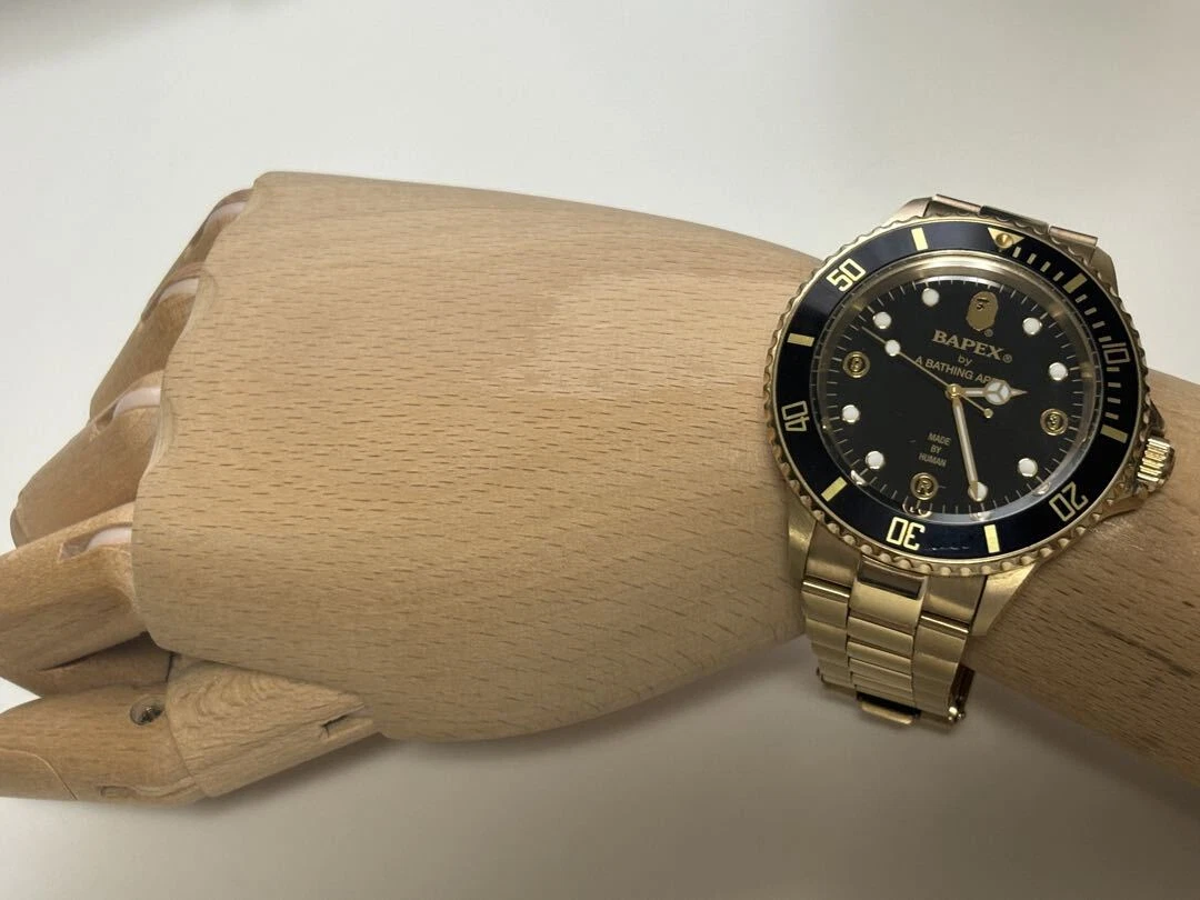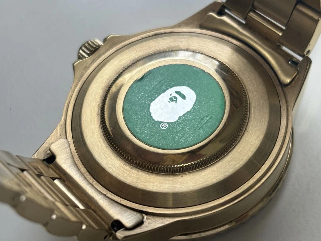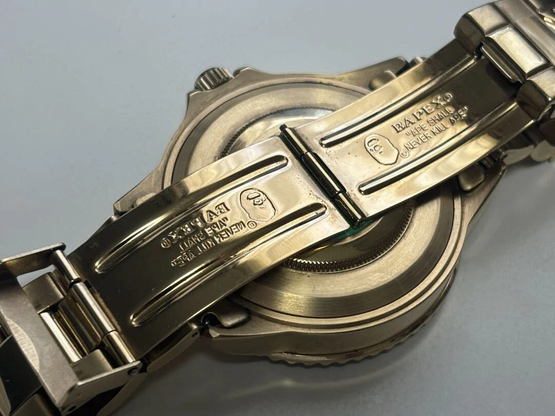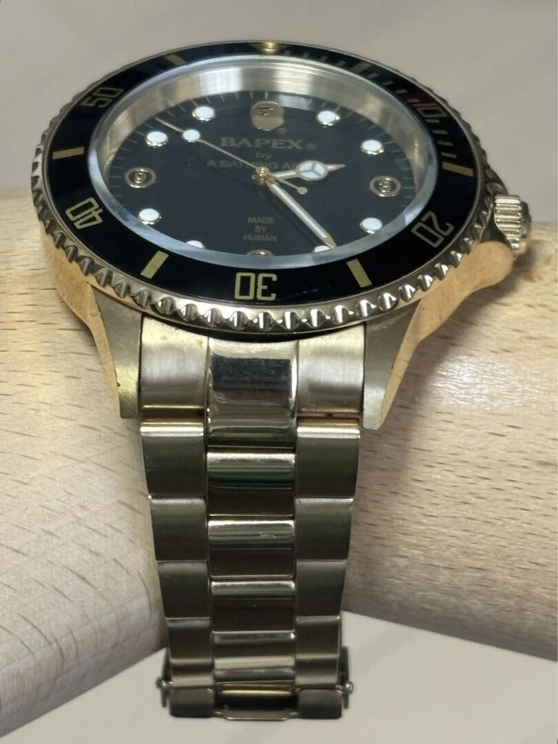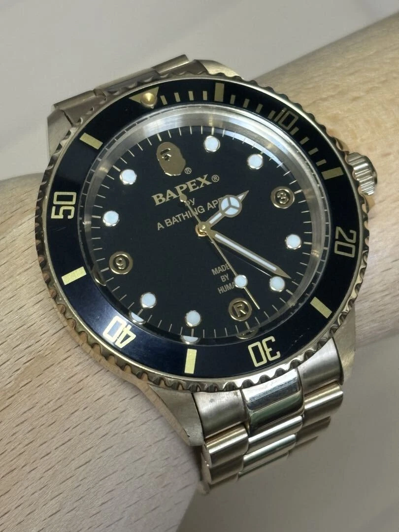 A Bathing Ape Analog Automatic Men Gold Bapex Black Dial Watch With Case Limited