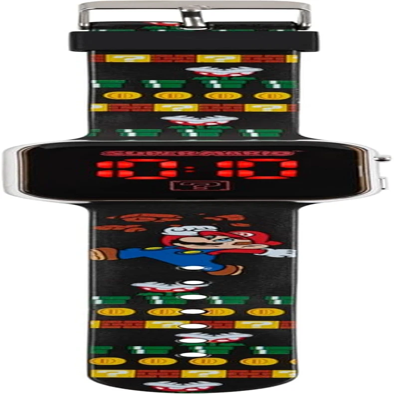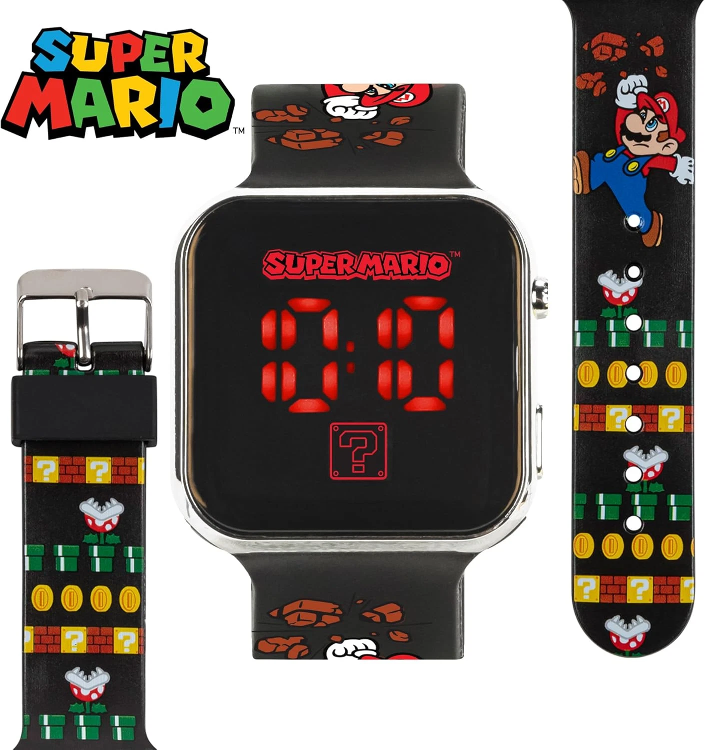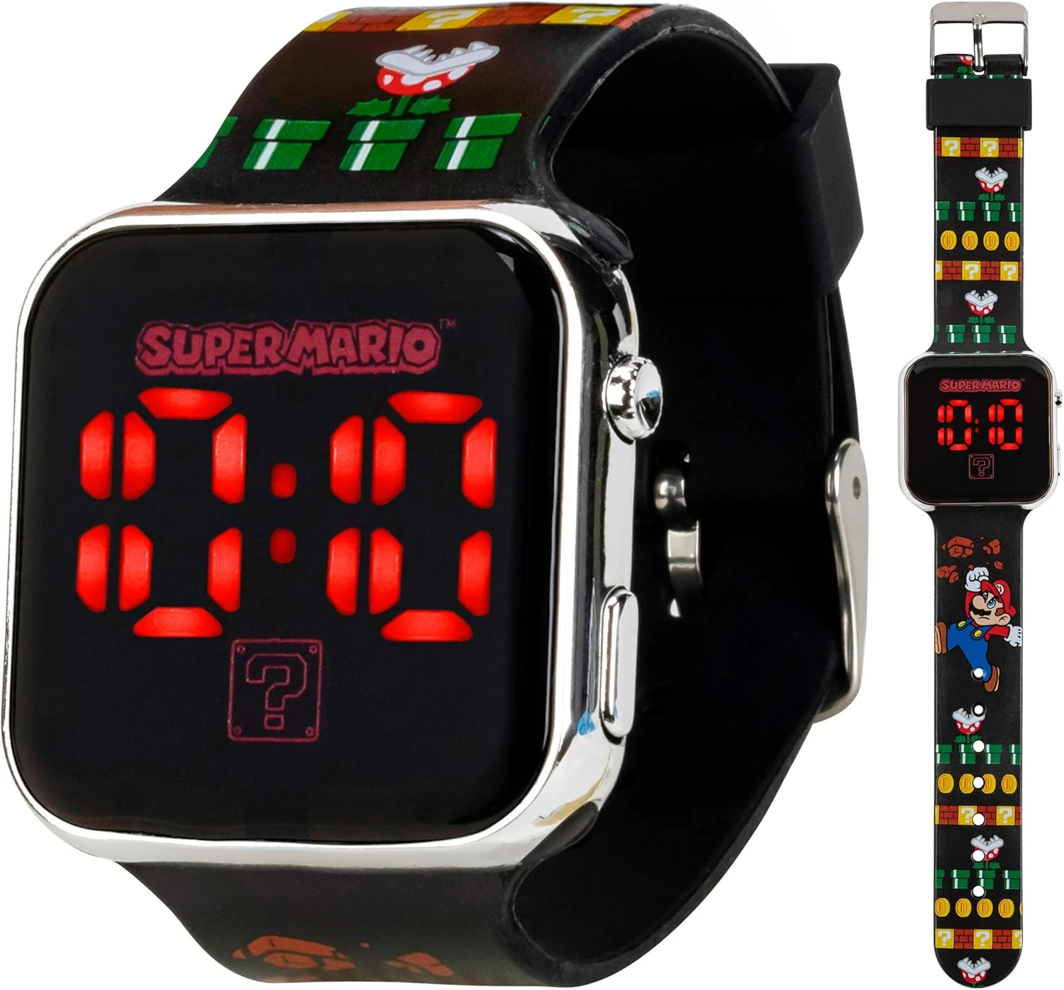 Accutime Nintendo Super Mario Kids LED Watch – Silver Plastic Case, Red LED Disp