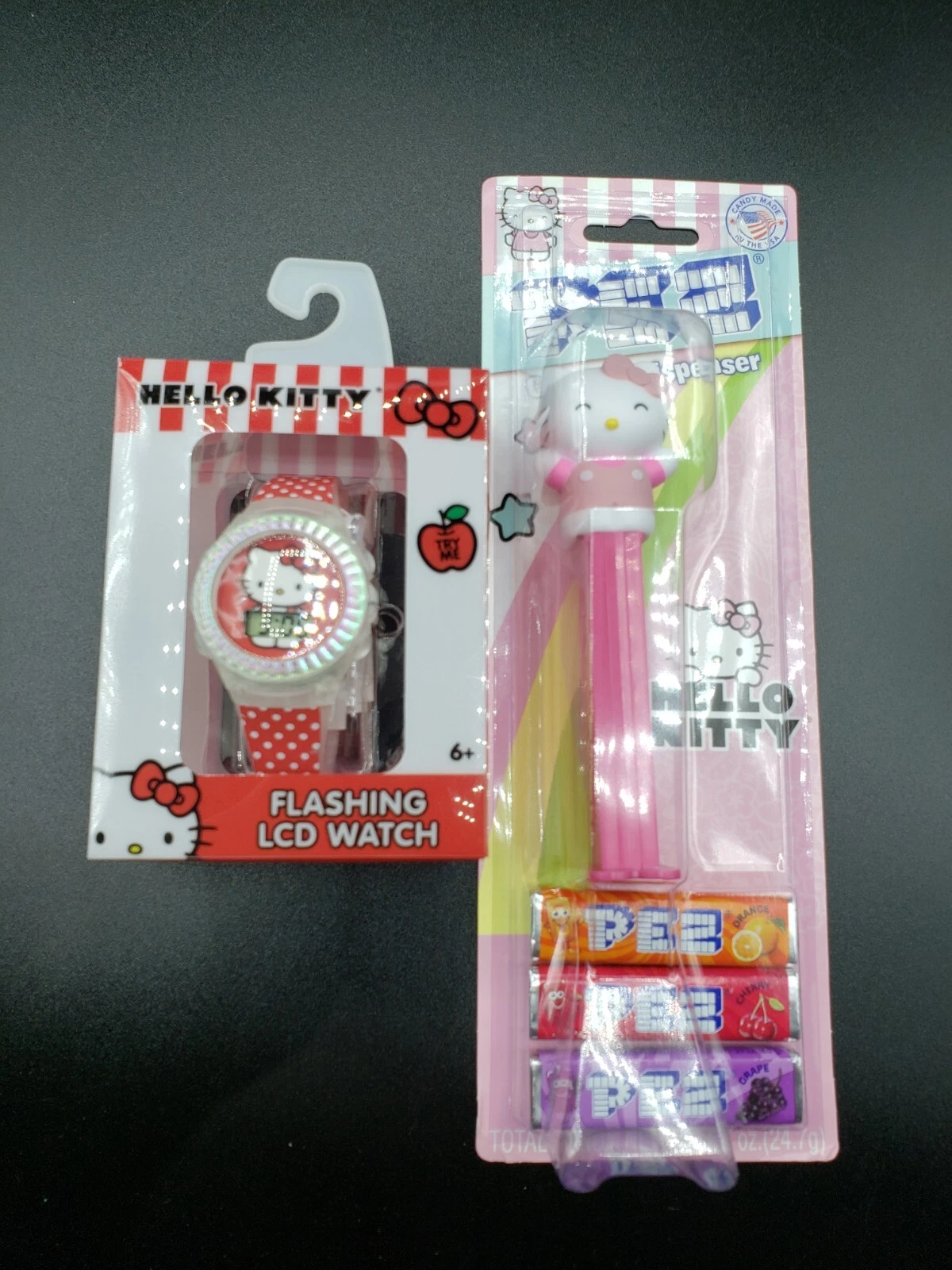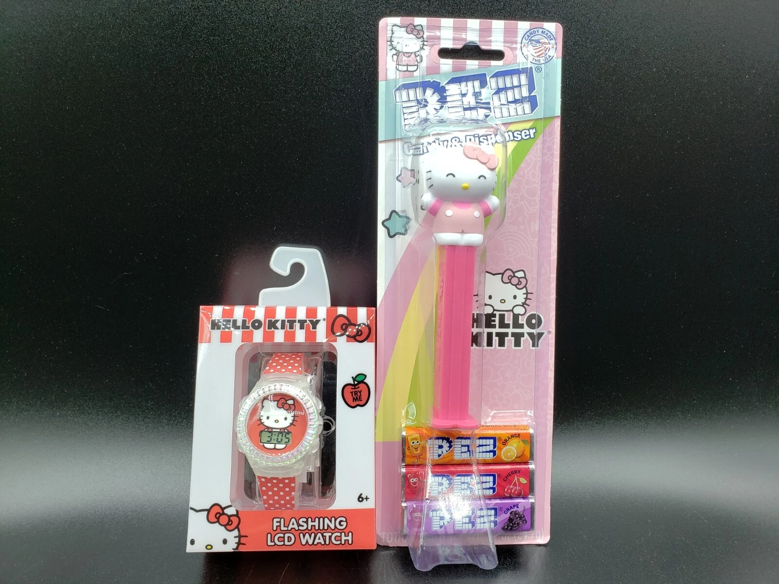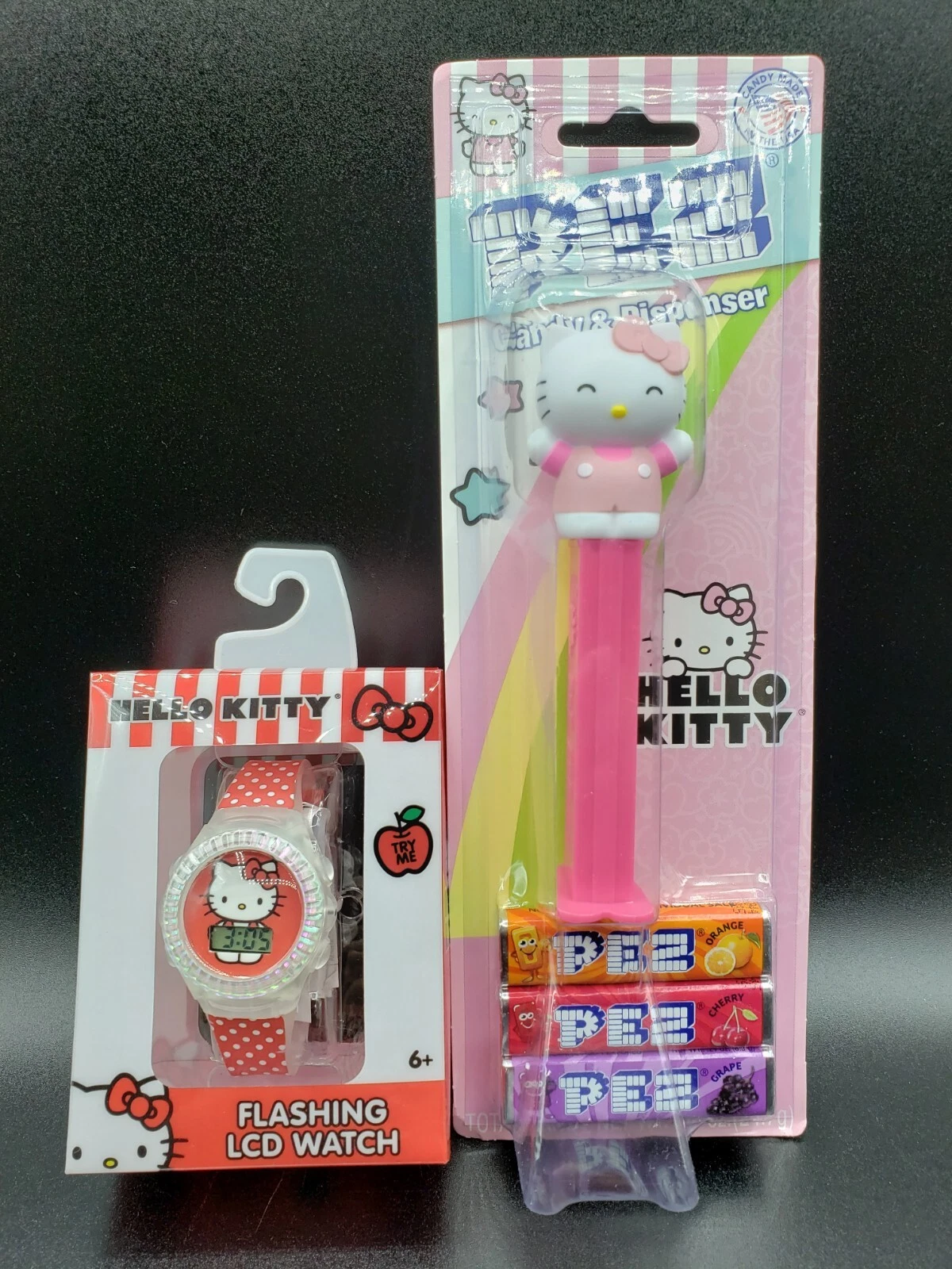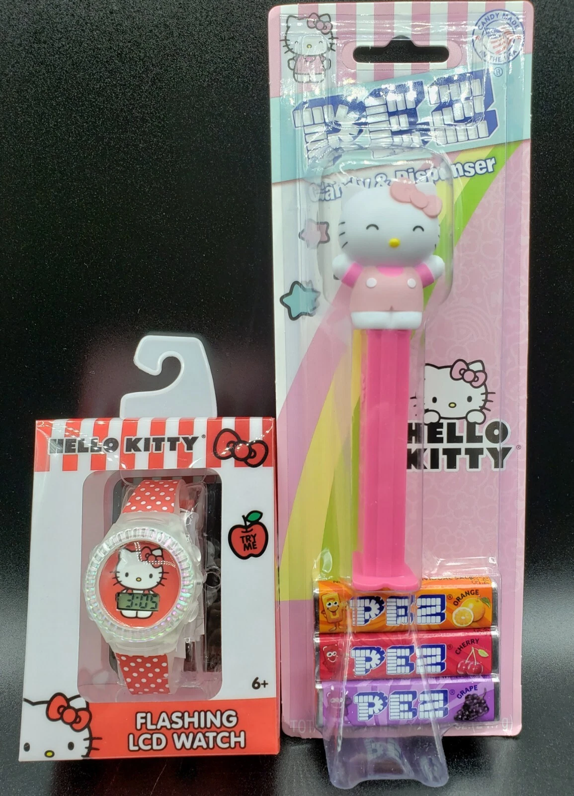 Hello Kitty Polka Dot LCD Kid's Watch & Hello Kitty PEZ Candy Dispenser - New