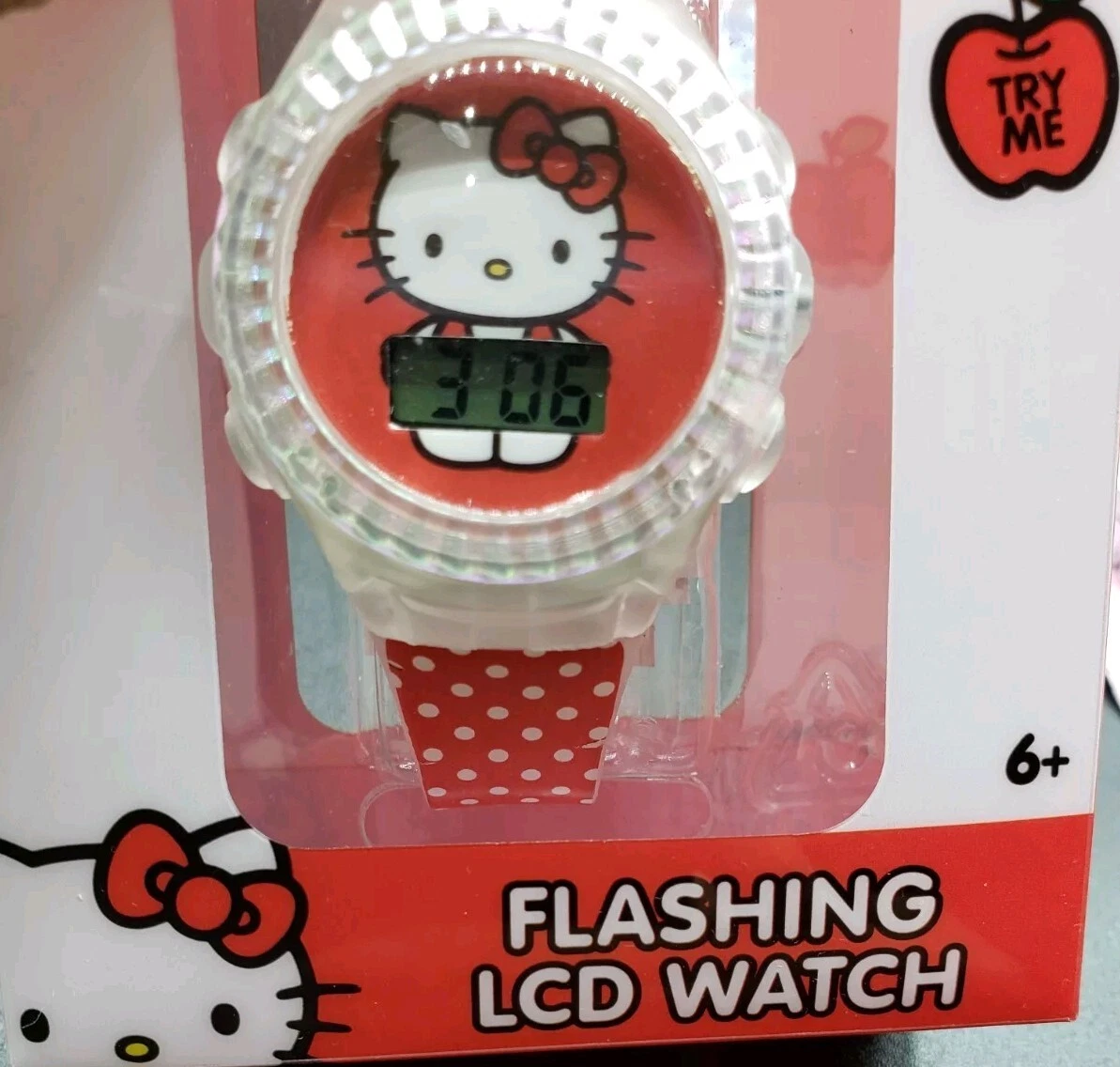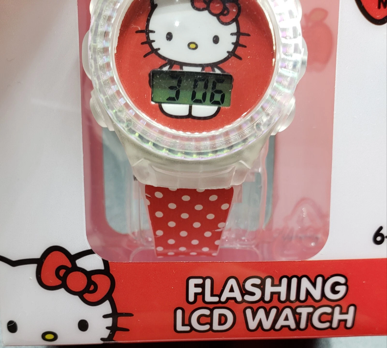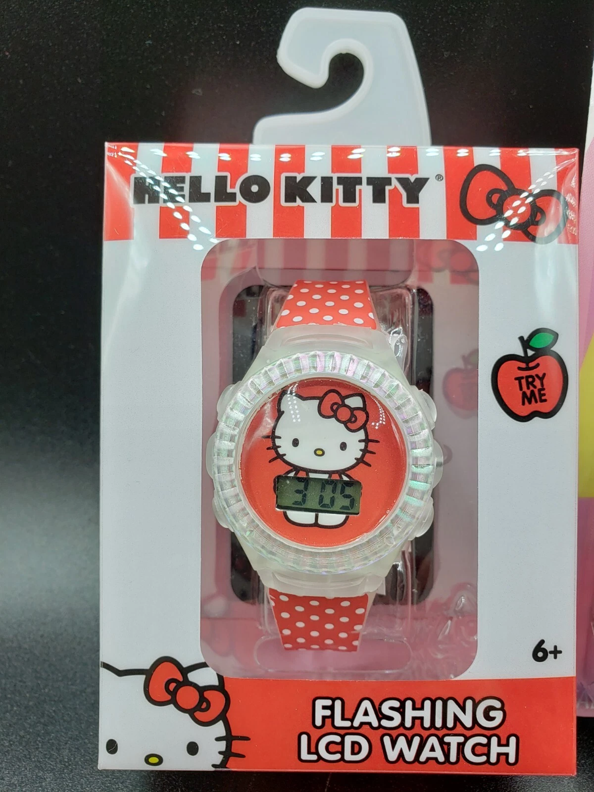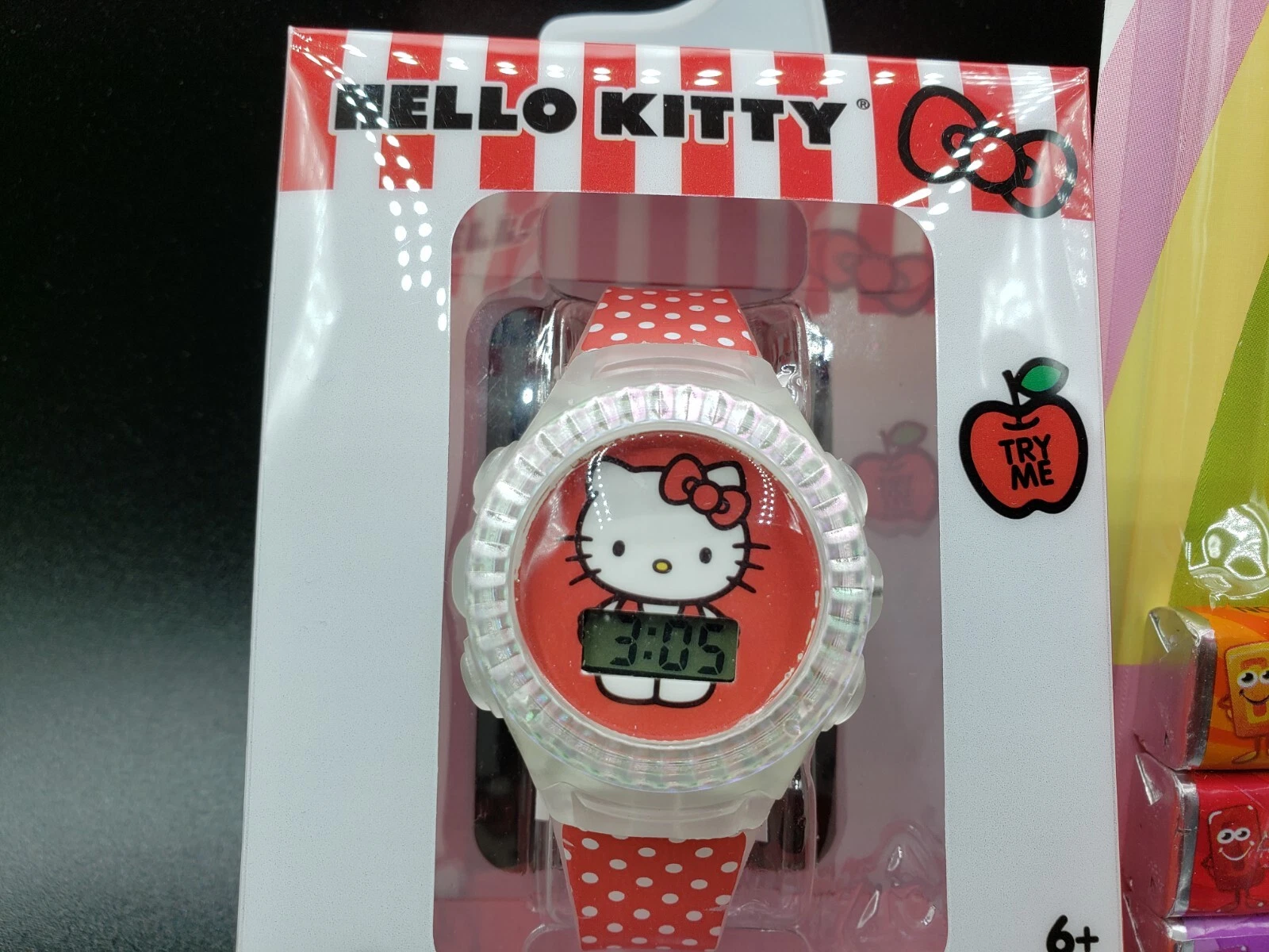 Hello Kitty Polka Dot LCD Kid's Watch & Hello Kitty PEZ Candy Dispenser - New