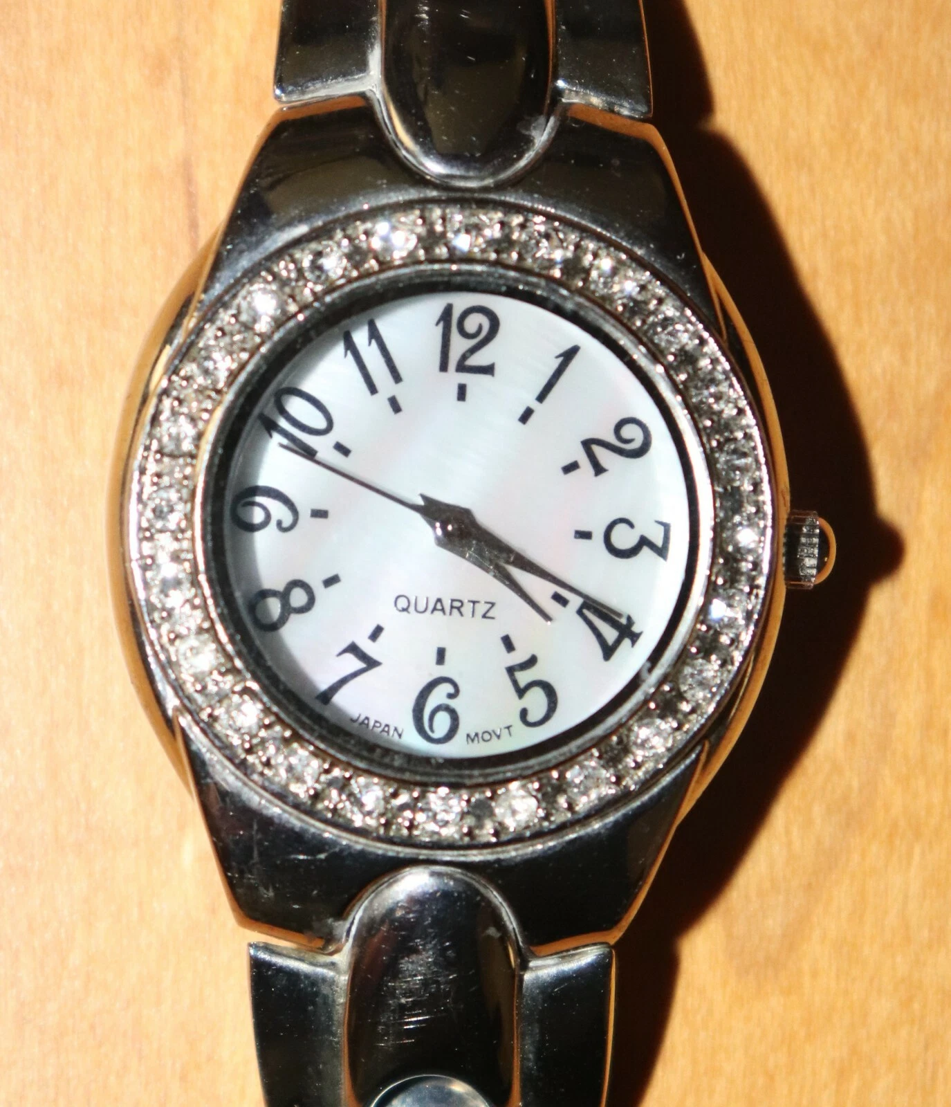 Ladies Analog Quartz Watch Small, 6" band , 5/8" wide Faux-pearl face.