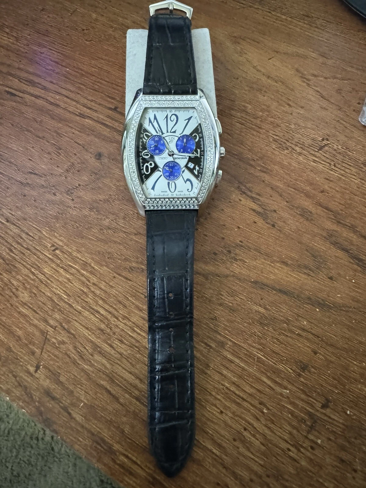Authentic ELINI DRESS WATCH STEEL 4CTS OF DIAMOND CHRONO JUMBO 53MM-46MM