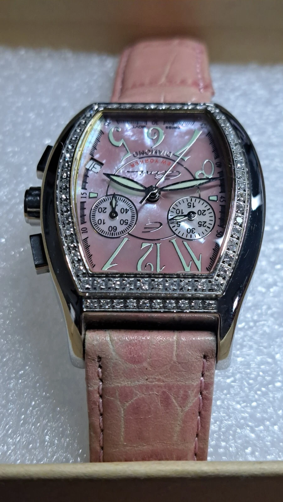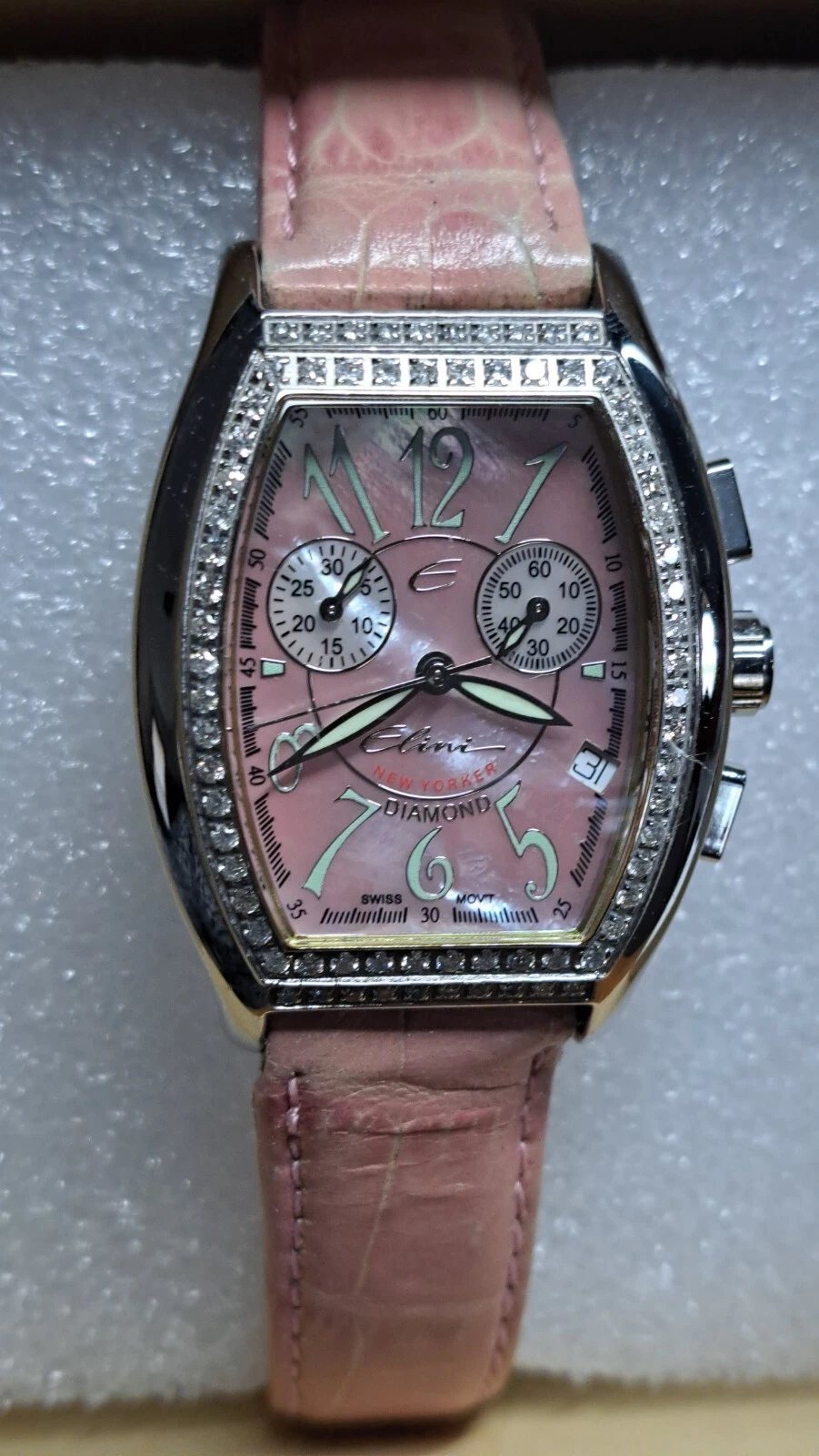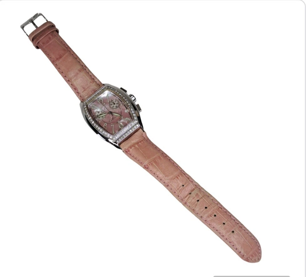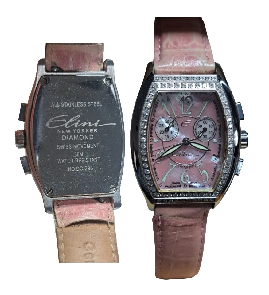 Elini New Yorker Watch 1ct Diamond Leather Stainless DC-298 Swiss Movement Pink