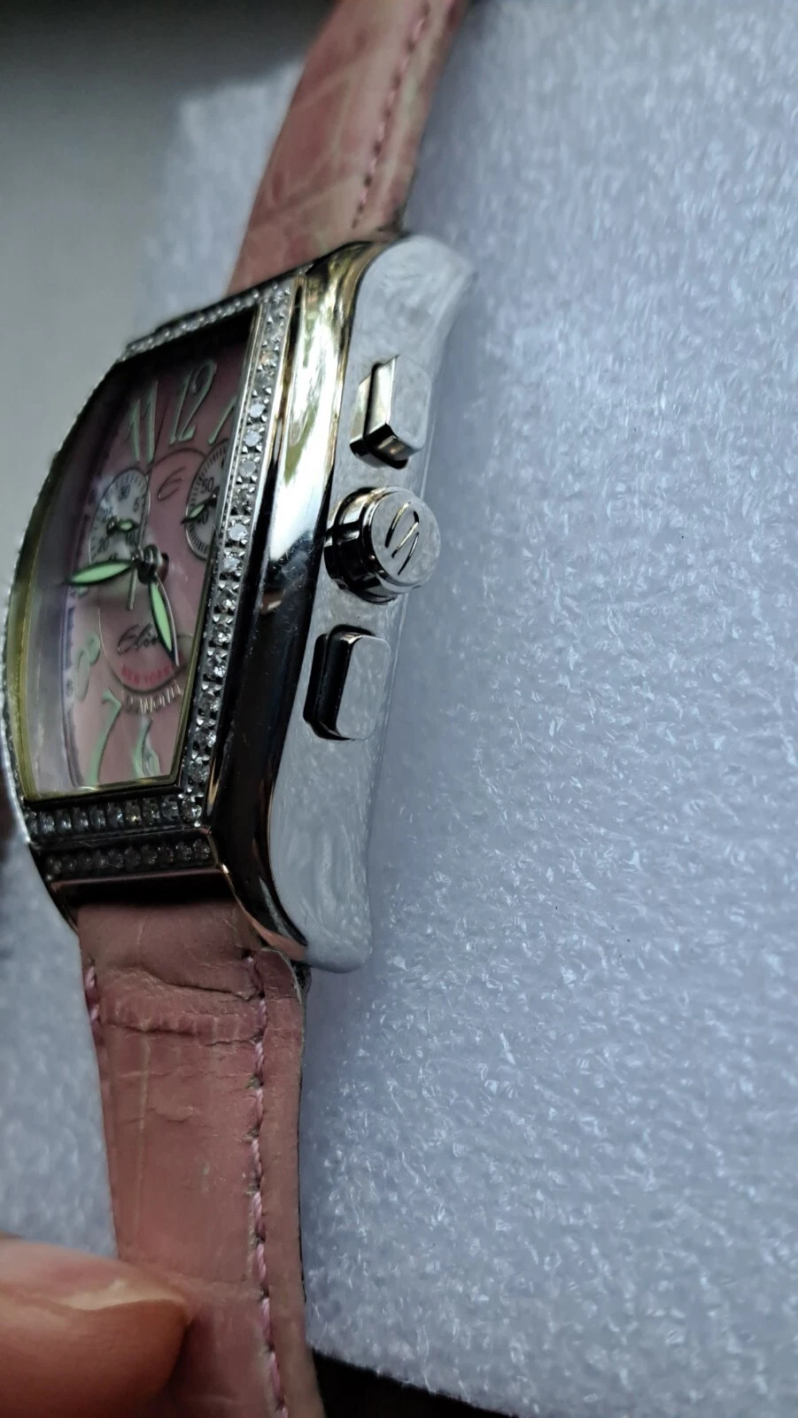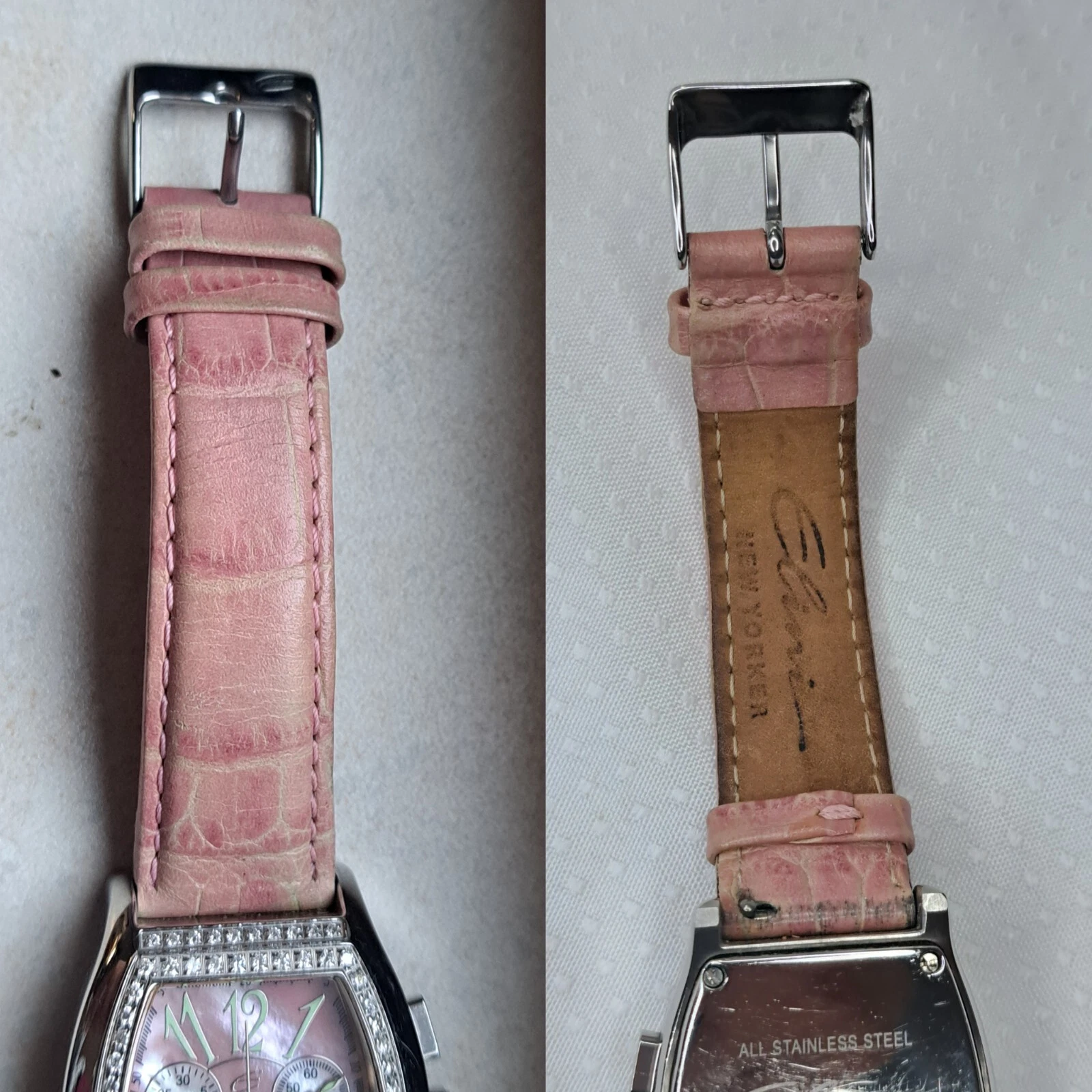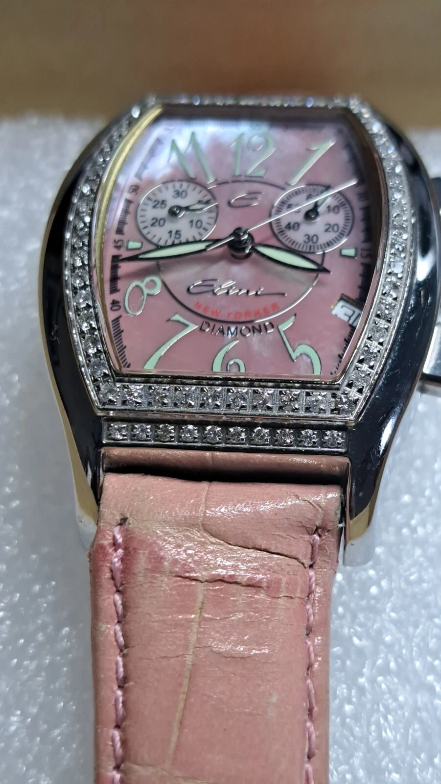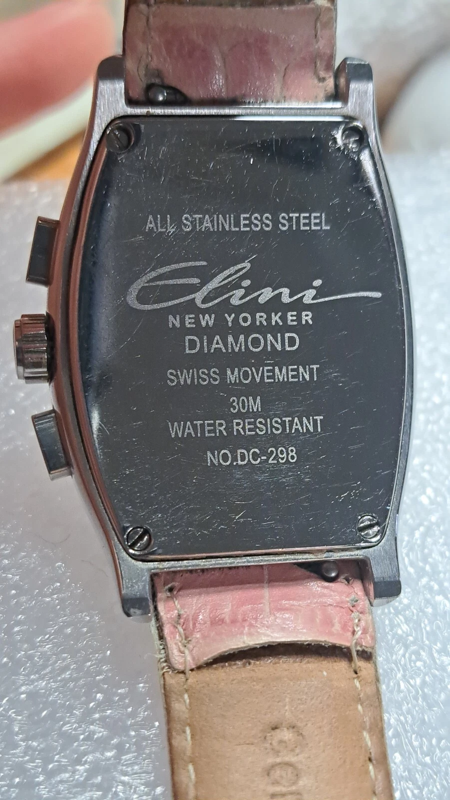 Elini New Yorker Watch 1ct Diamond Leather Stainless DC-298 Swiss Movement Pink