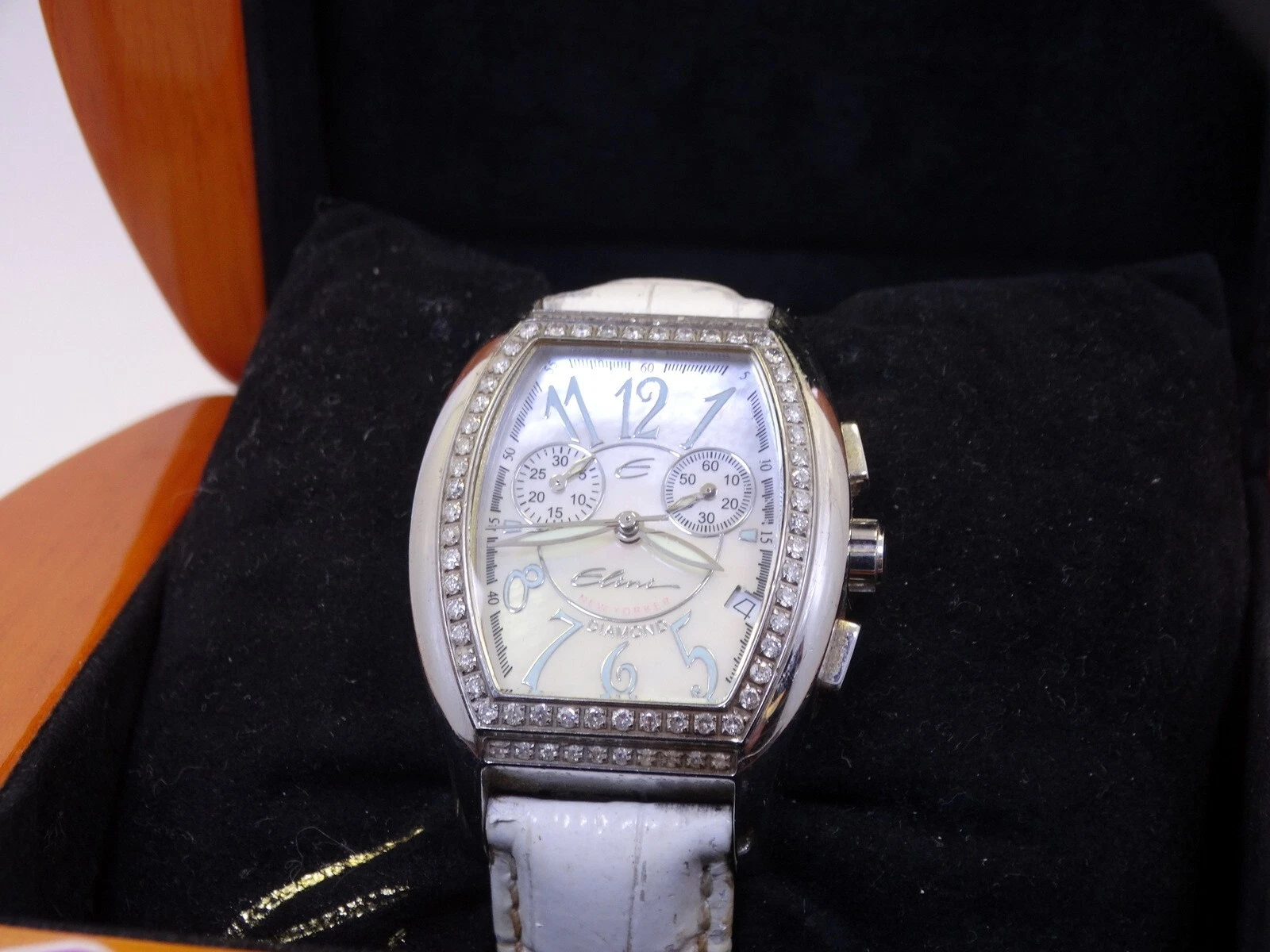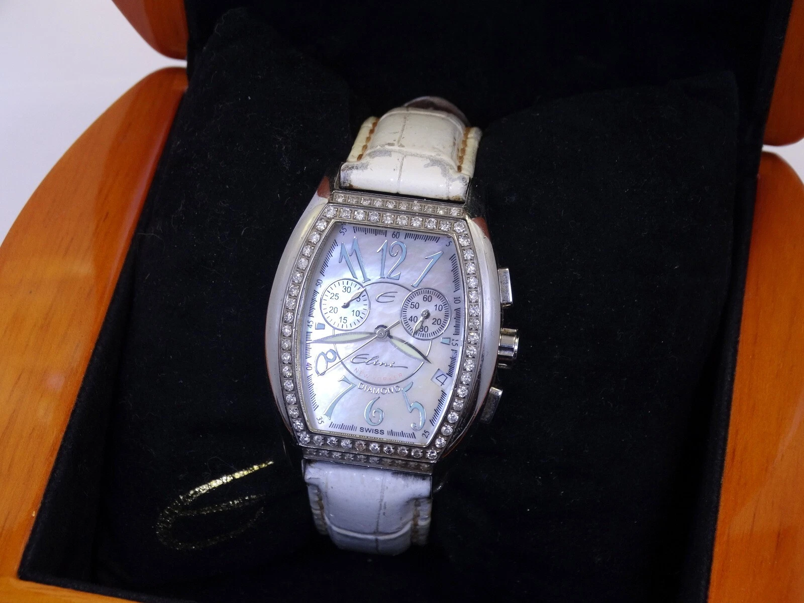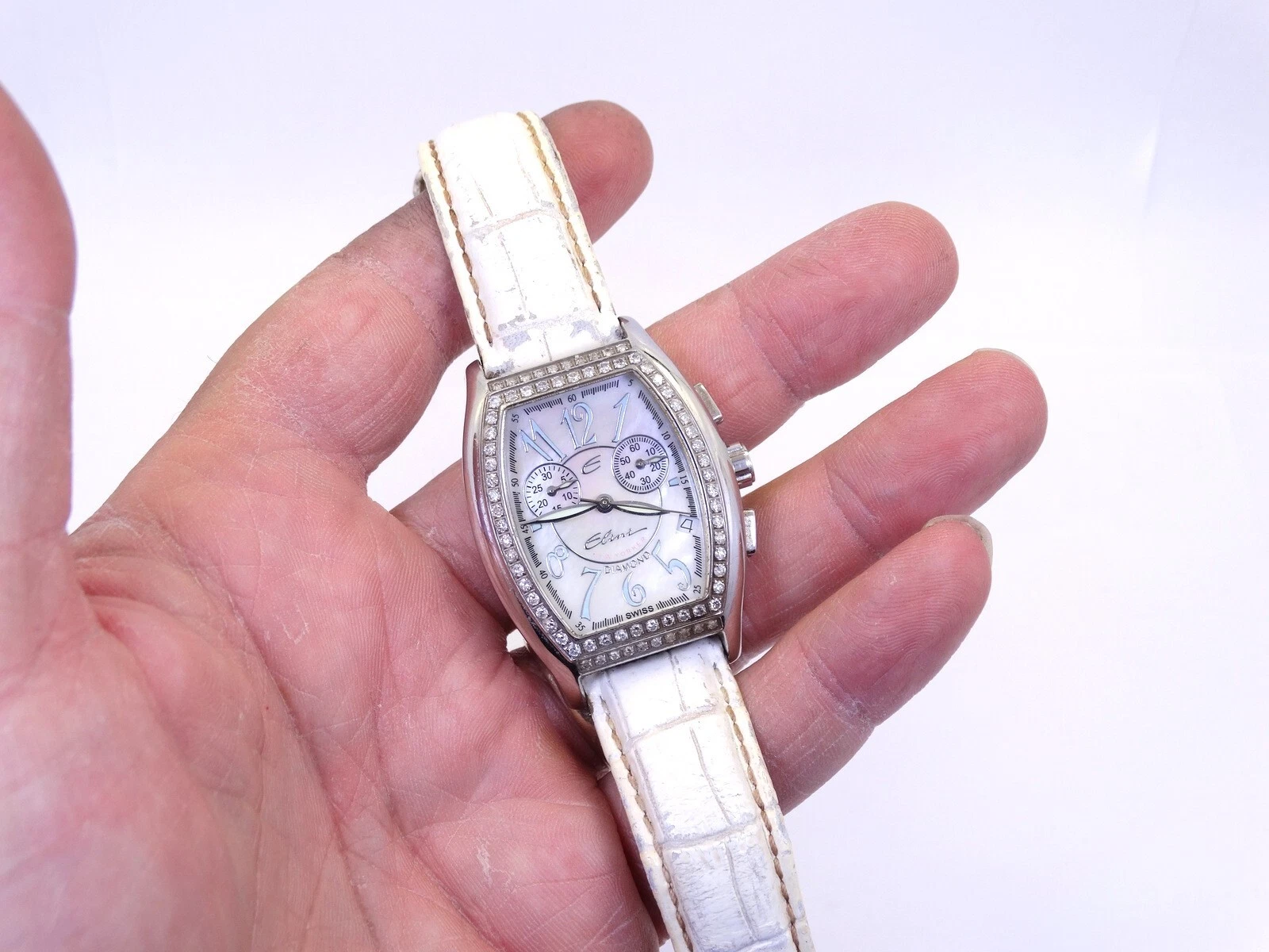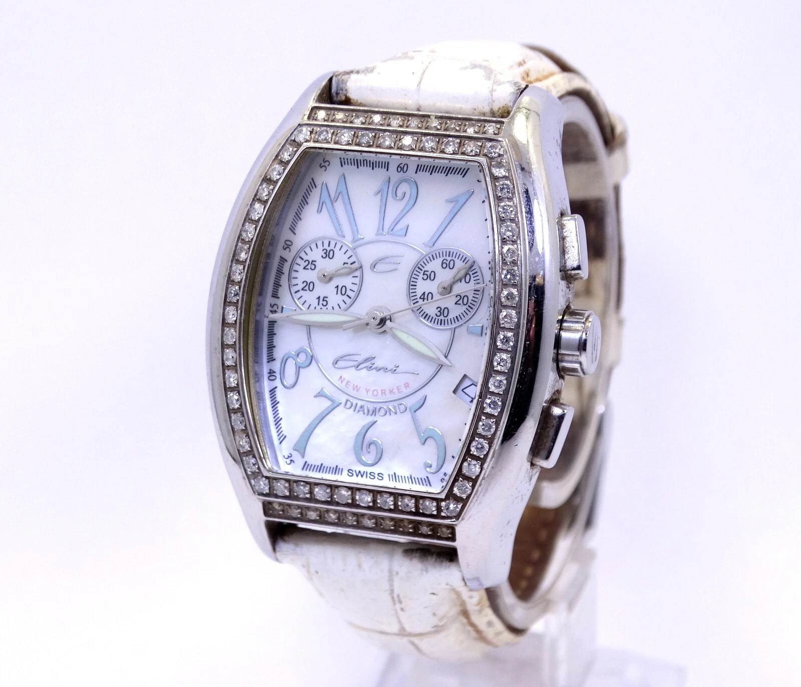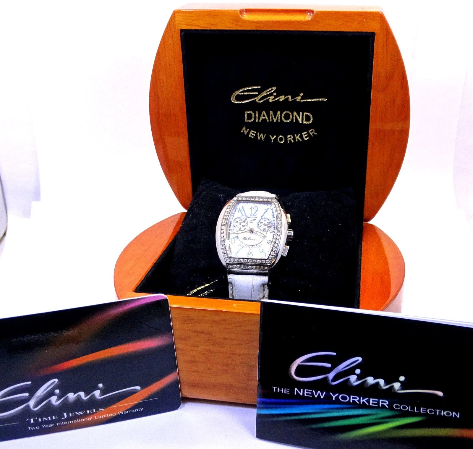 ELINI The New Yorker Diamond Bezel Mother of Pearl Chronograph Dial Watch DD-617