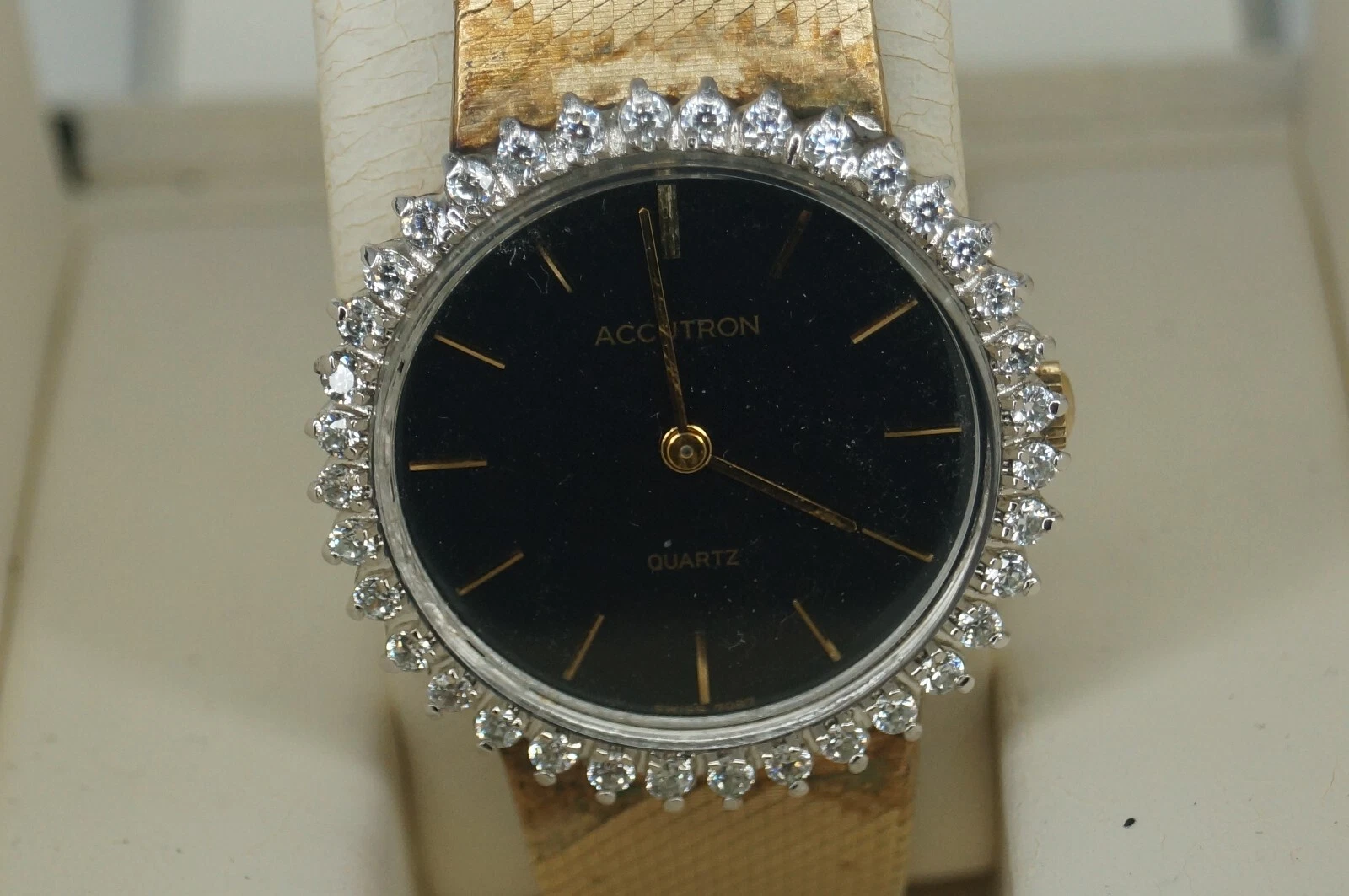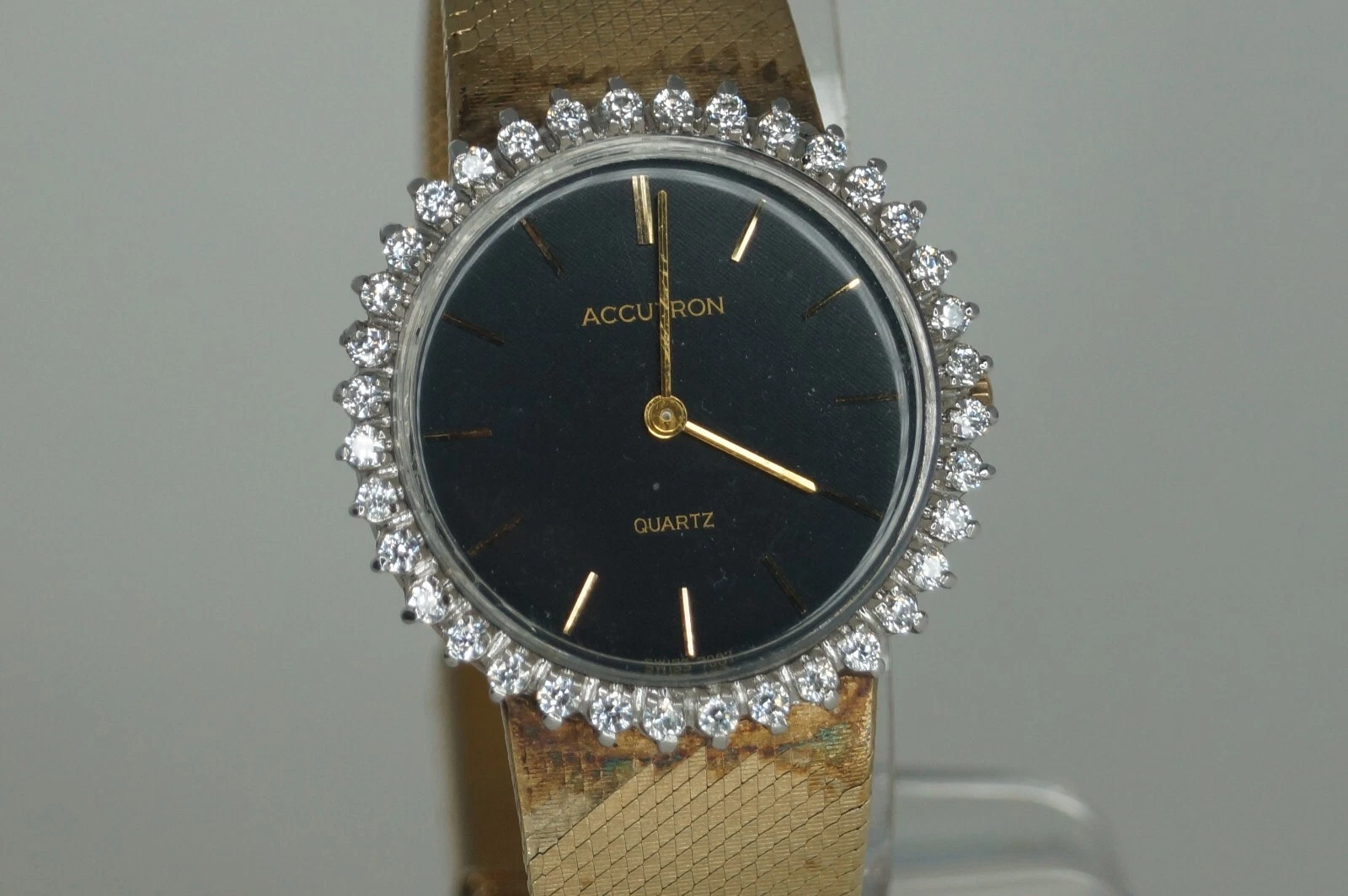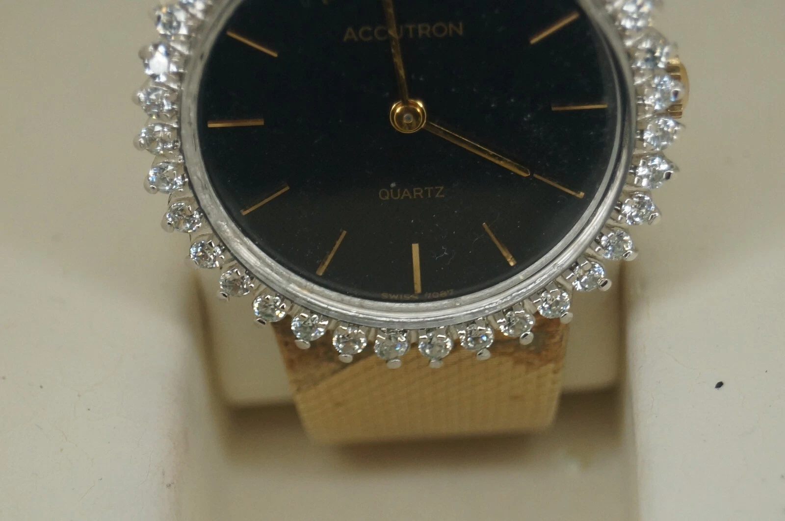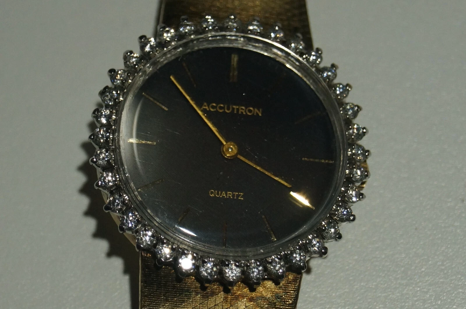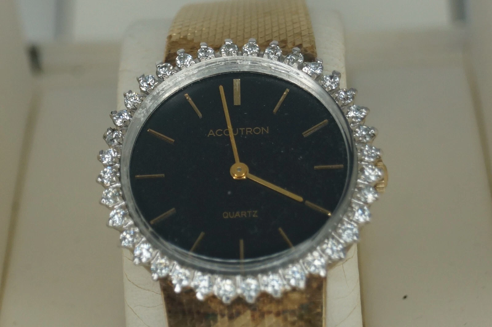Super RARE Accutron Bulova 10K Rolled Gold Back Swiss 7087 Quartz 36 Jewel Face