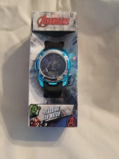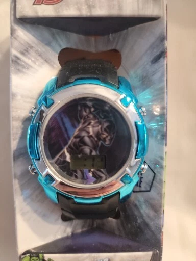 Marvel Avengers BLACK PANTHER Flashing LCD Watch Round Face Unisex Kids NIB