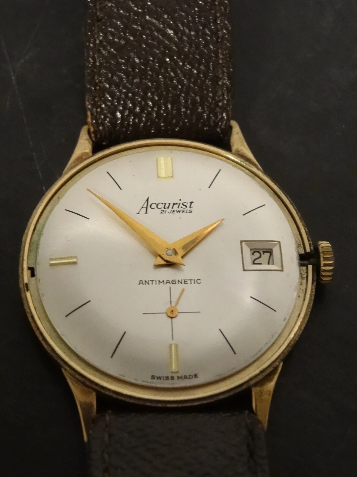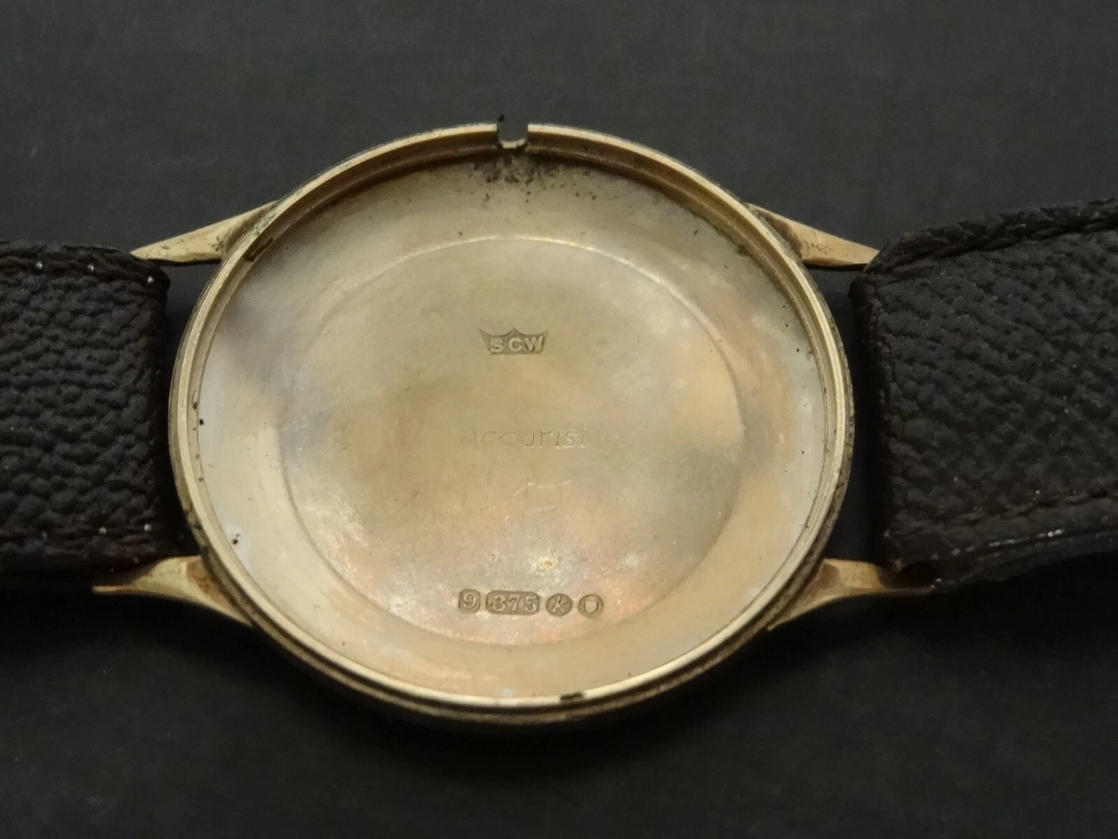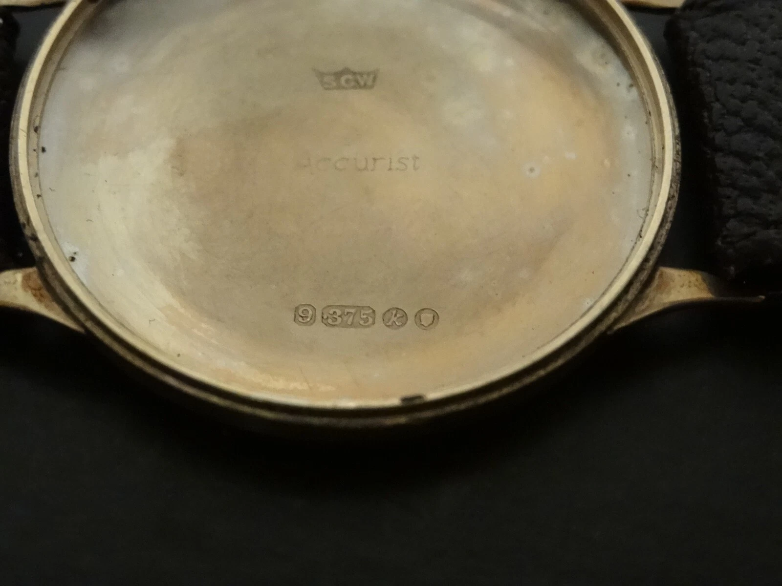 9CT GOLD ACCURIST 21 JEWELS ANTIMAGNETIC DATE WRISTWATCH LONDON 1965 WORKING