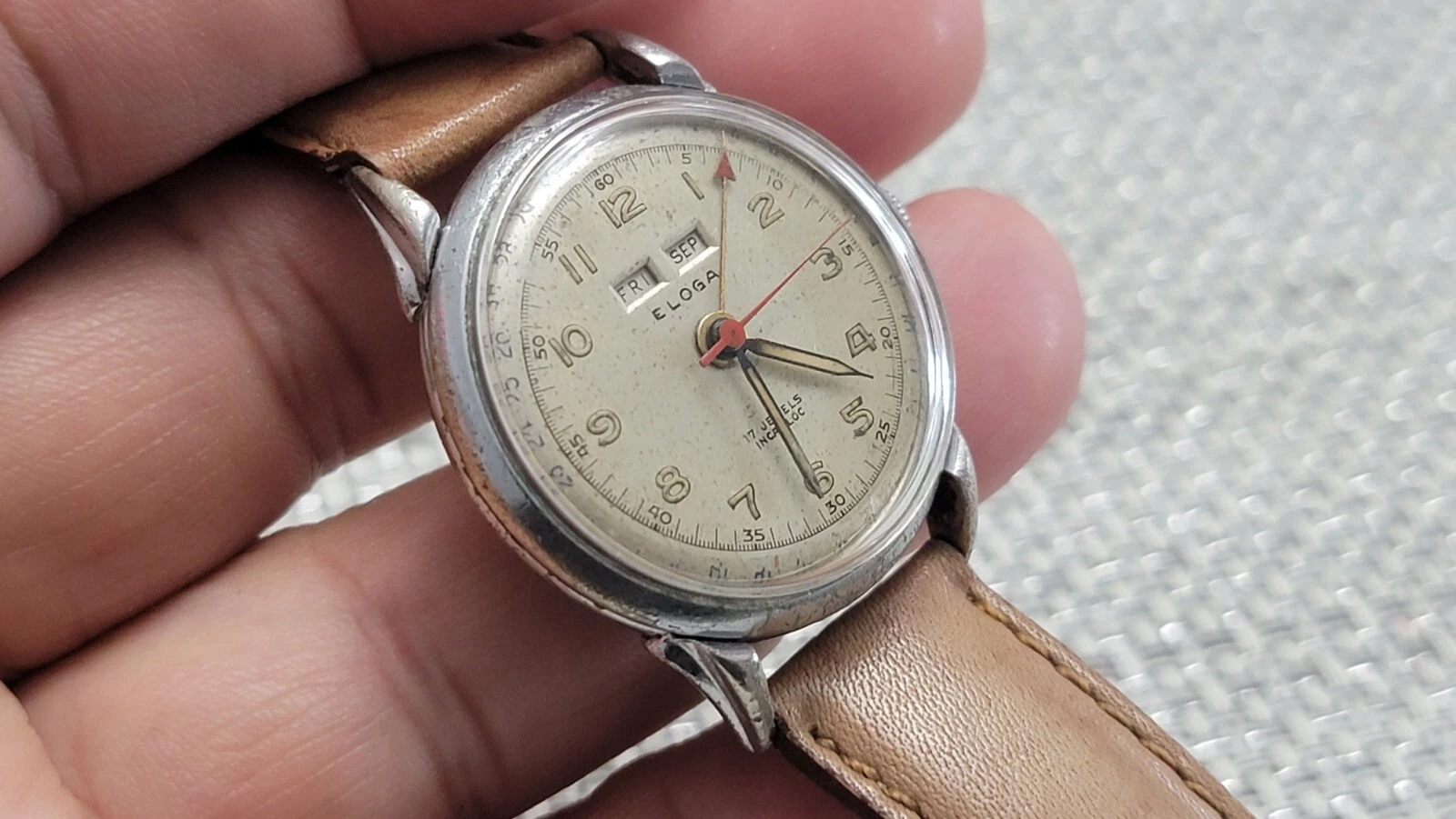 Vintage Eloga Triple Date Calendar Stainless Steel Manual Wind Men's Watch