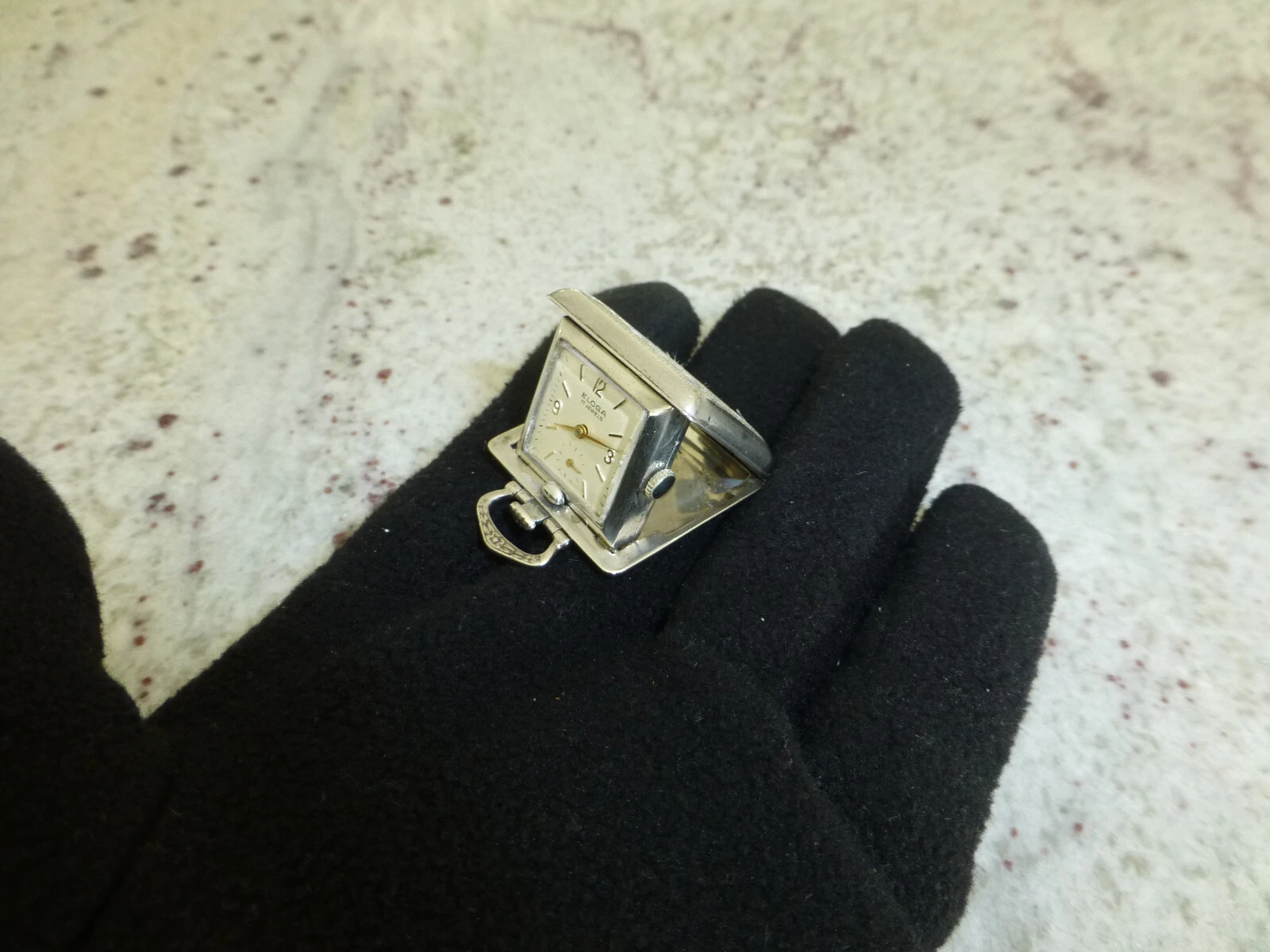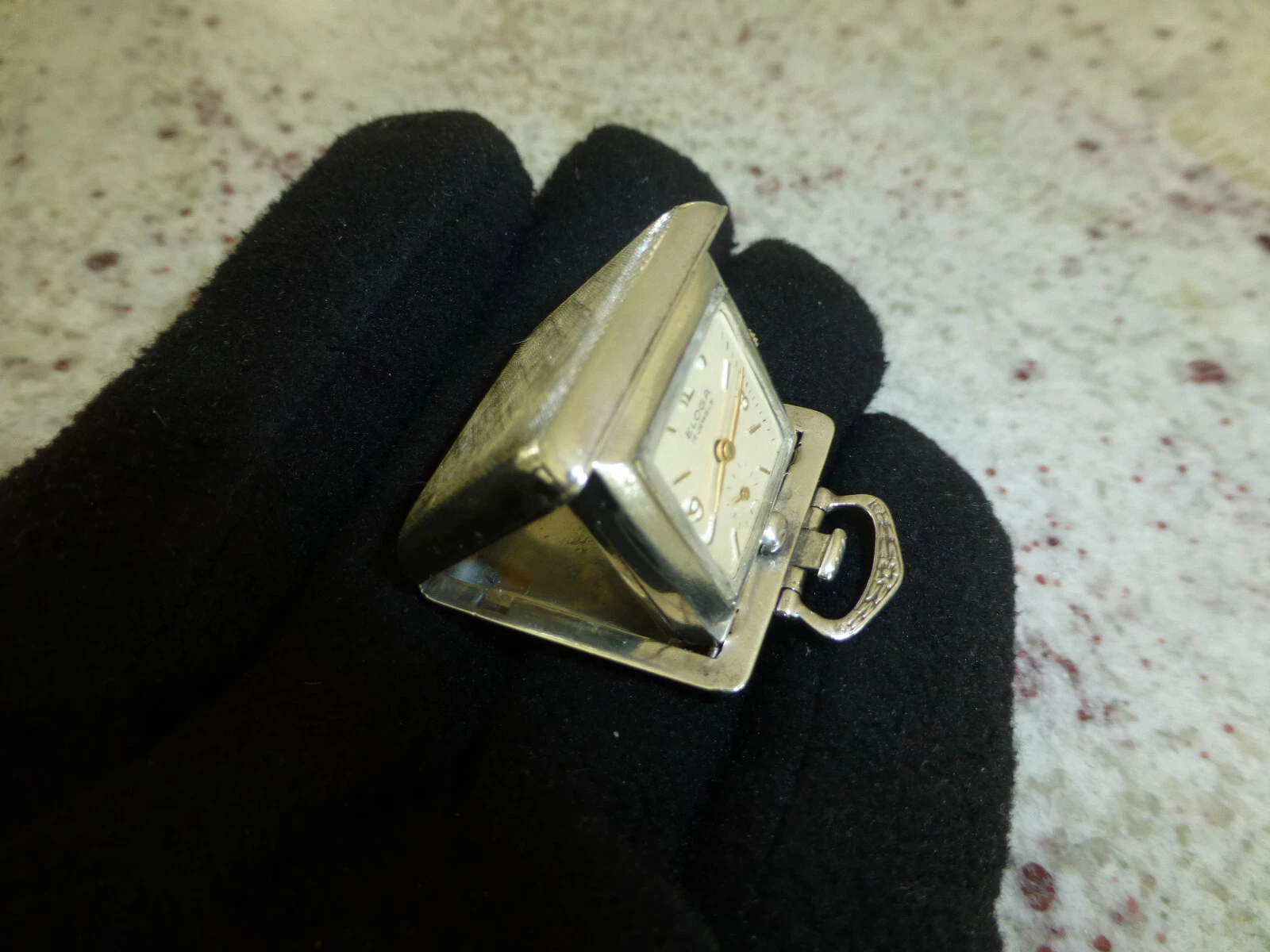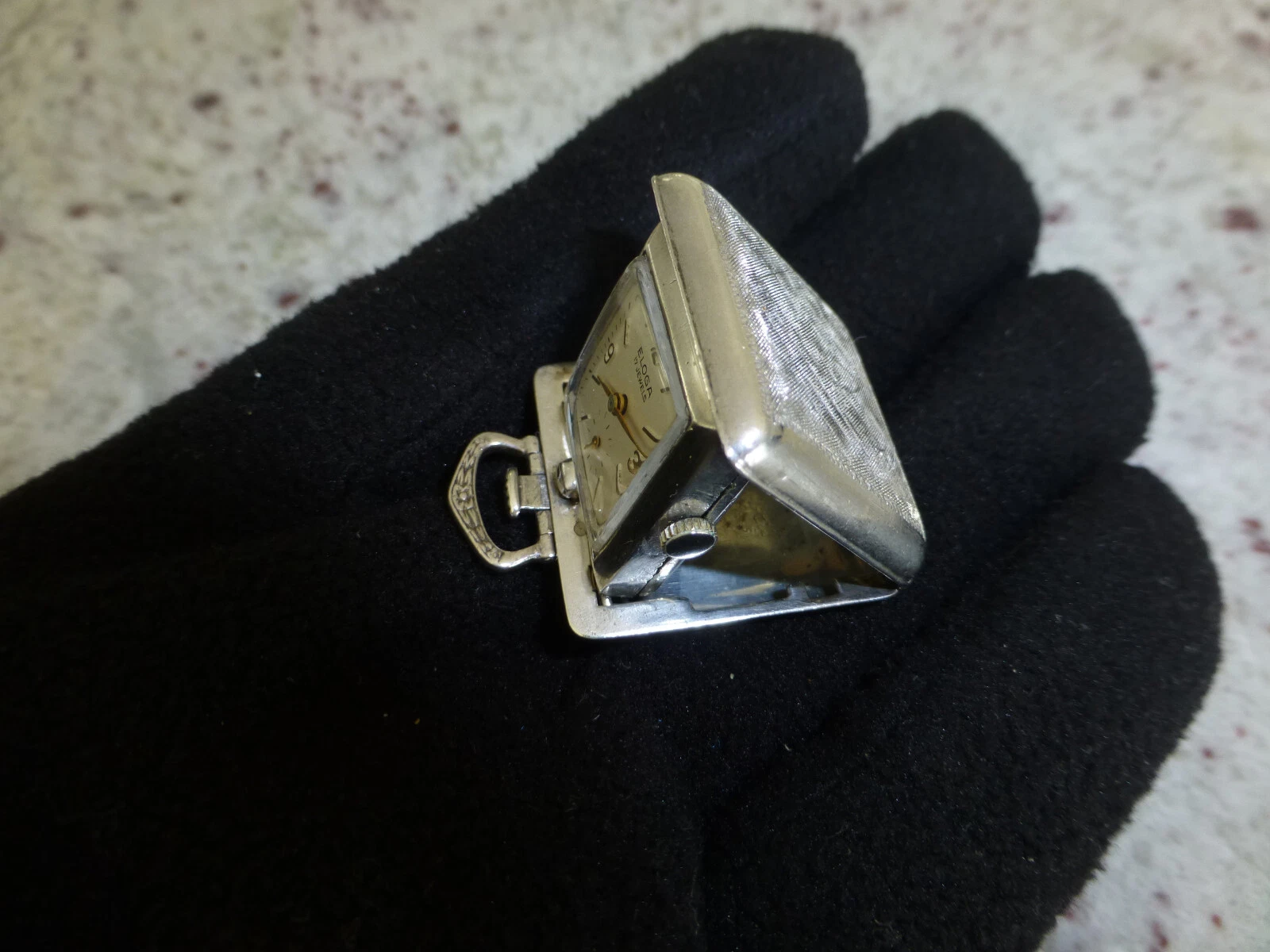 Vintage Swiss Eloga Folding Pendant Pocket Travel Watch In .935 Sterliing Silver