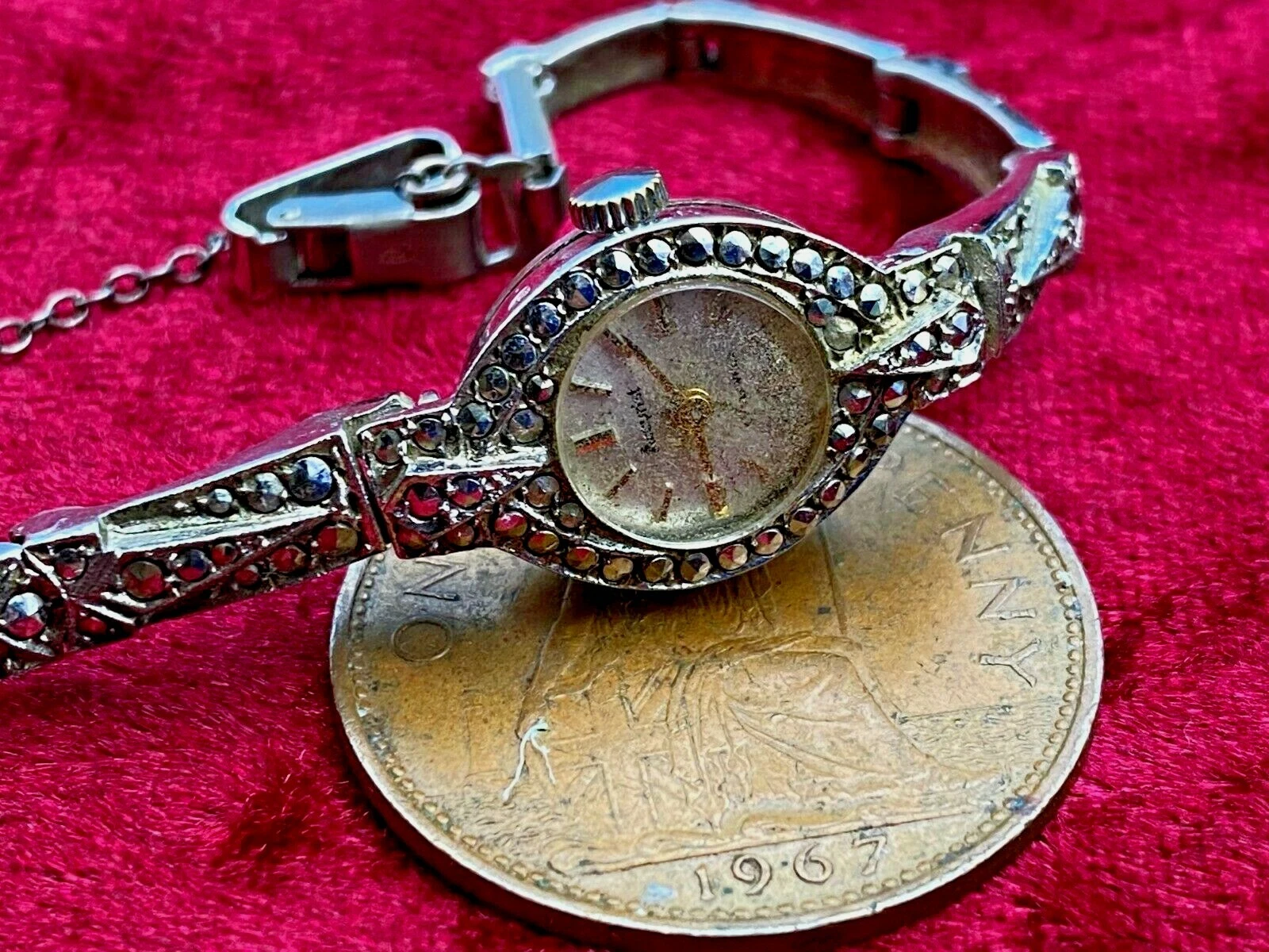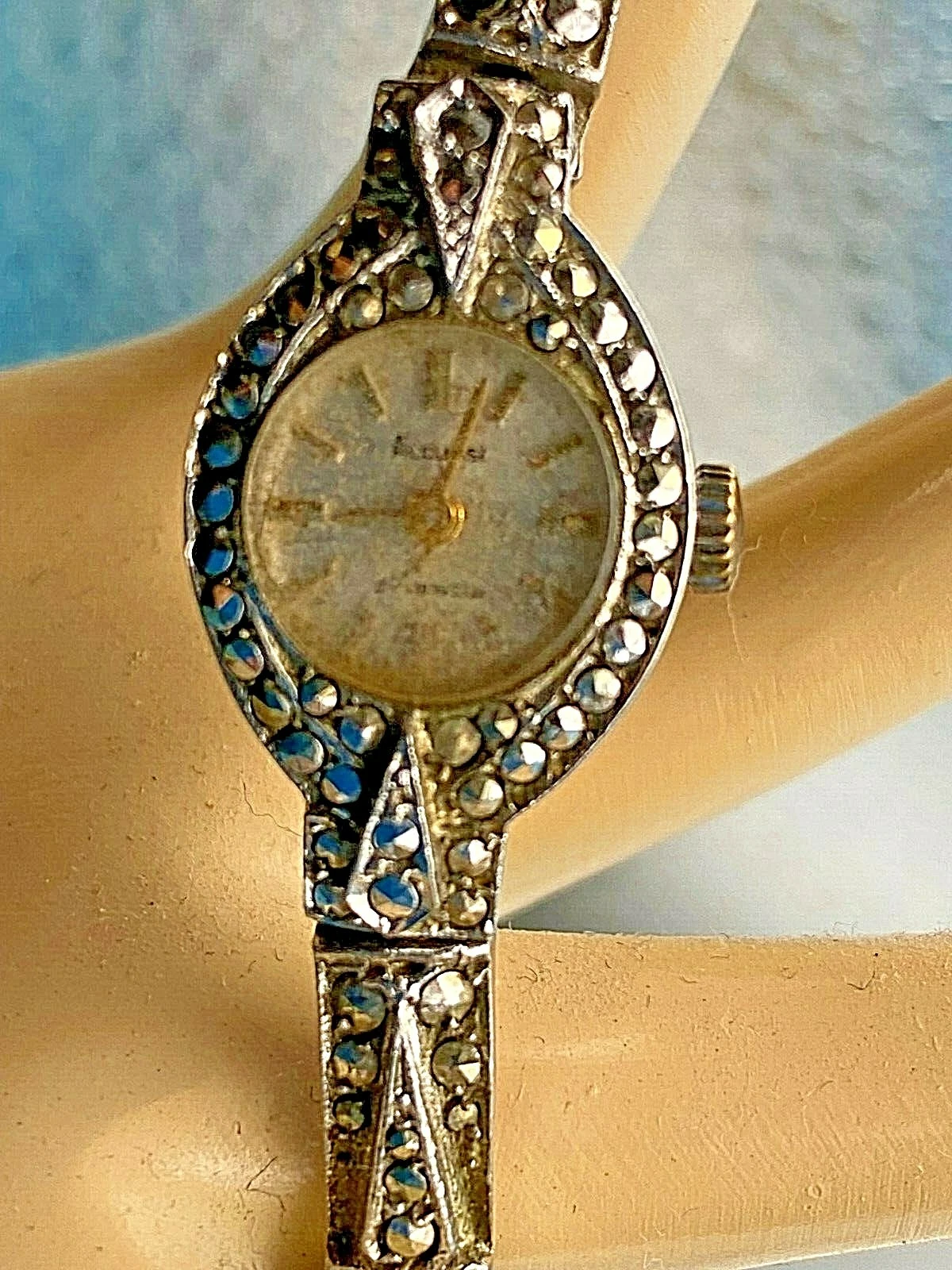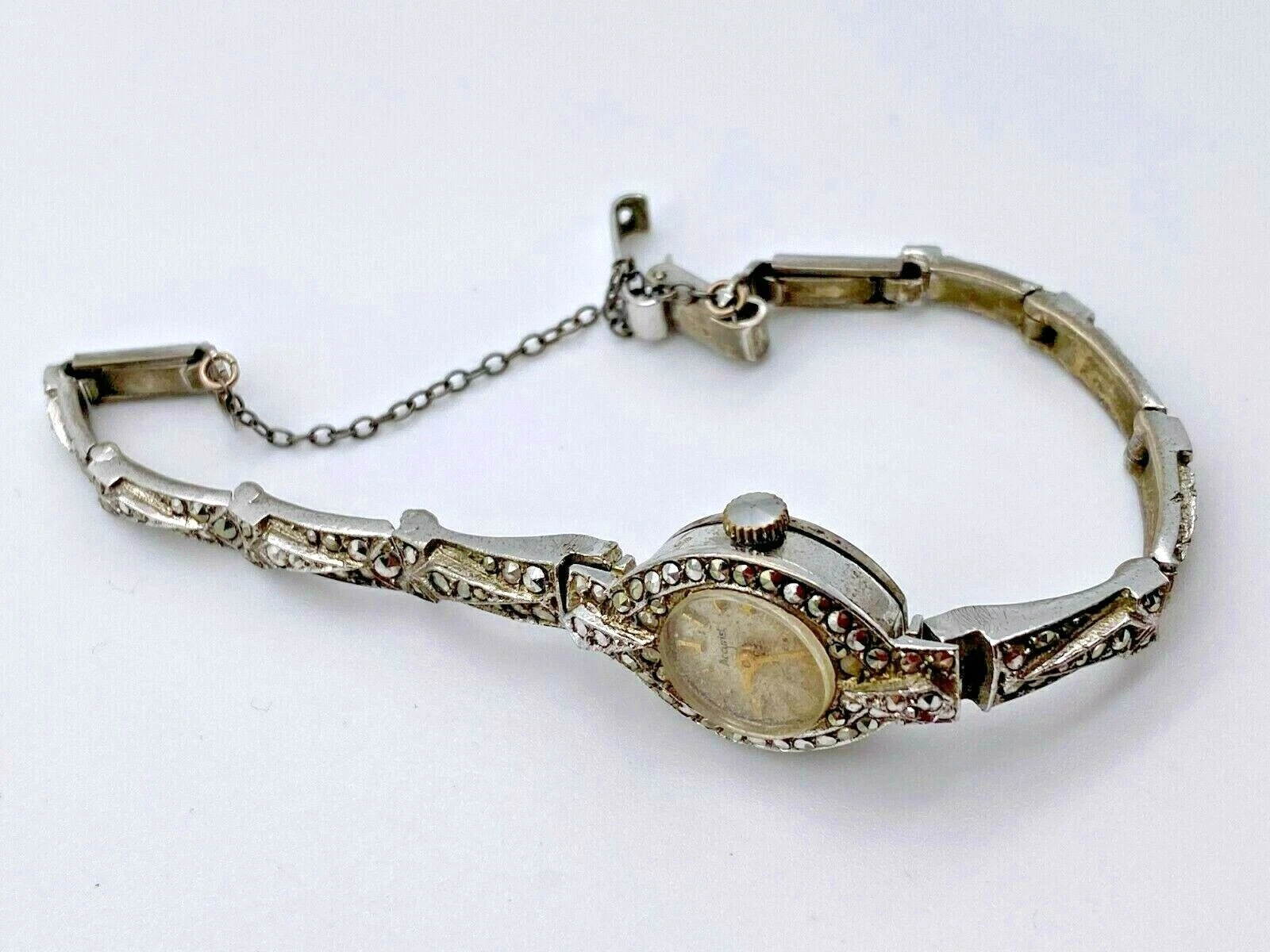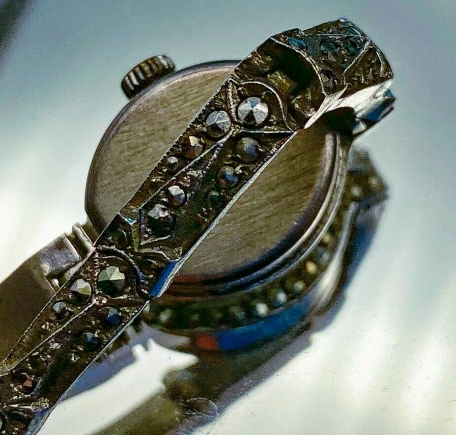 Vintage 925 Sterling Silver Watch Ladies 7 Jewels Marcasite 1960'