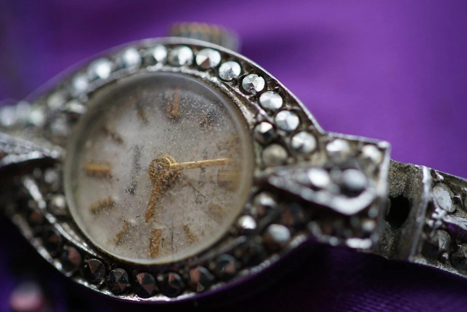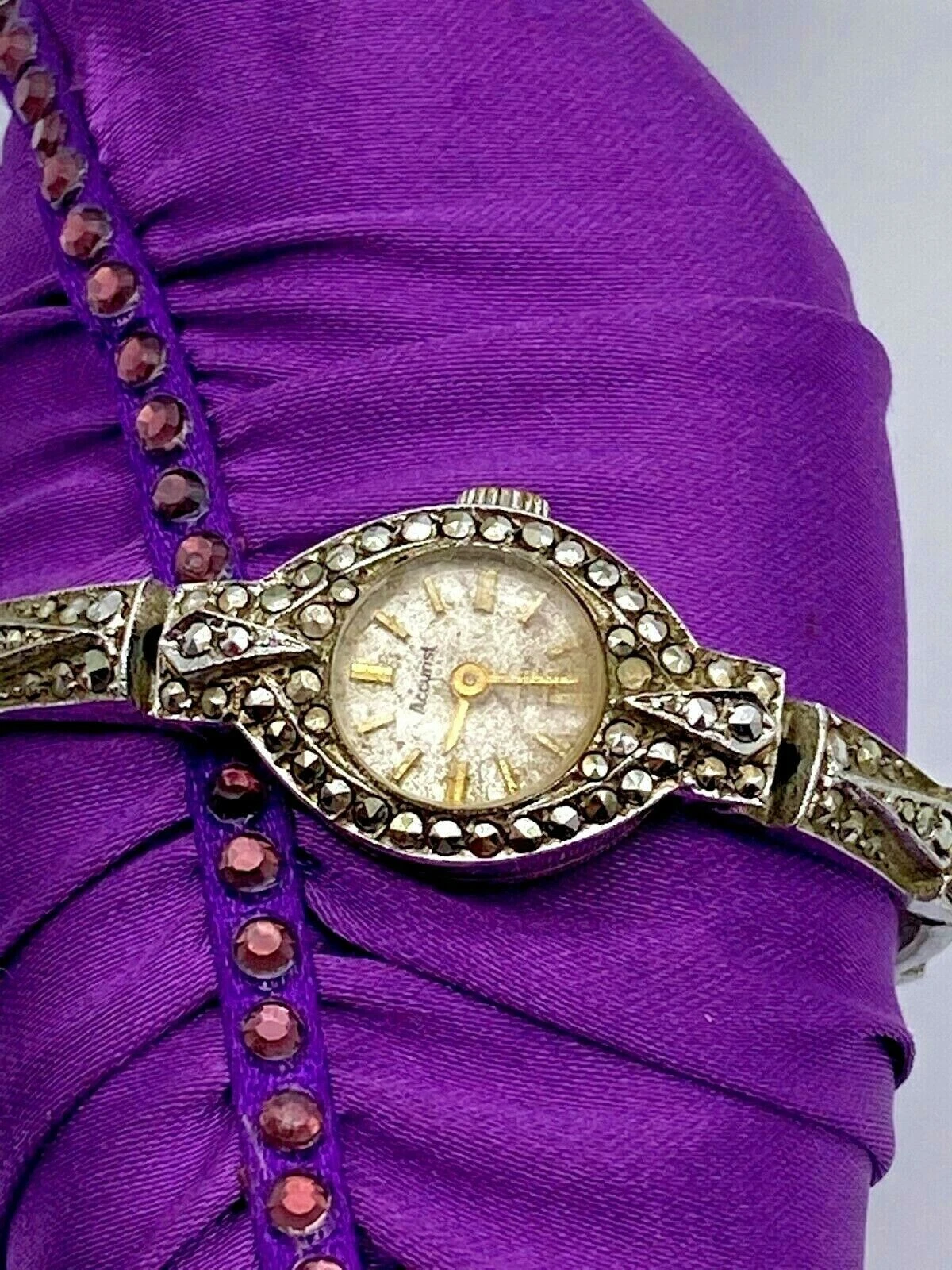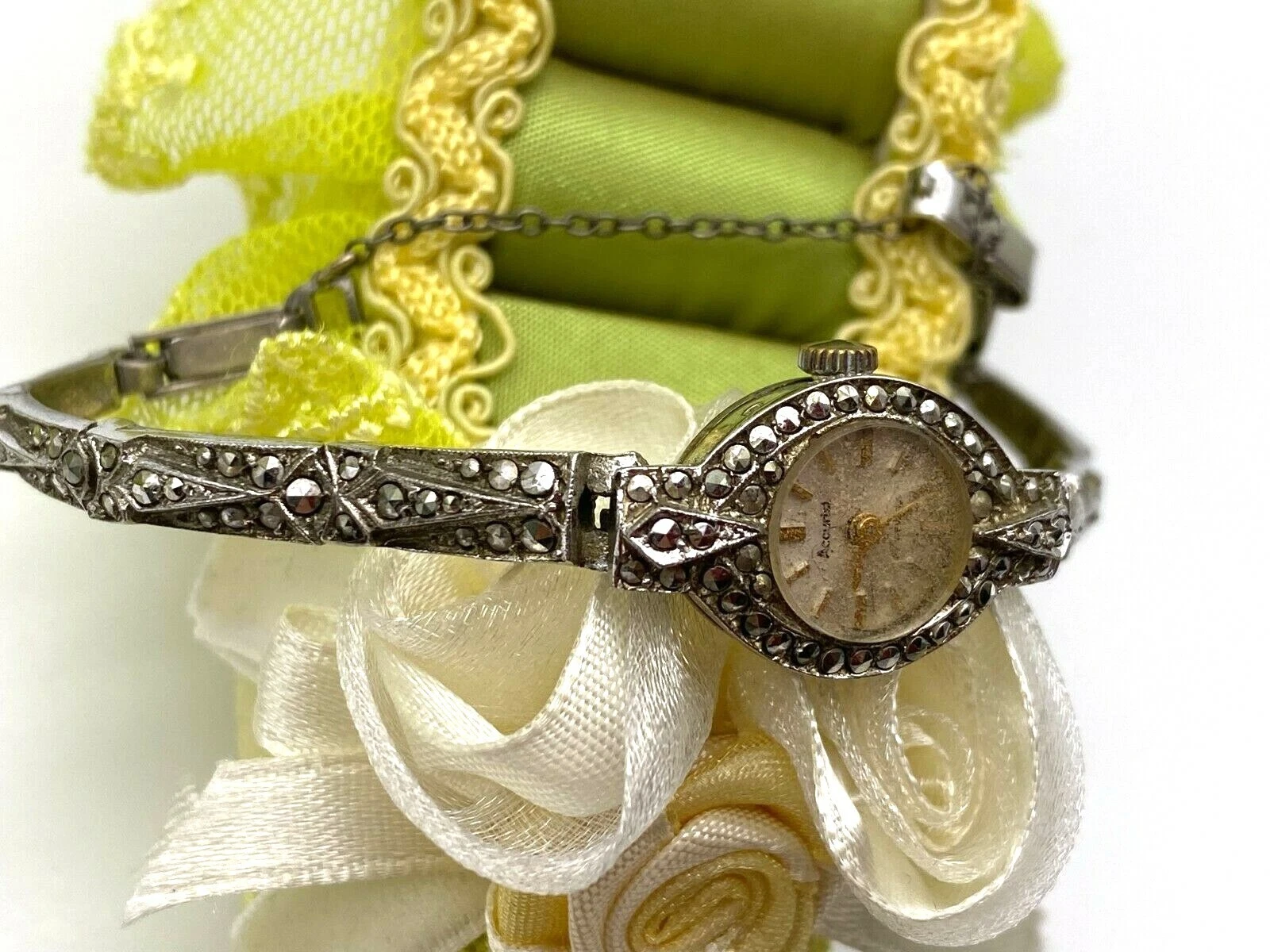 Vintage 925 Sterling Silver Watch Ladies 7 Jewels Marcasite 1960'