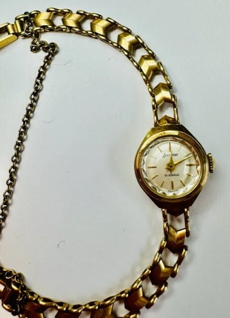 Womens Vintage Accurist Solid 9ct Yellow Gold Wrist Watch 375 Jewellery Gift