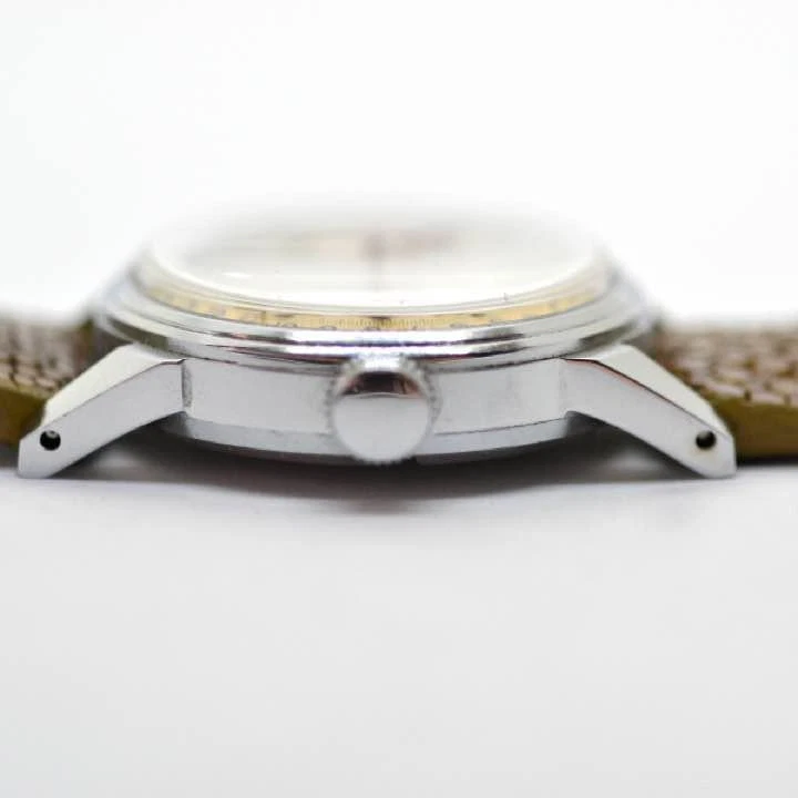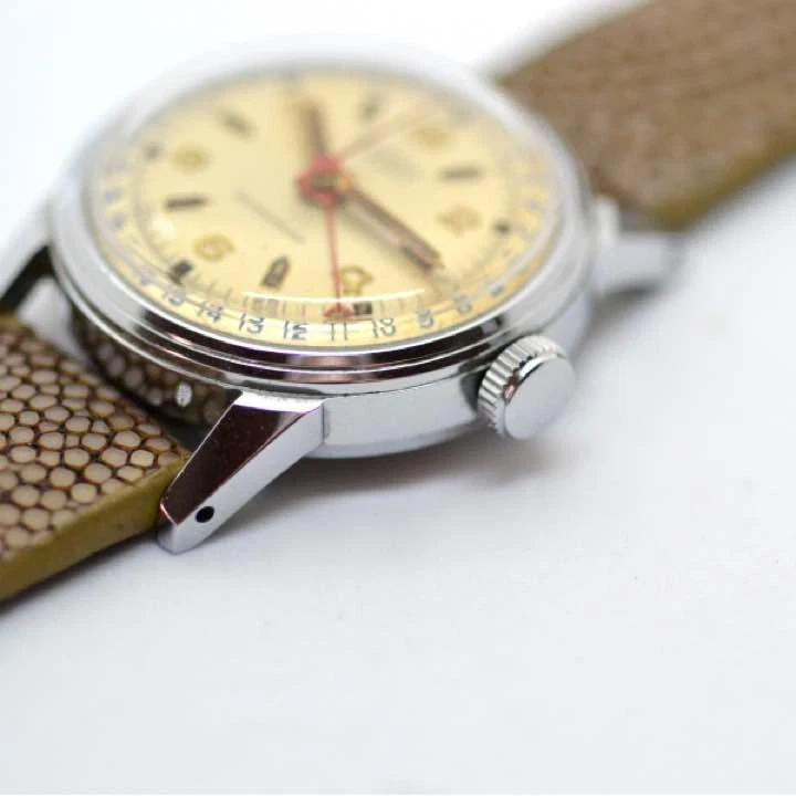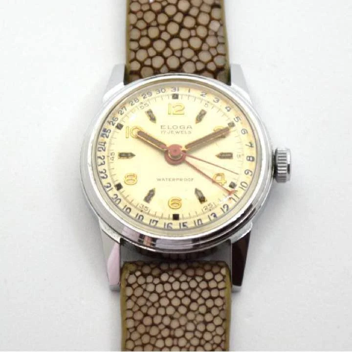 ELOGA SWISS Pointer Date Leather Belt 1950s Antique Watch Used Excellent