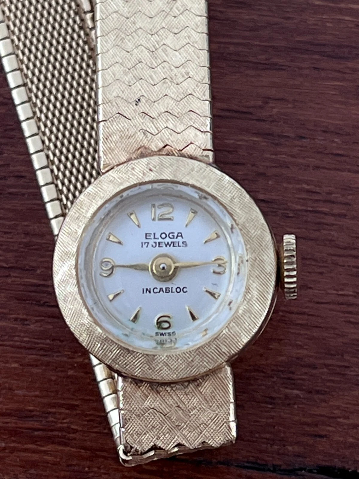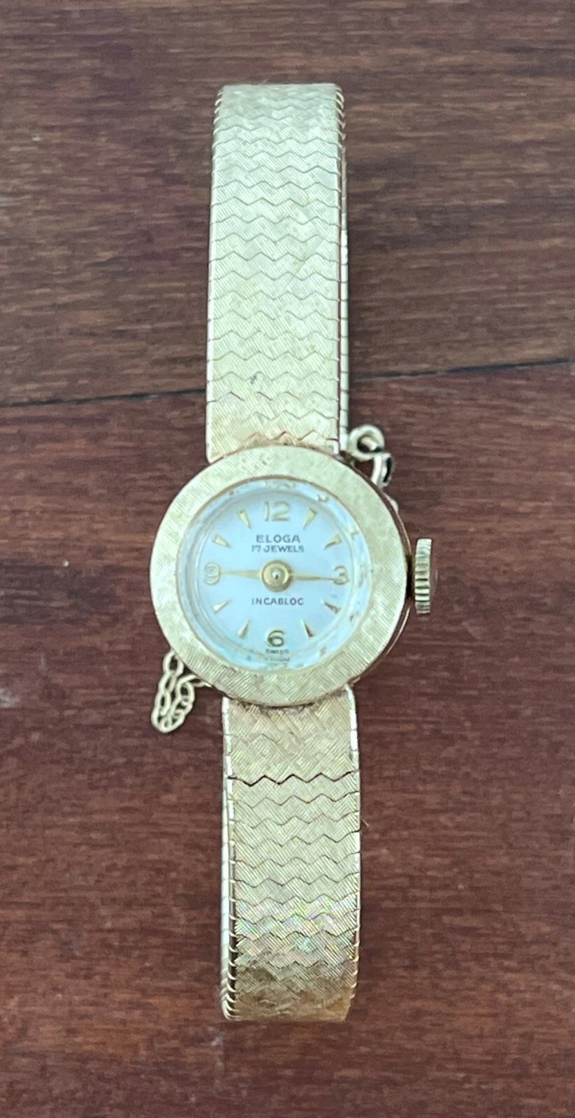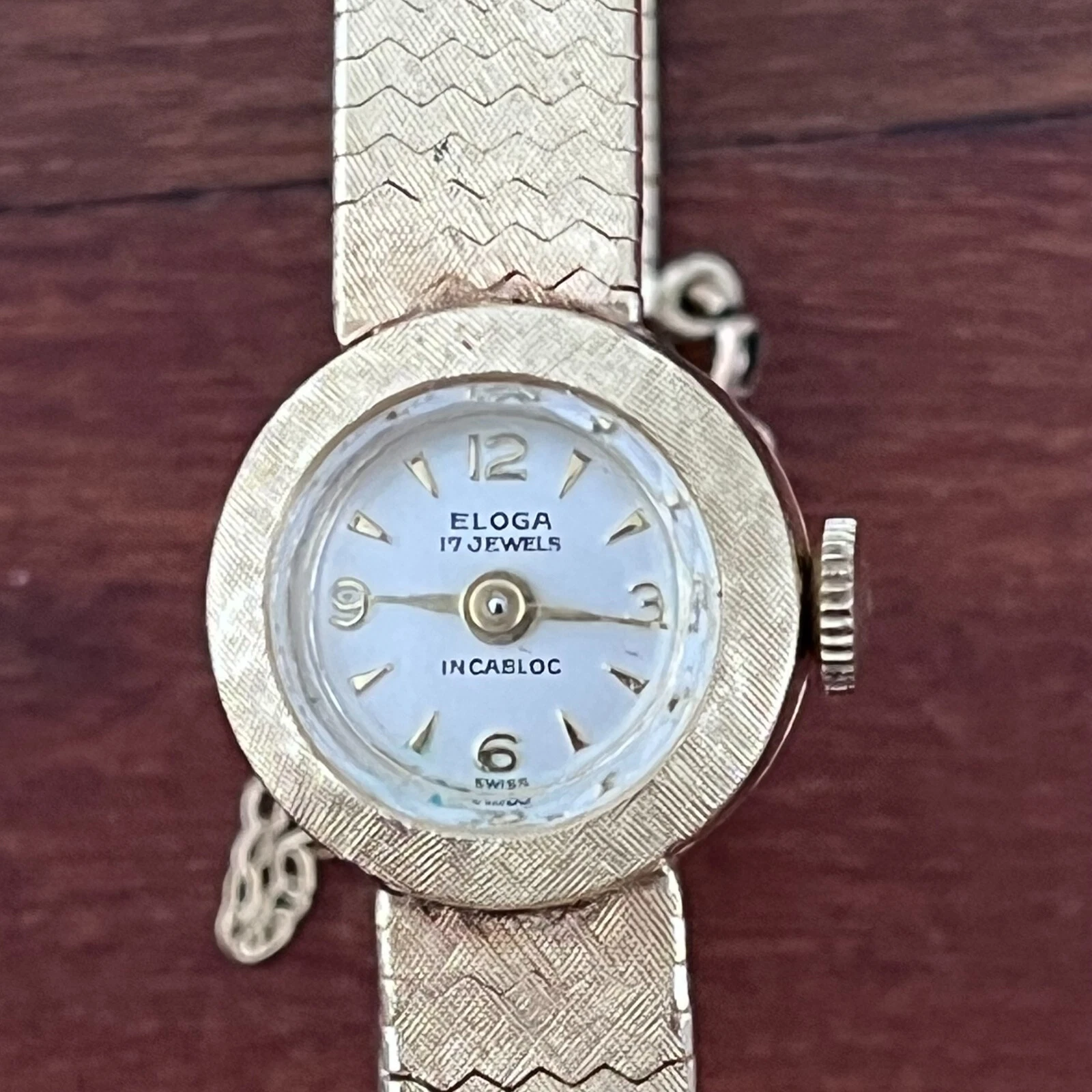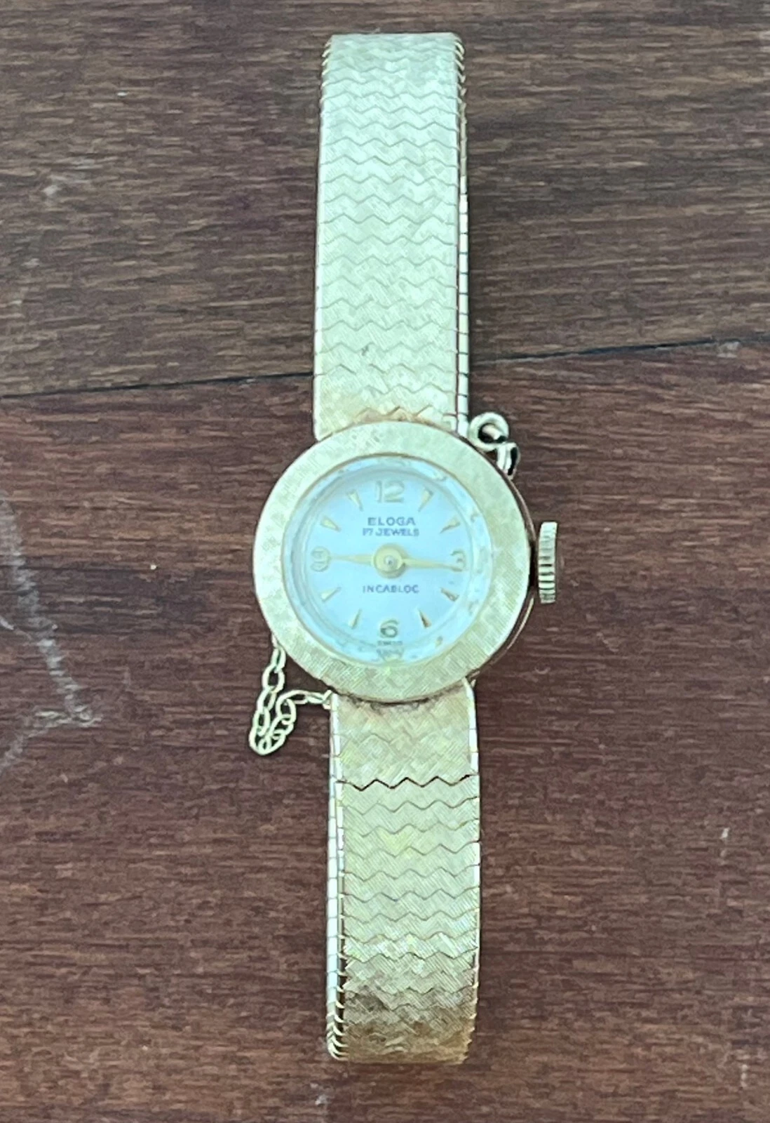 ELOGA 17 Jewels Incabloc 14k Solid Yellow Gold Vintage Swiss Watch