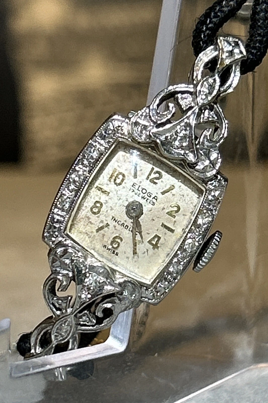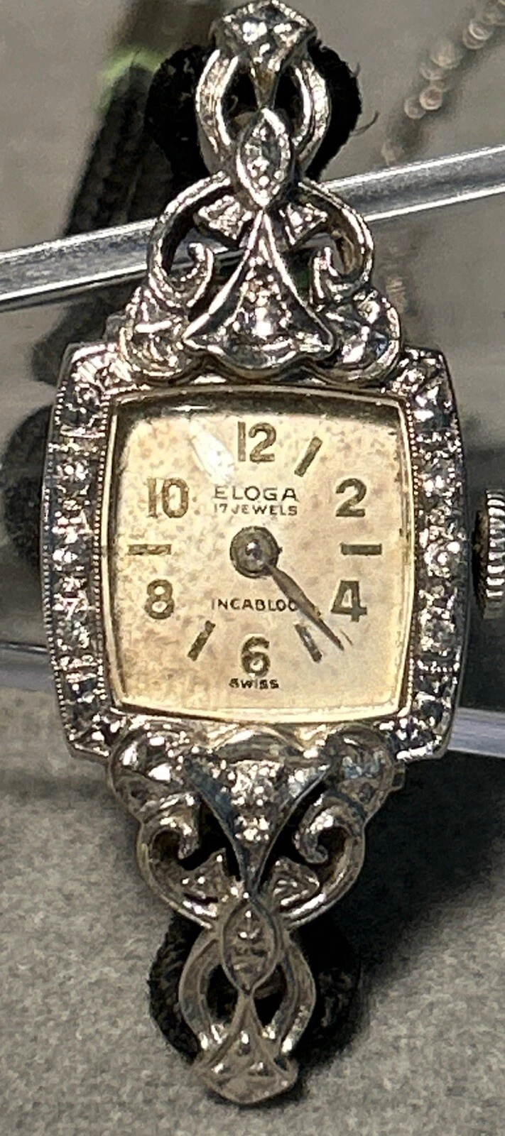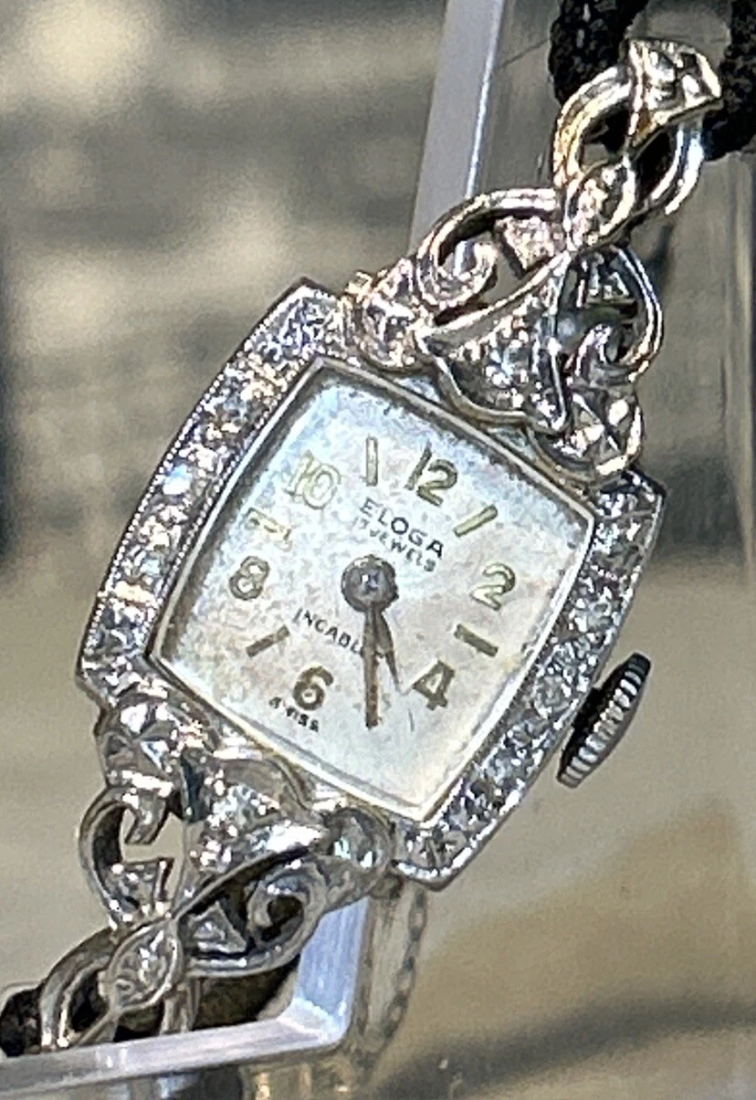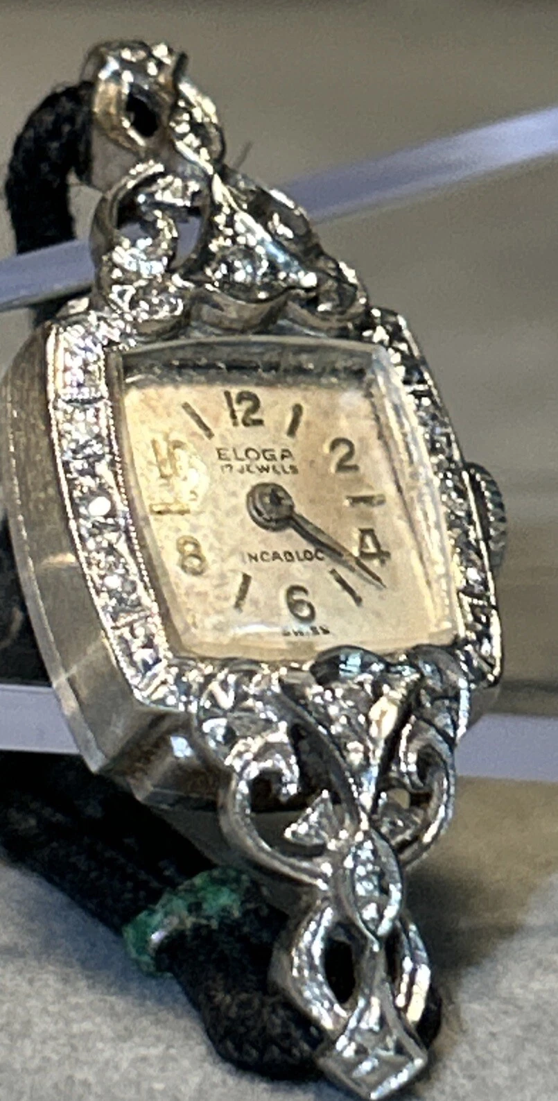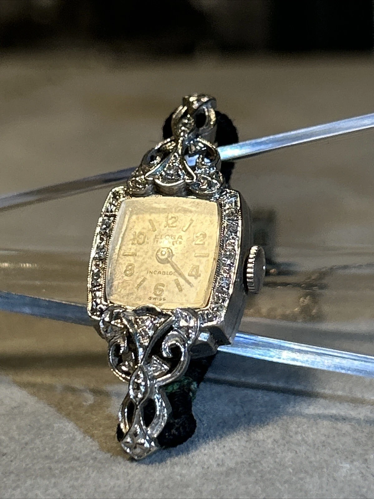 Eloga 17 Jewels Vintage Swiss Ladies Watch Platinum or White Gold ? W/ Diamonds