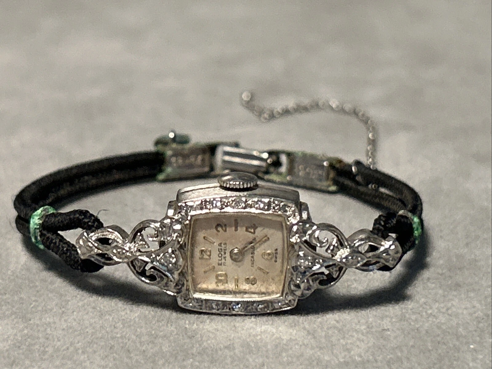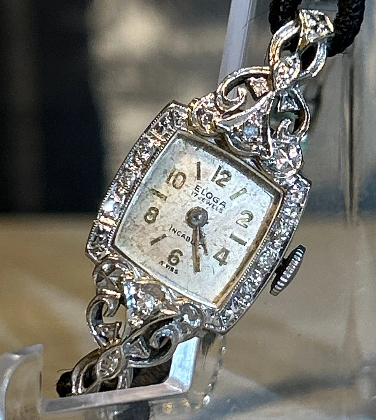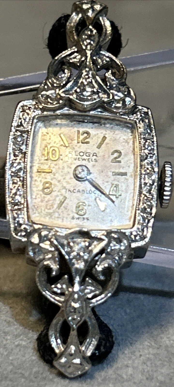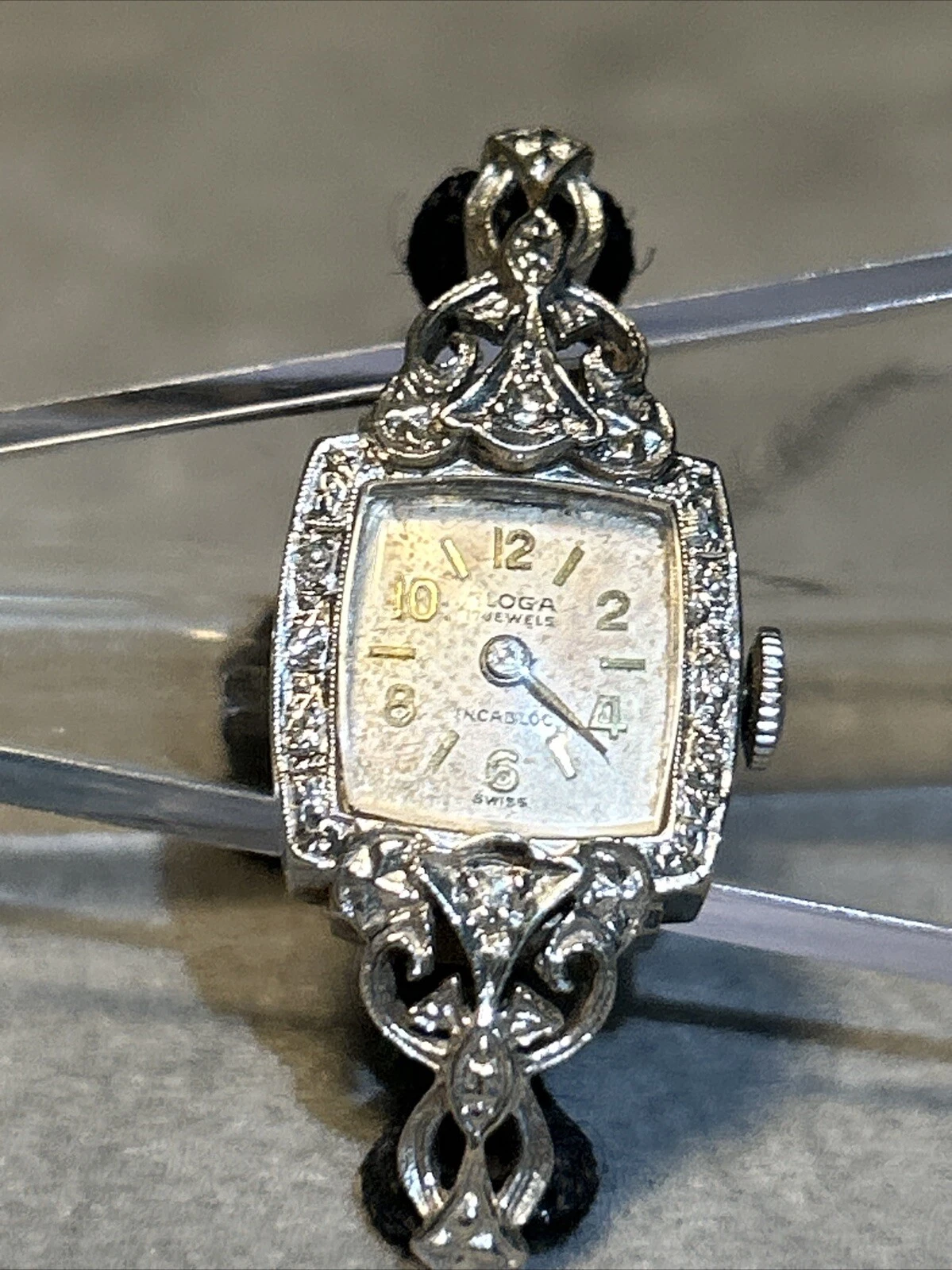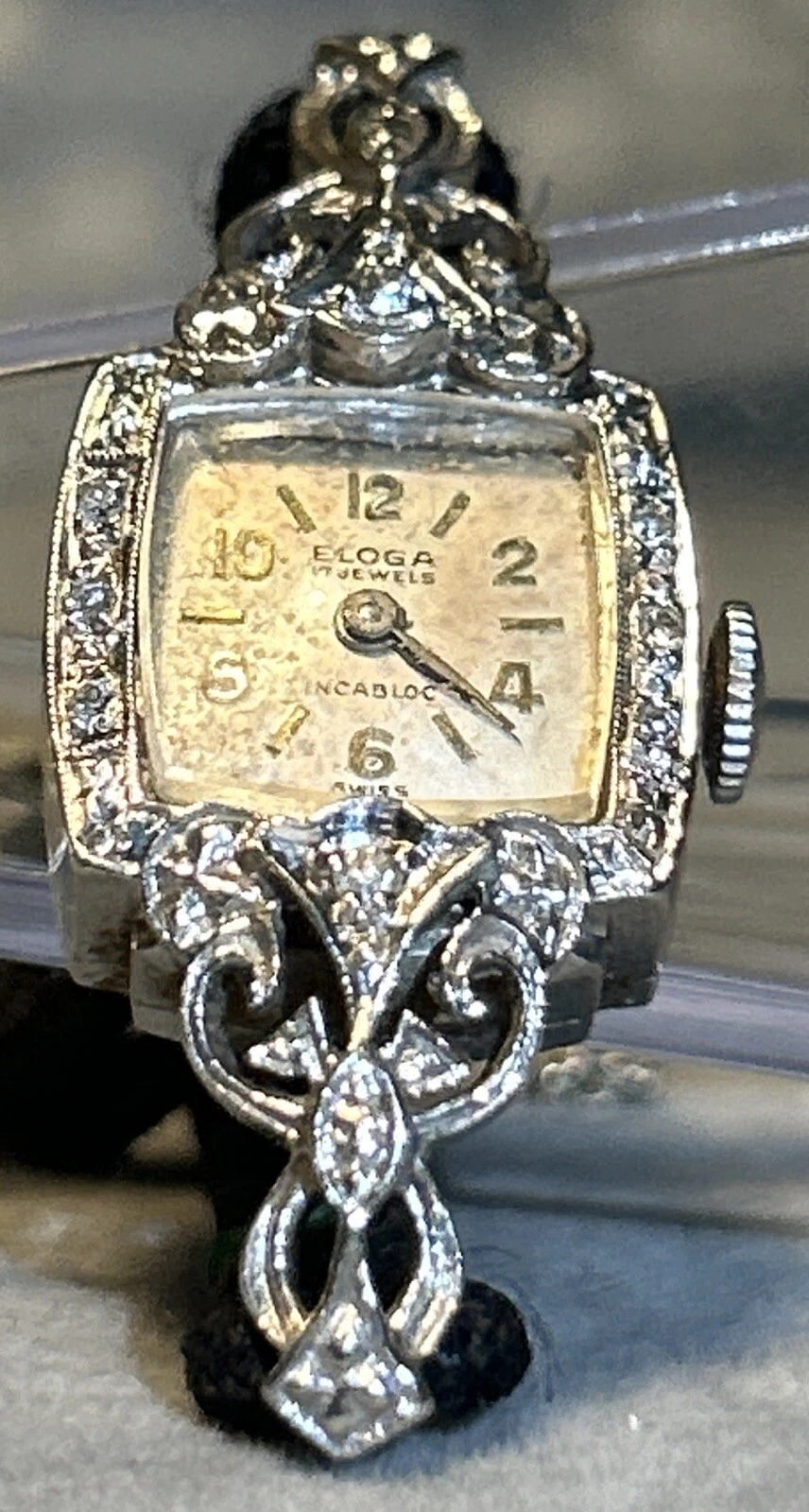 Eloga 17 Jewels Vintage Swiss Ladies Watch Platinum or White Gold ? W/ Diamonds