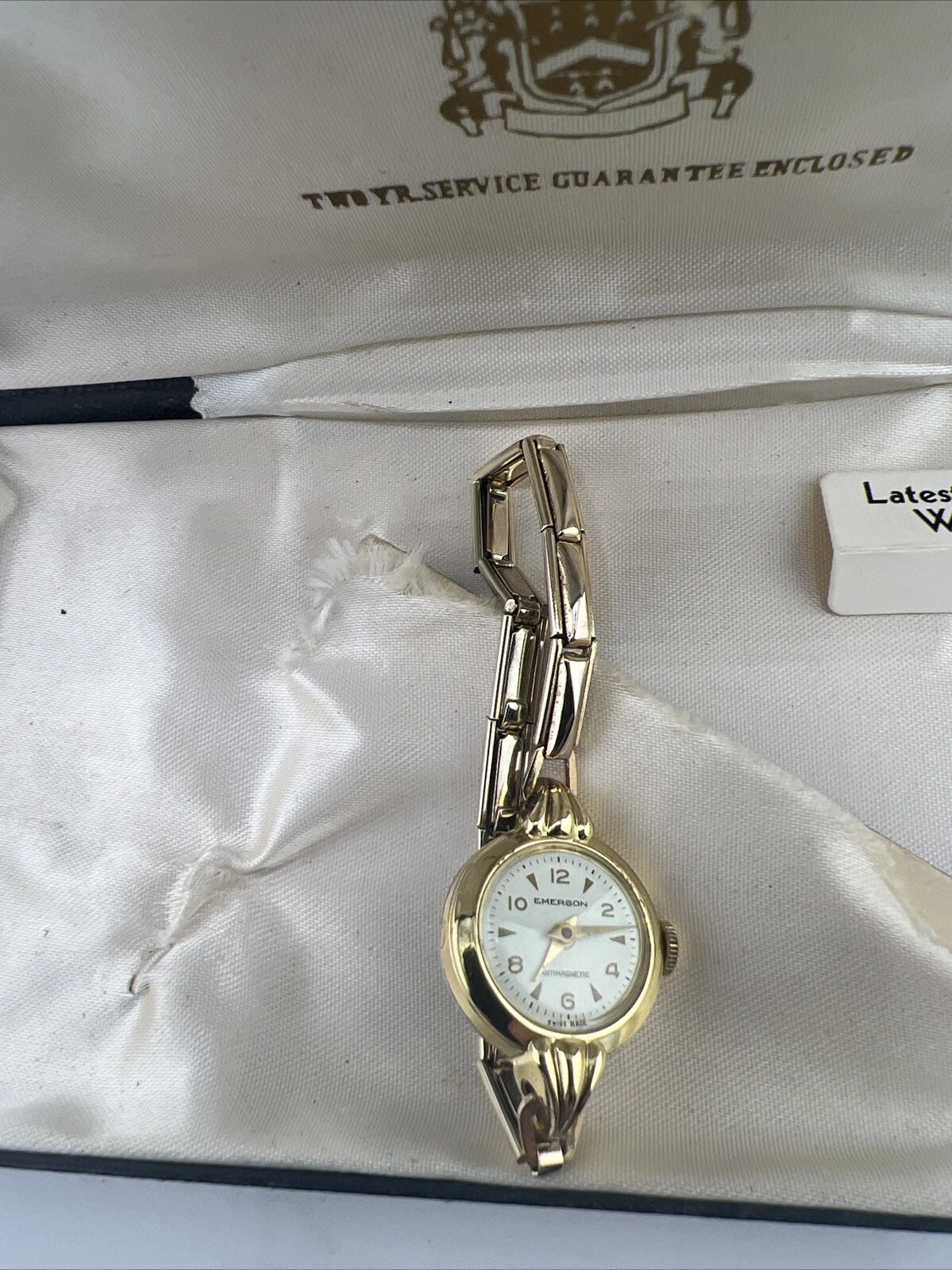Emerson Antimagnetic Watch Vintage Gold Fond Metal Swiss Made Needs New Battery