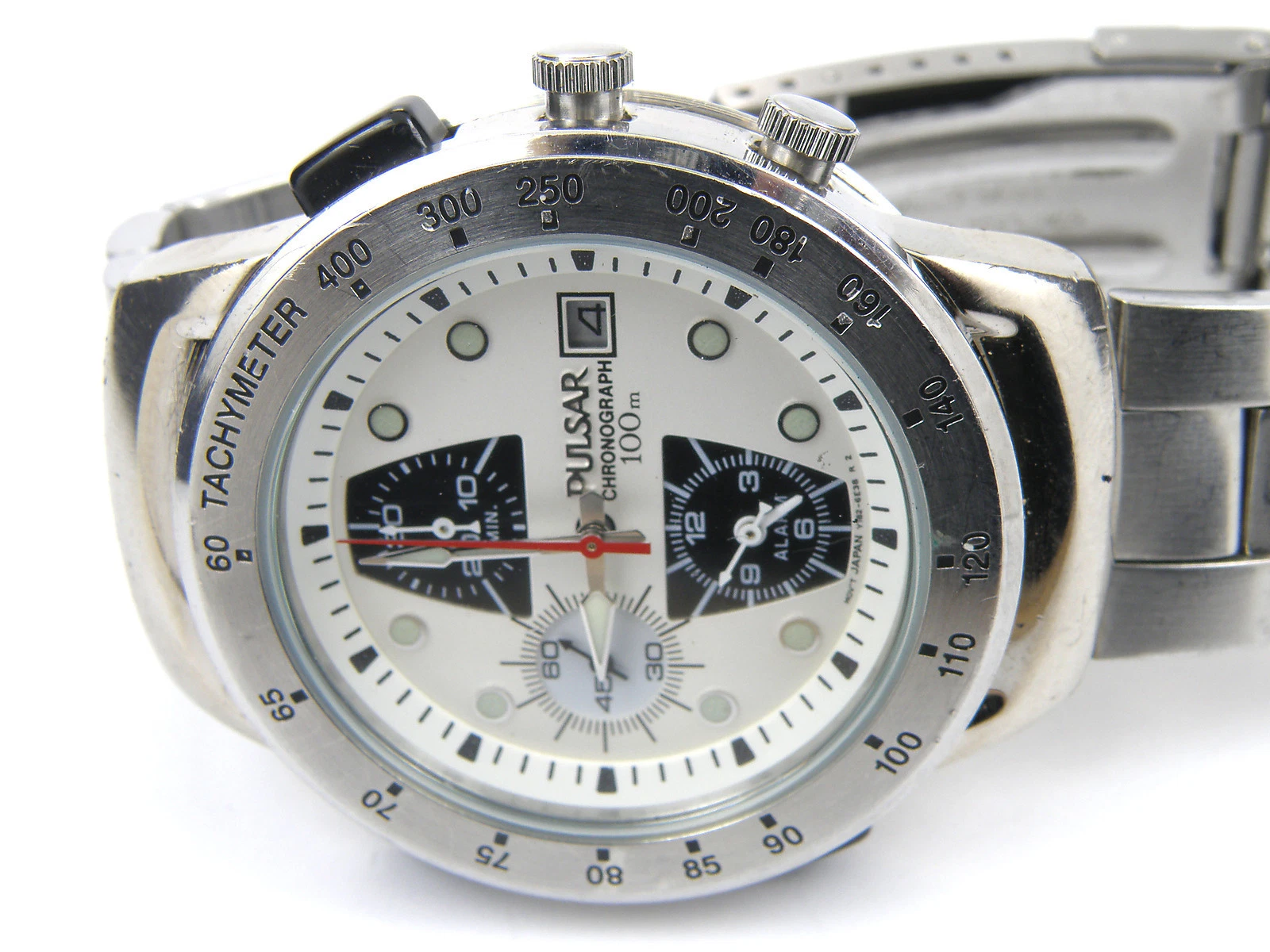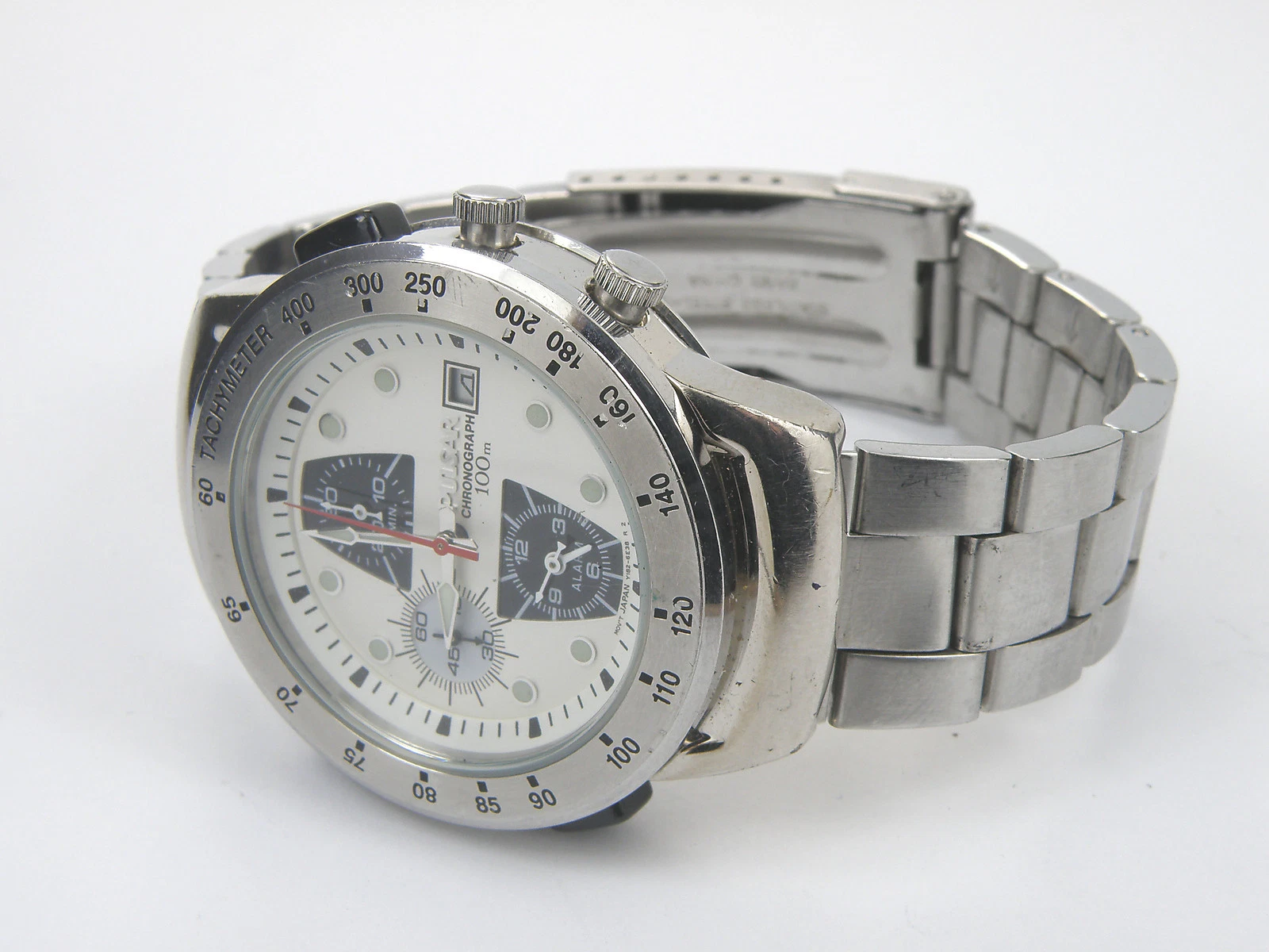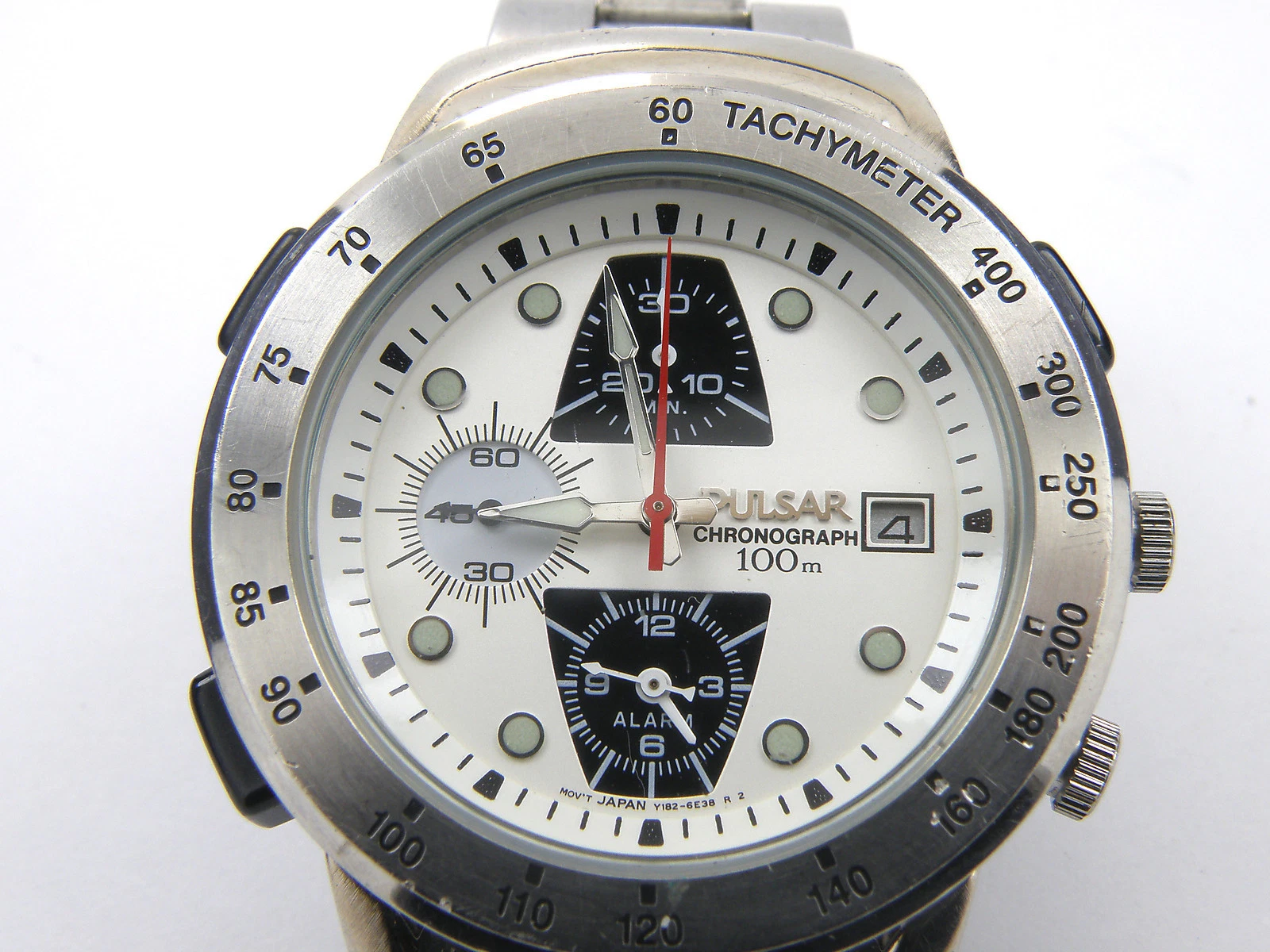 Men's Vintage Pulsar "NASA" Y182-6D10 Analog Quartz Alarm Chronograph Watch 100m