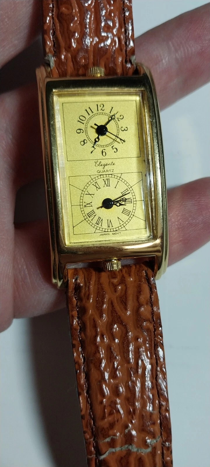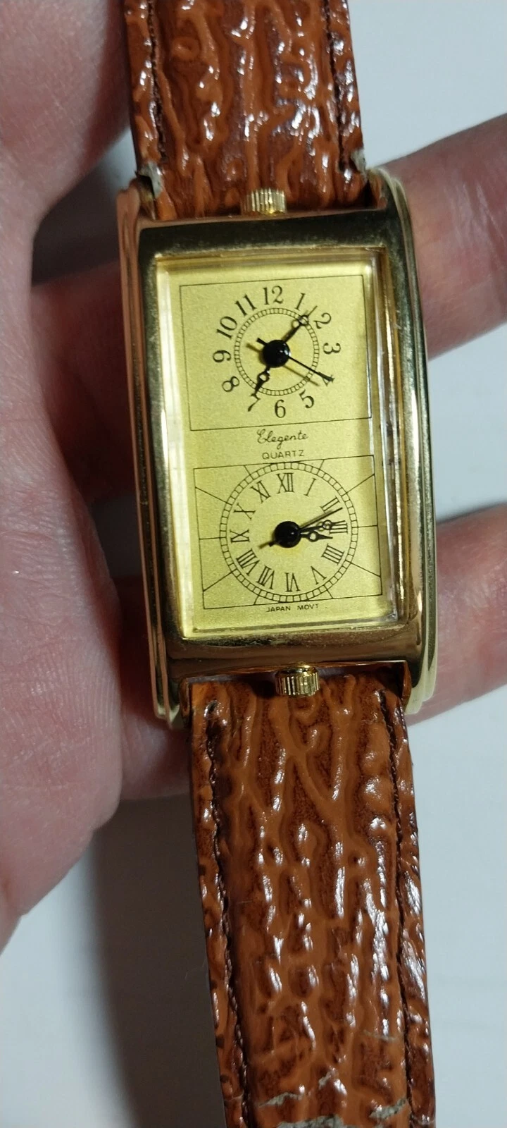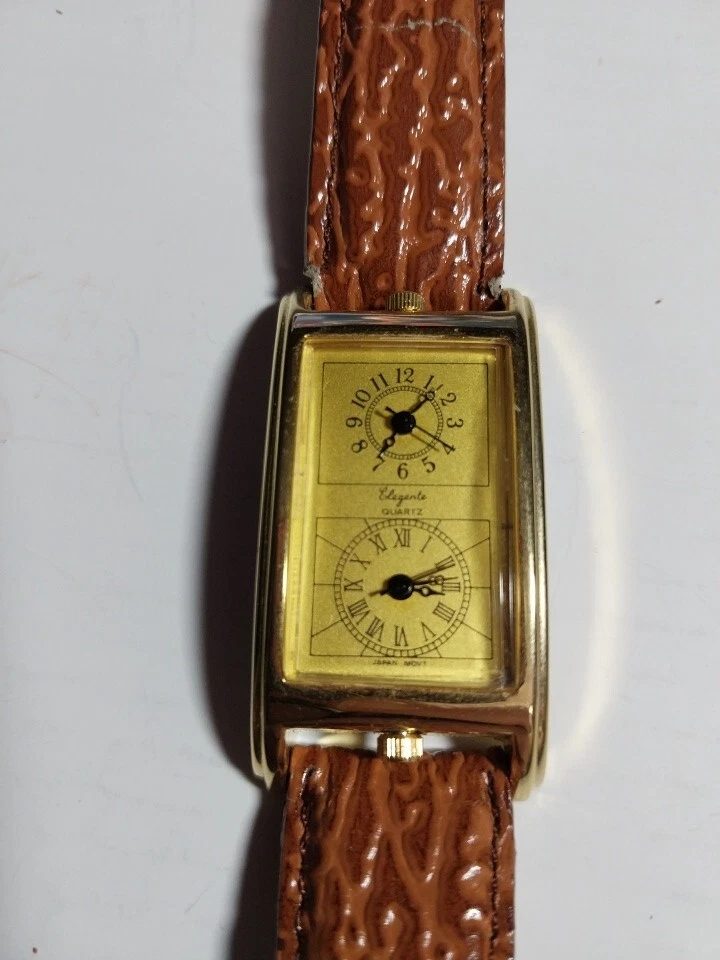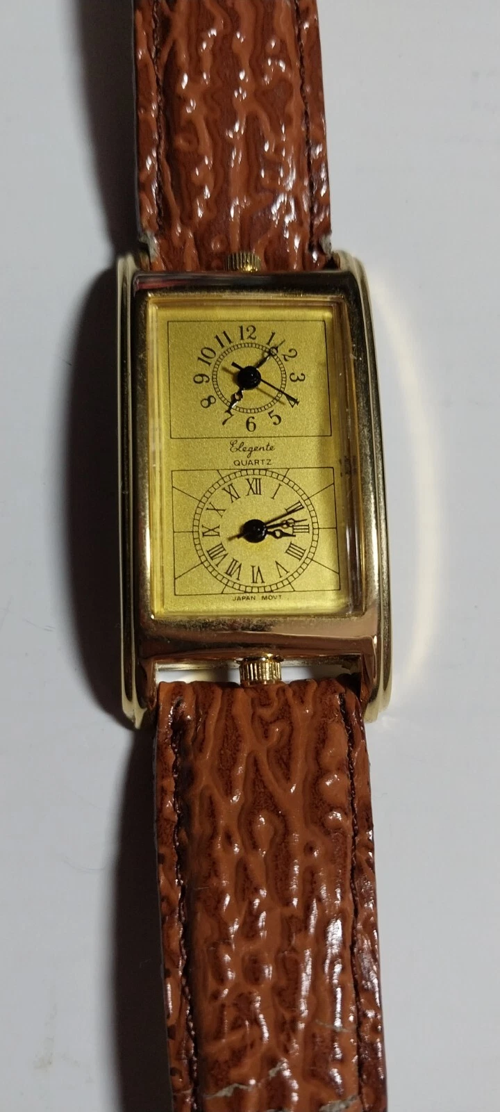 ELEGENTE WATCH Womens Quartz Brown leather band & Analog Wristwatch.