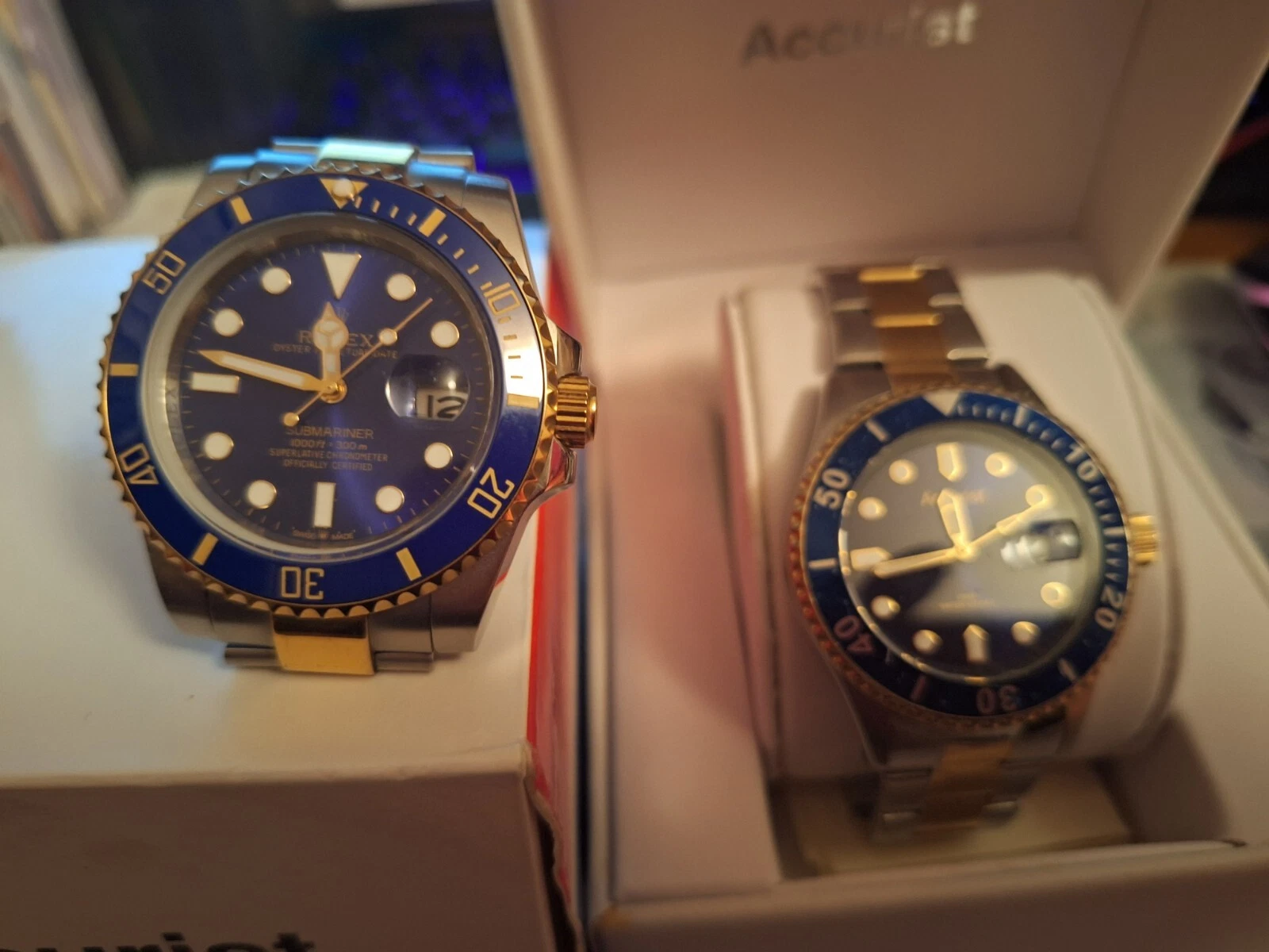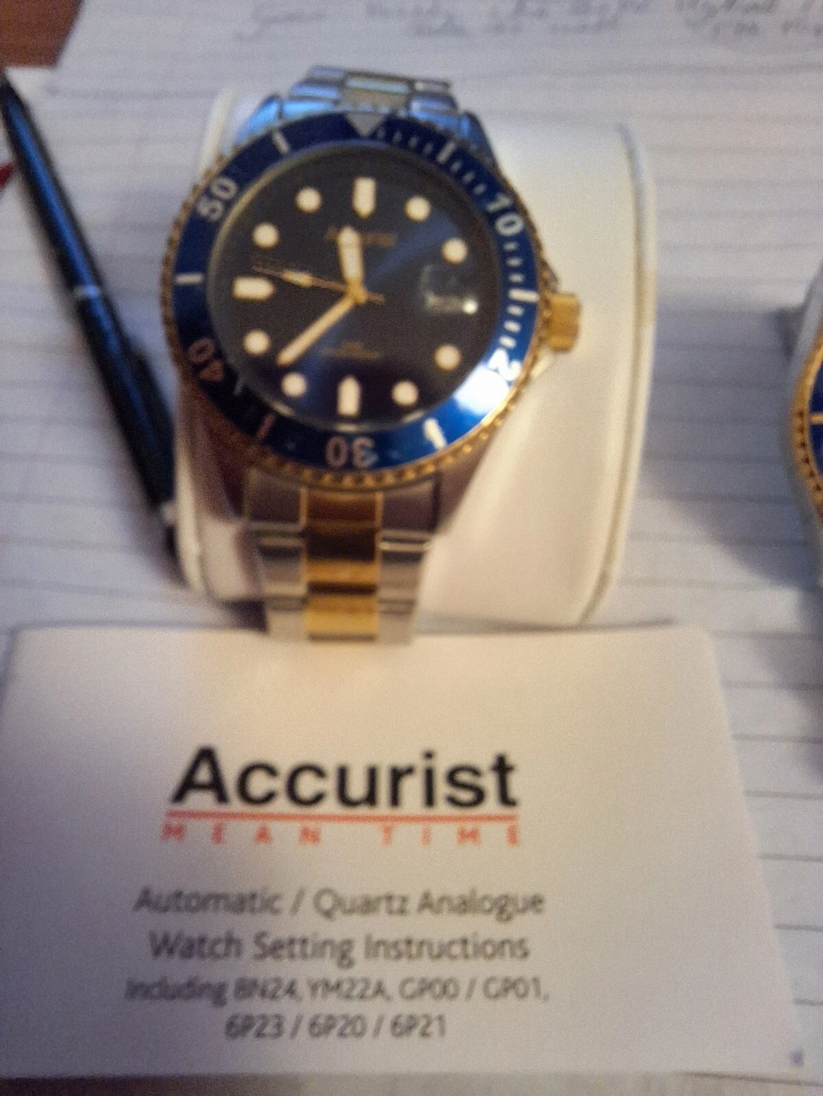 A VERY RARE VINTAGE MENS ACCURIST DIVERS WATCH in BLUE DIAL with Bi-METAL STRAP