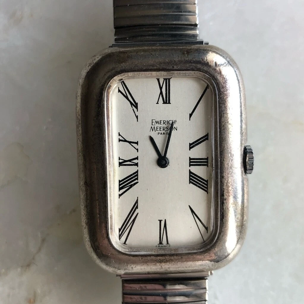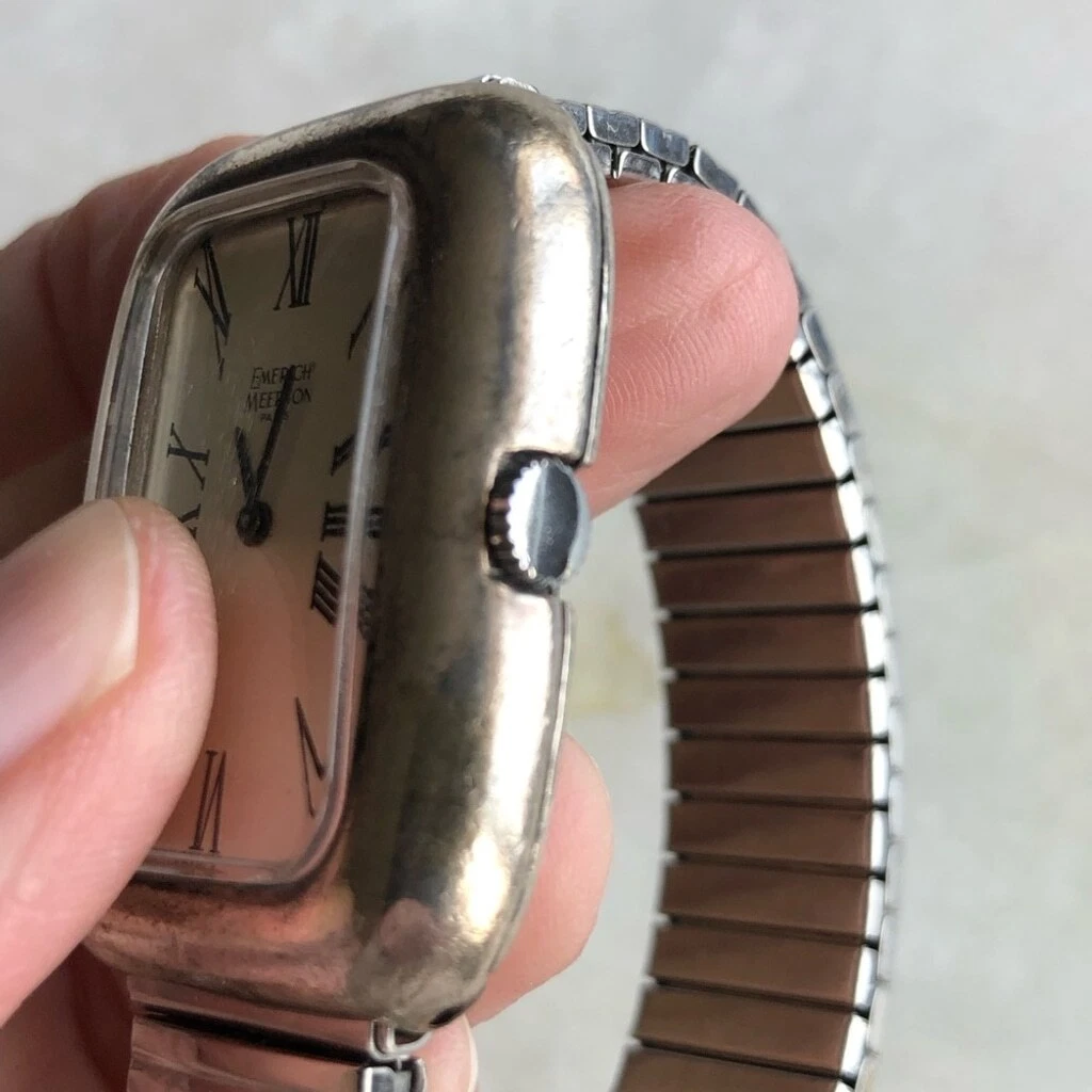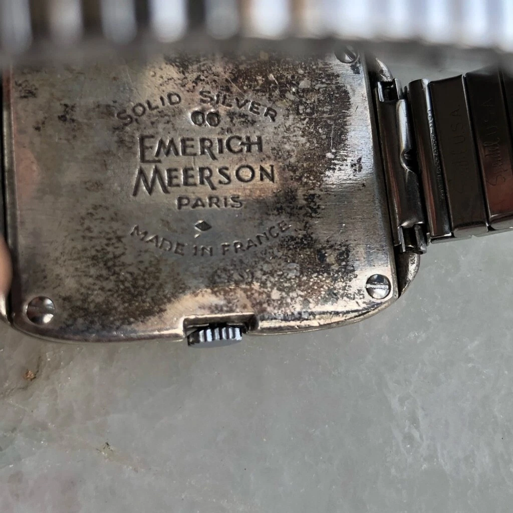 Vintage Emerich Meerson Paris Solid Sterling Silver Tank Rectangle Case Watch