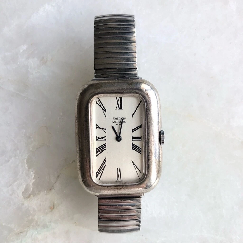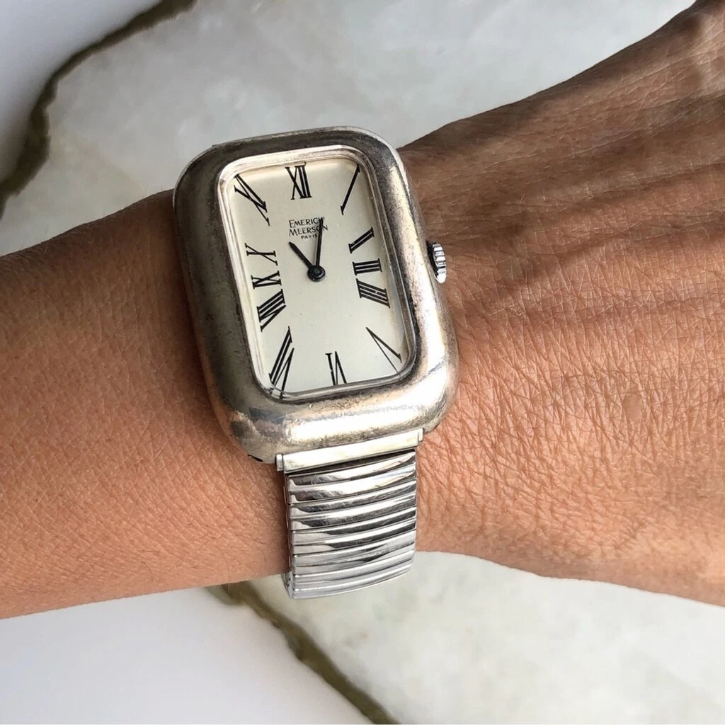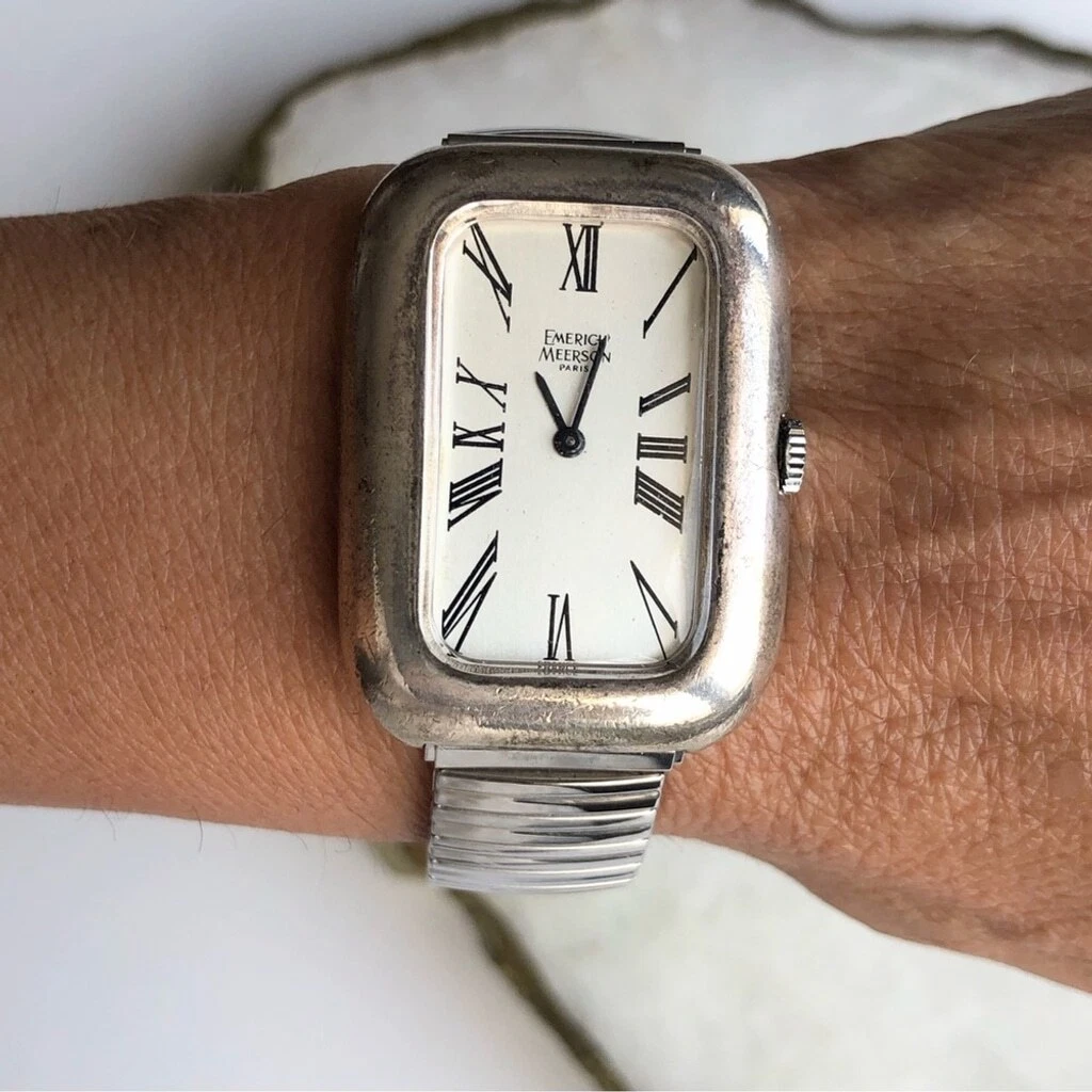 Vintage Emerich Meerson Paris Solid Sterling Silver Tank Rectangle Case Watch