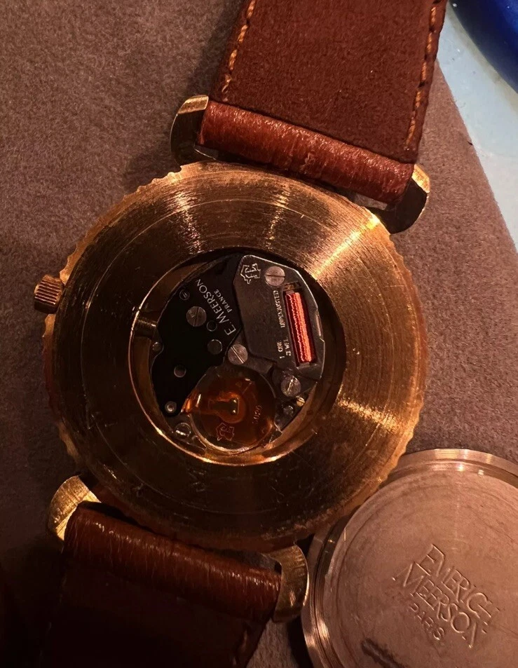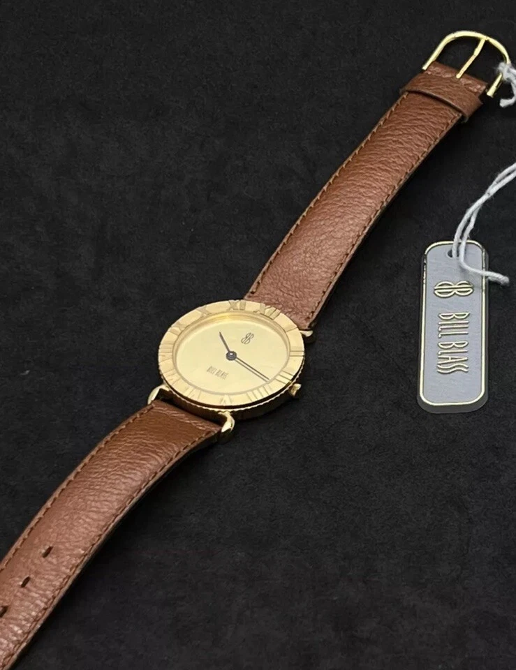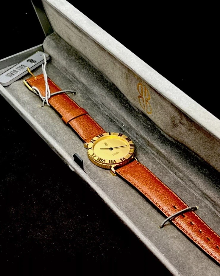 New Emerich Meerson BILL BLASS Paris Men's 30mm Quartz Watch 18KGP Coin Bezel