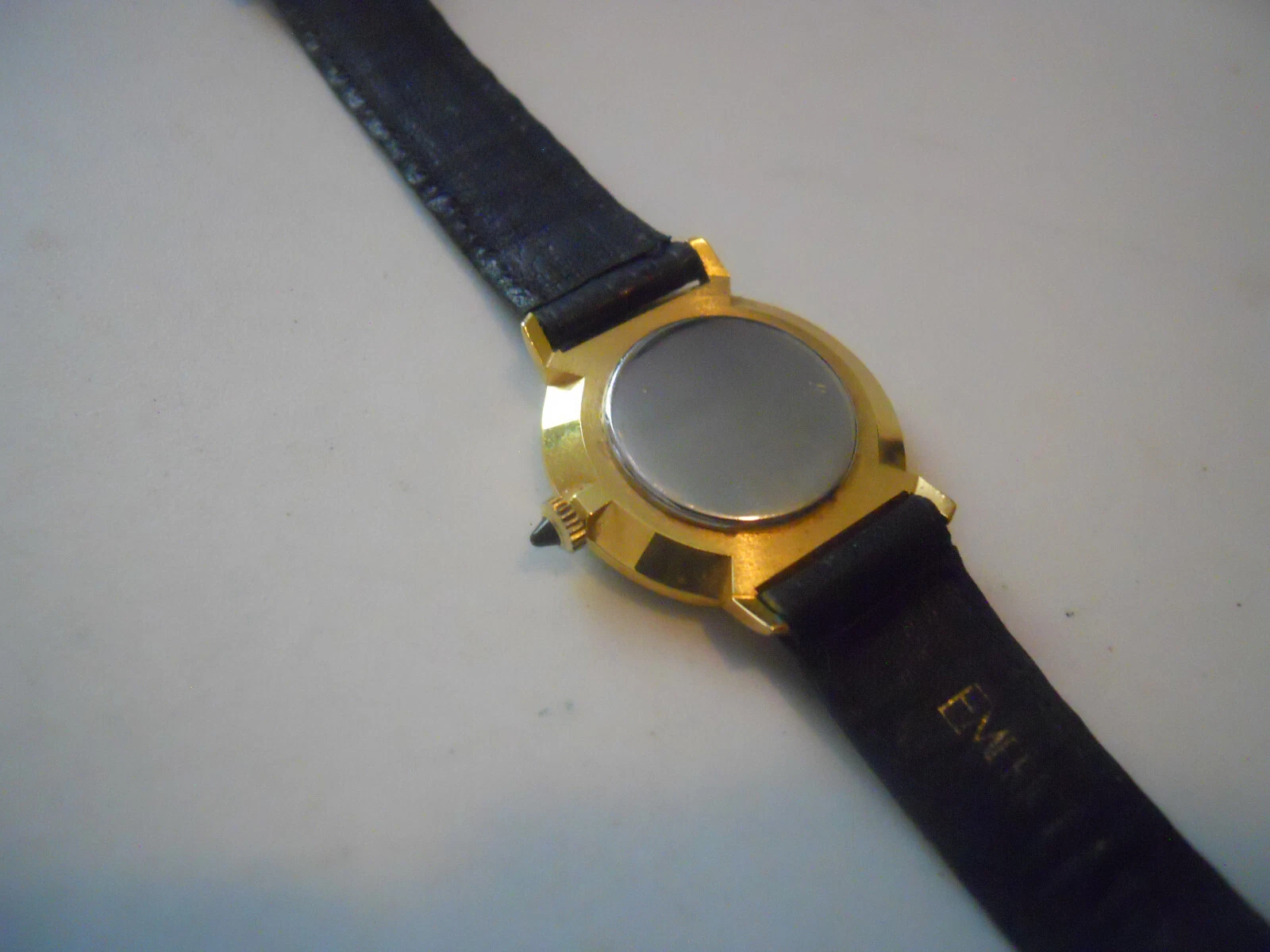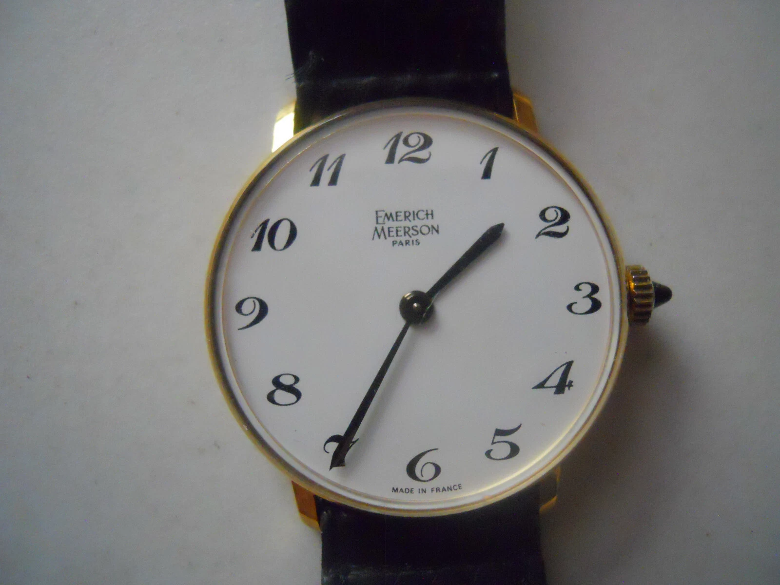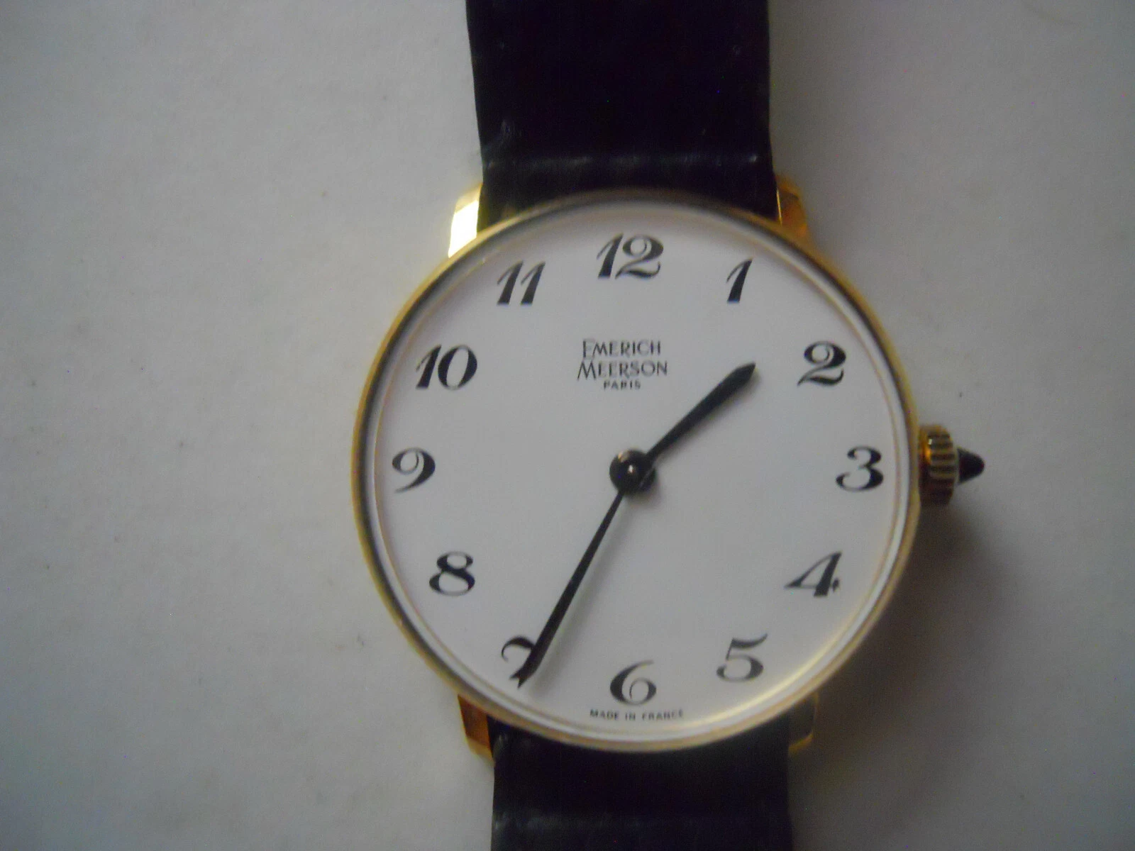 Vintage Emerich Meerson women's Black leather,winding up & Analog used watch.