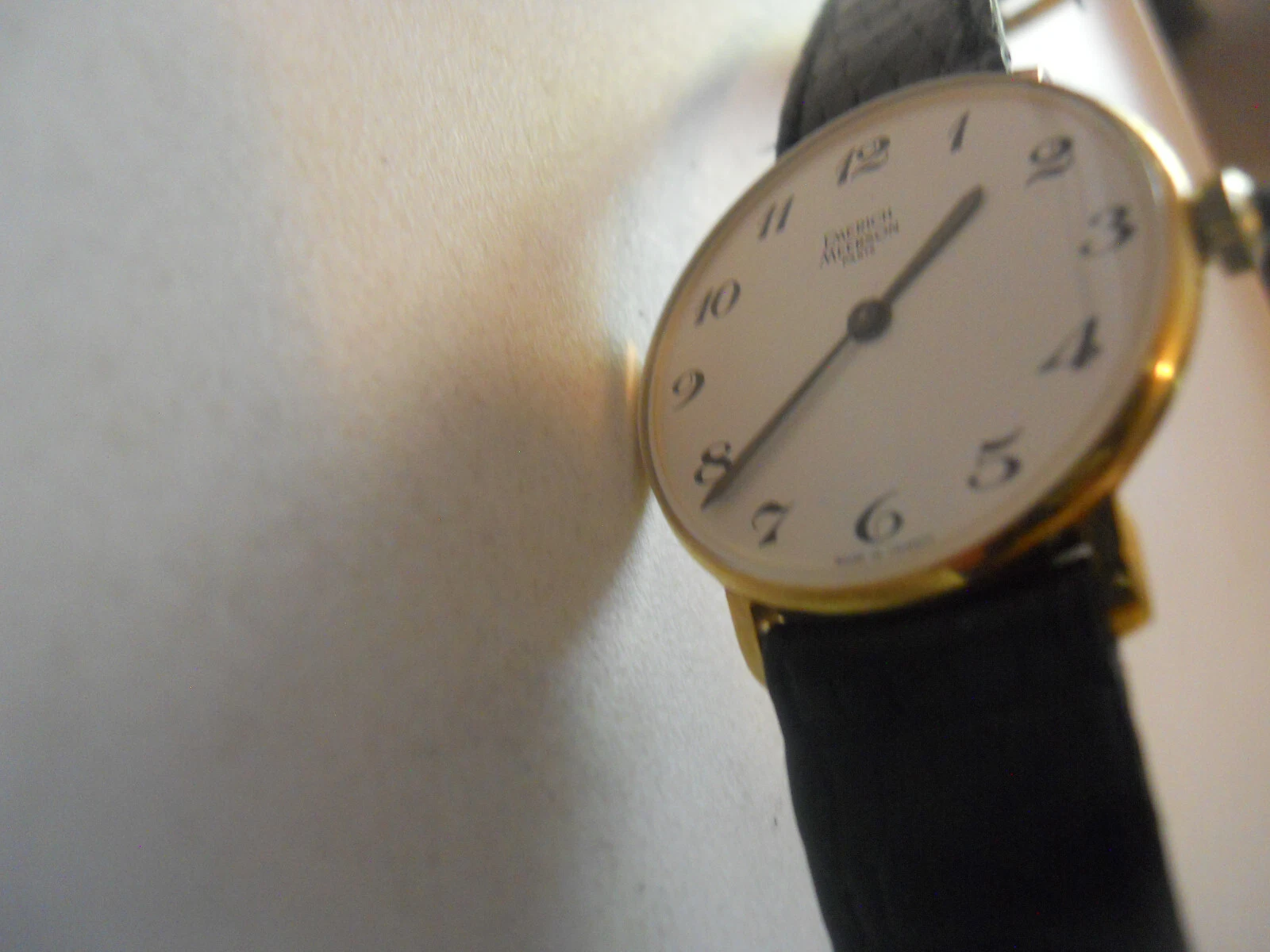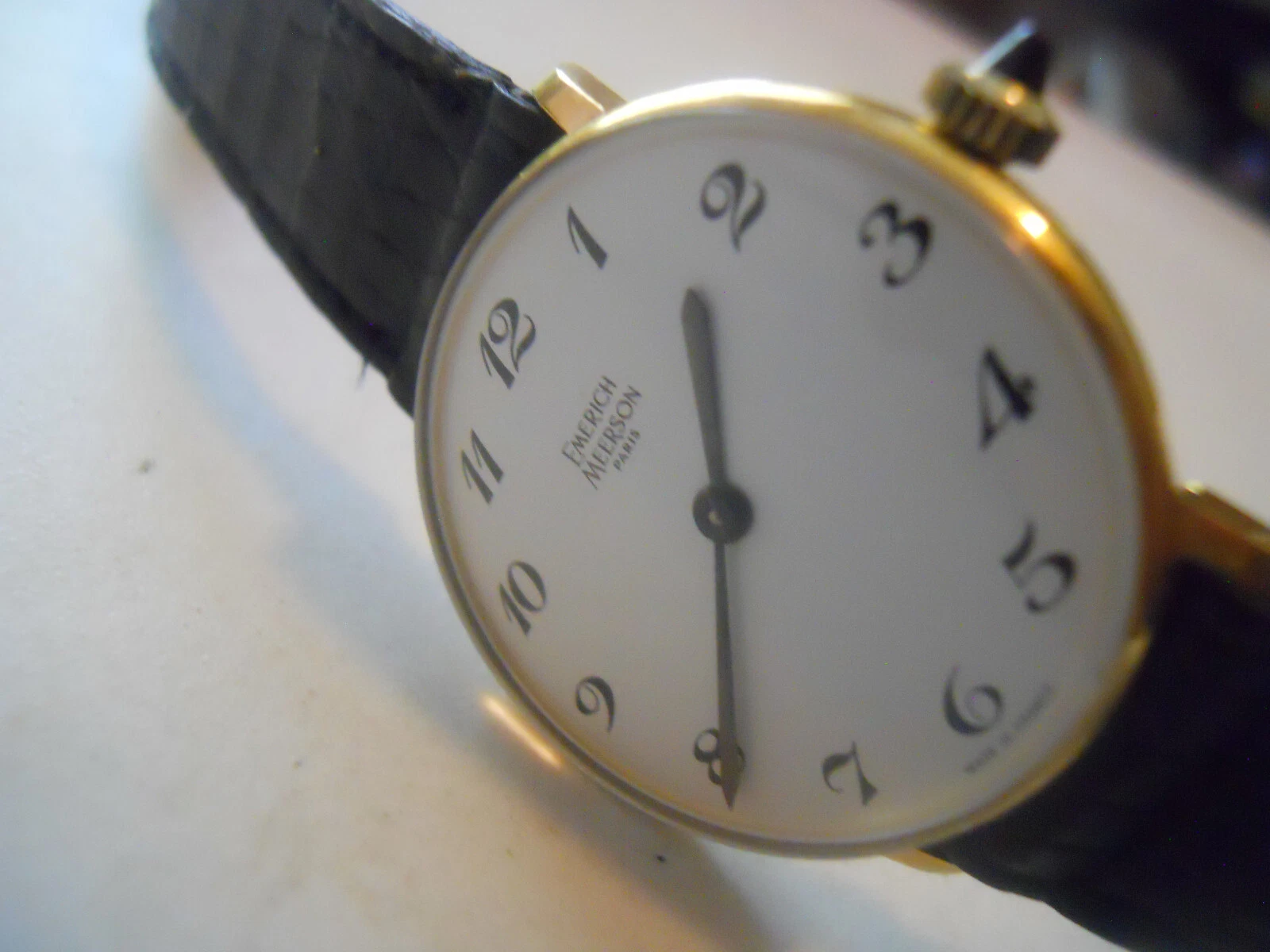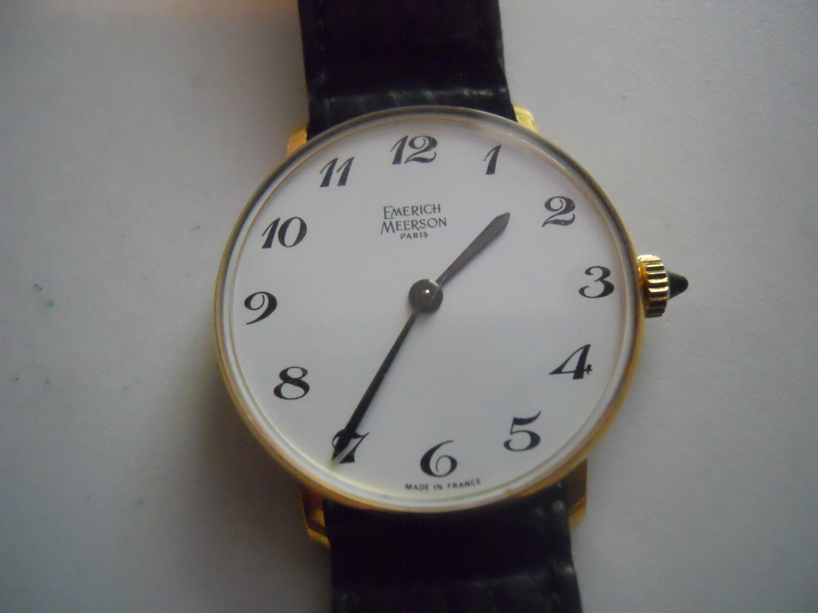 Vintage Emerich Meerson women's Black leather,winding up & Analog used watch.
