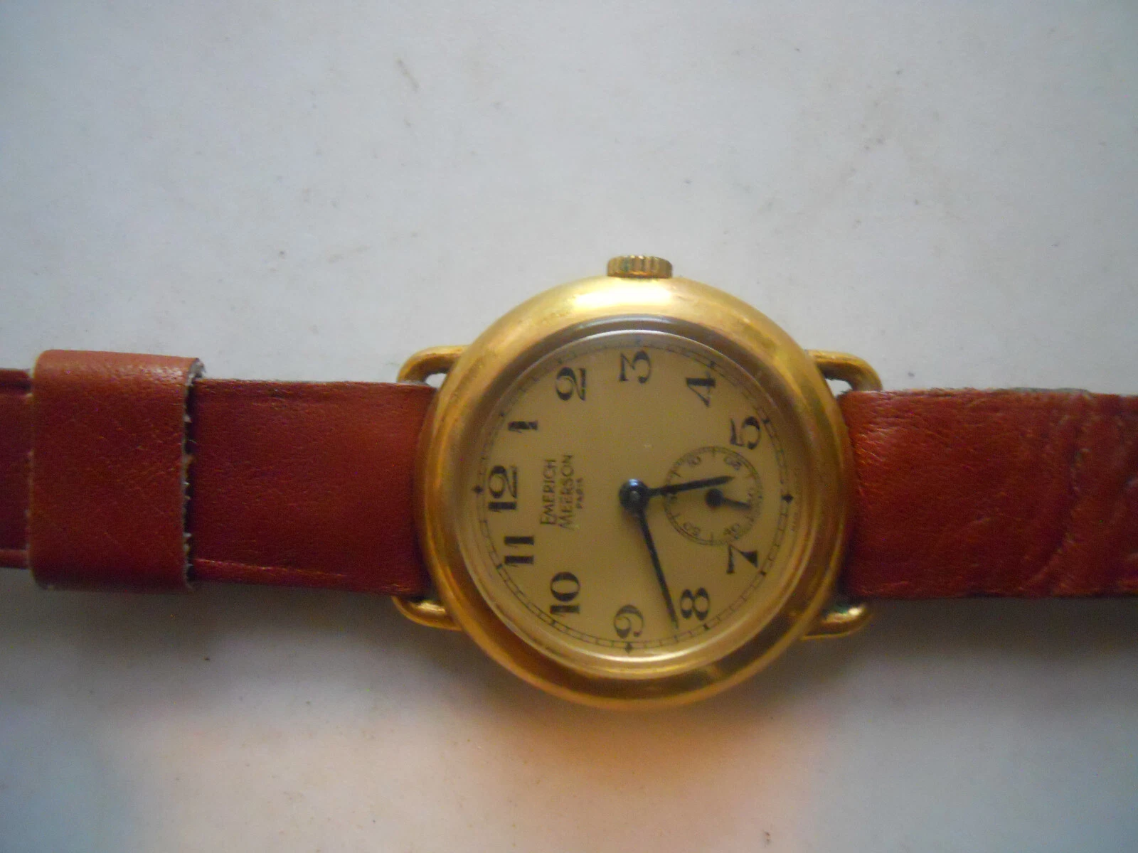 Vintage Emerich Meerson women's Brown leather band,wind up & Analog used watch.