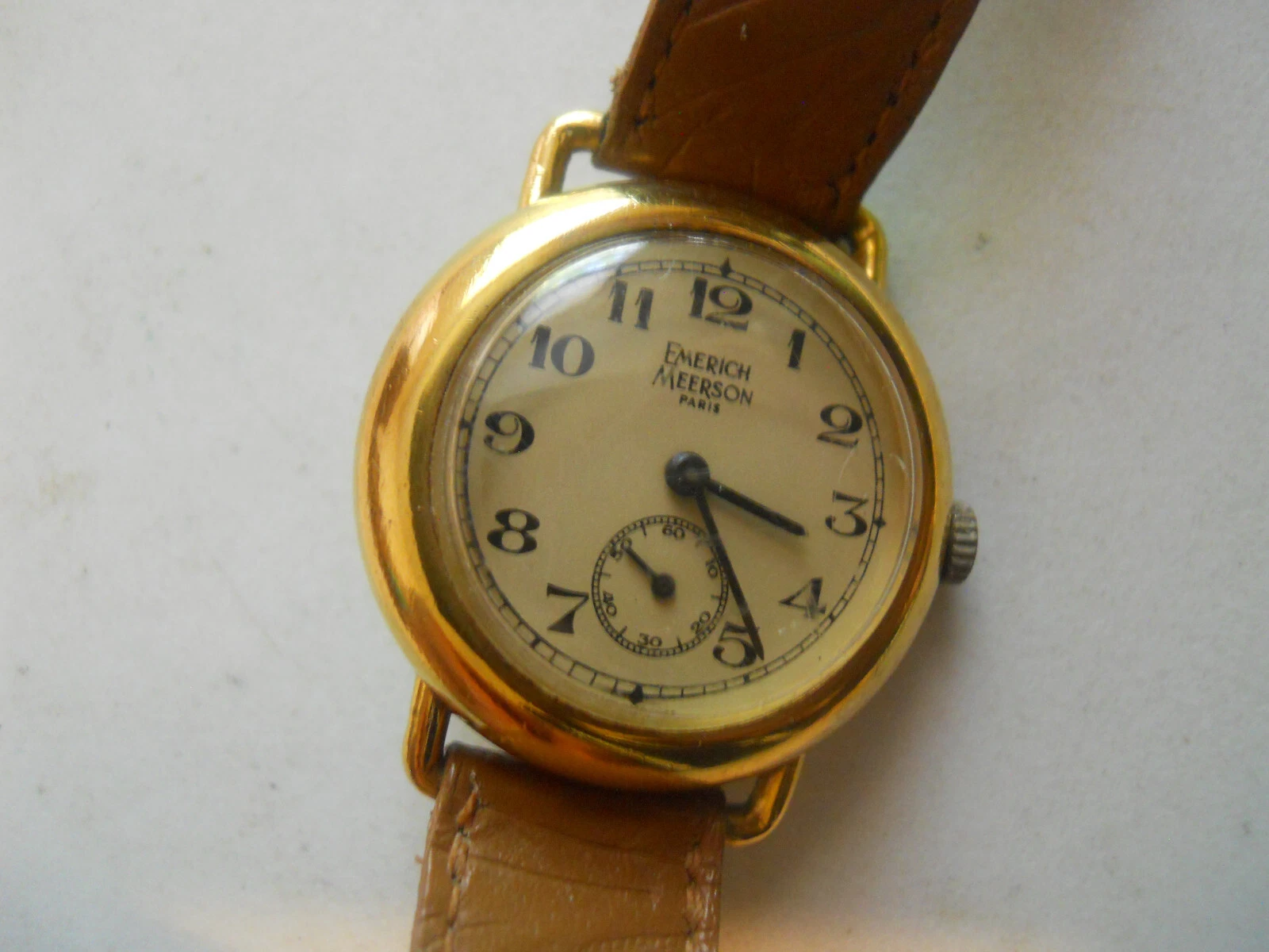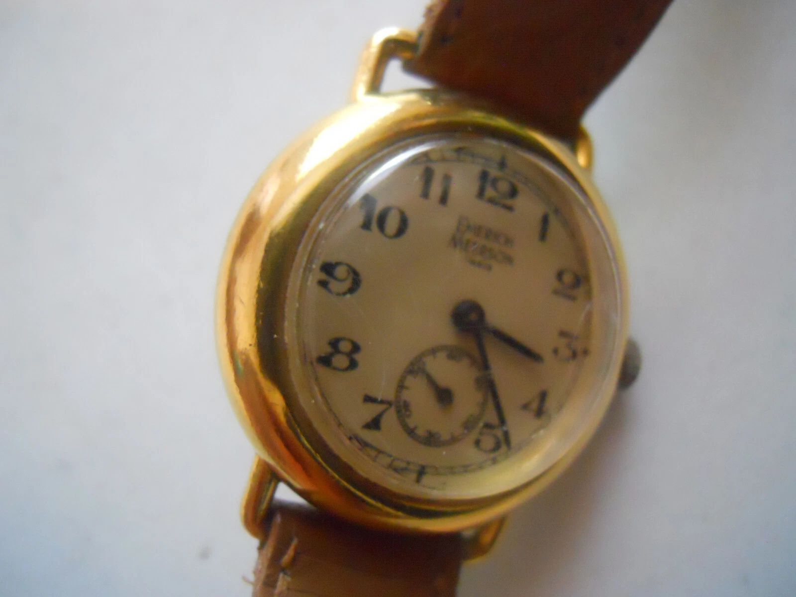 Vintage Emerich Meerson women's Brown leather band,wind up & Analog used watch.