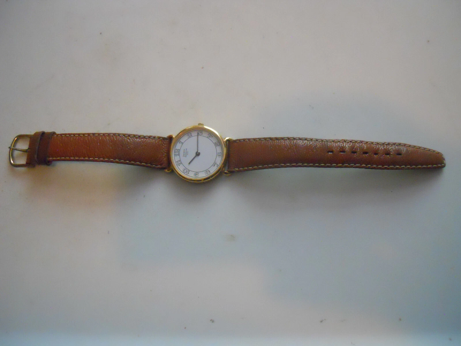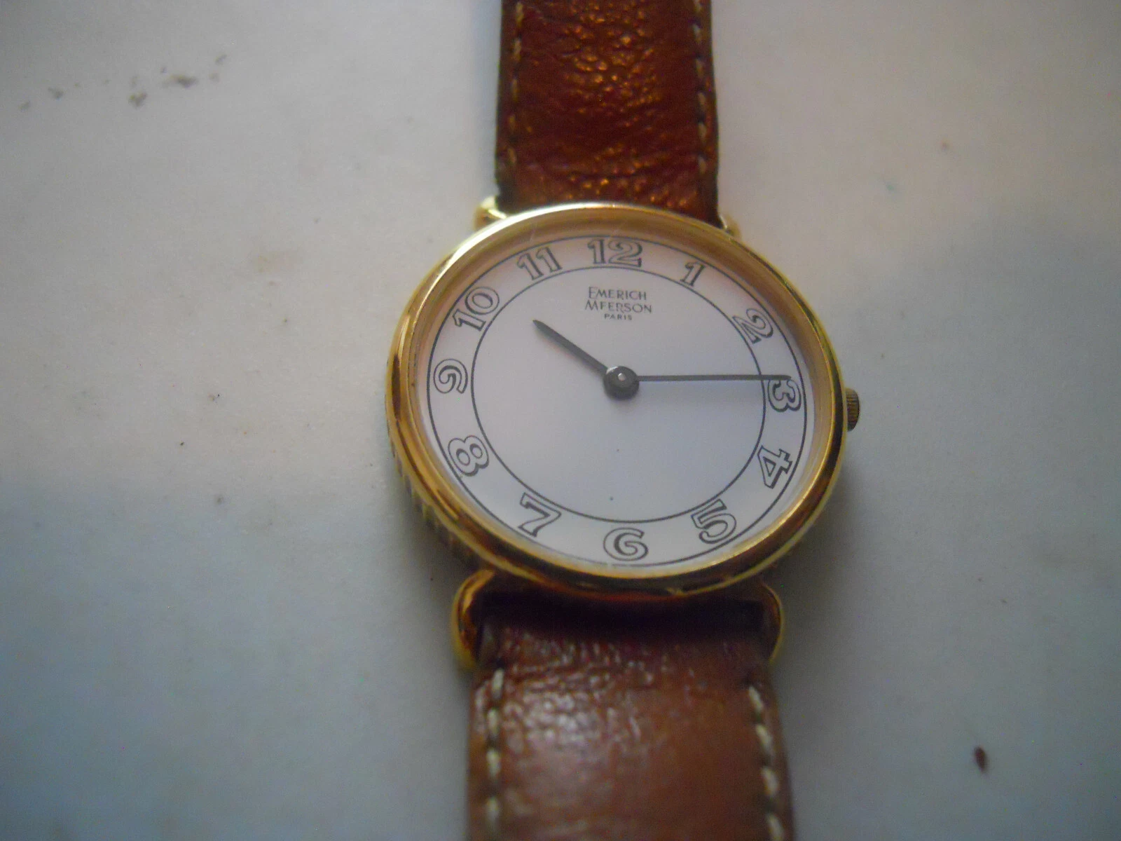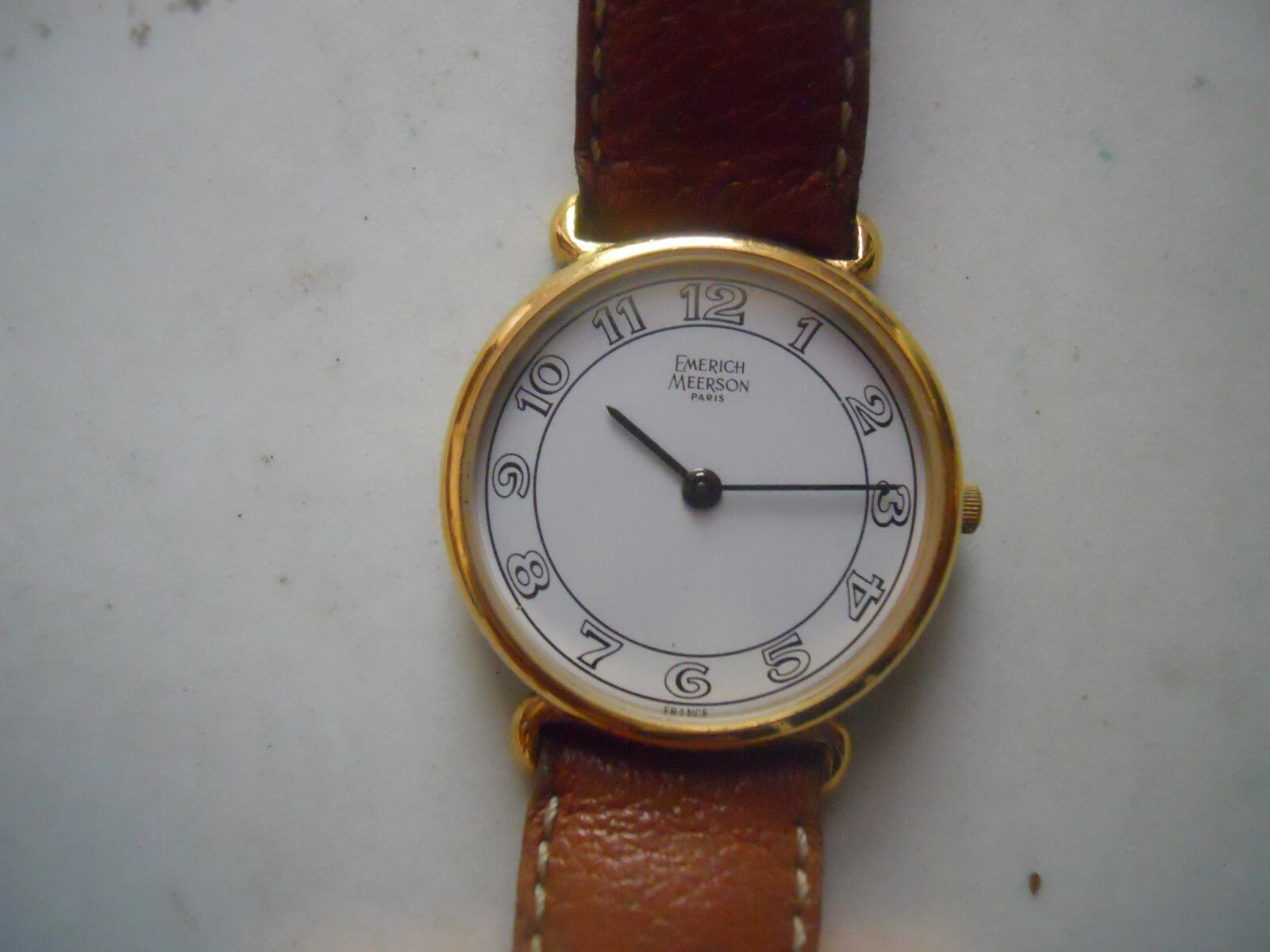 Vintage Emerich Meerson women's Brown leather band & Analog used watch.