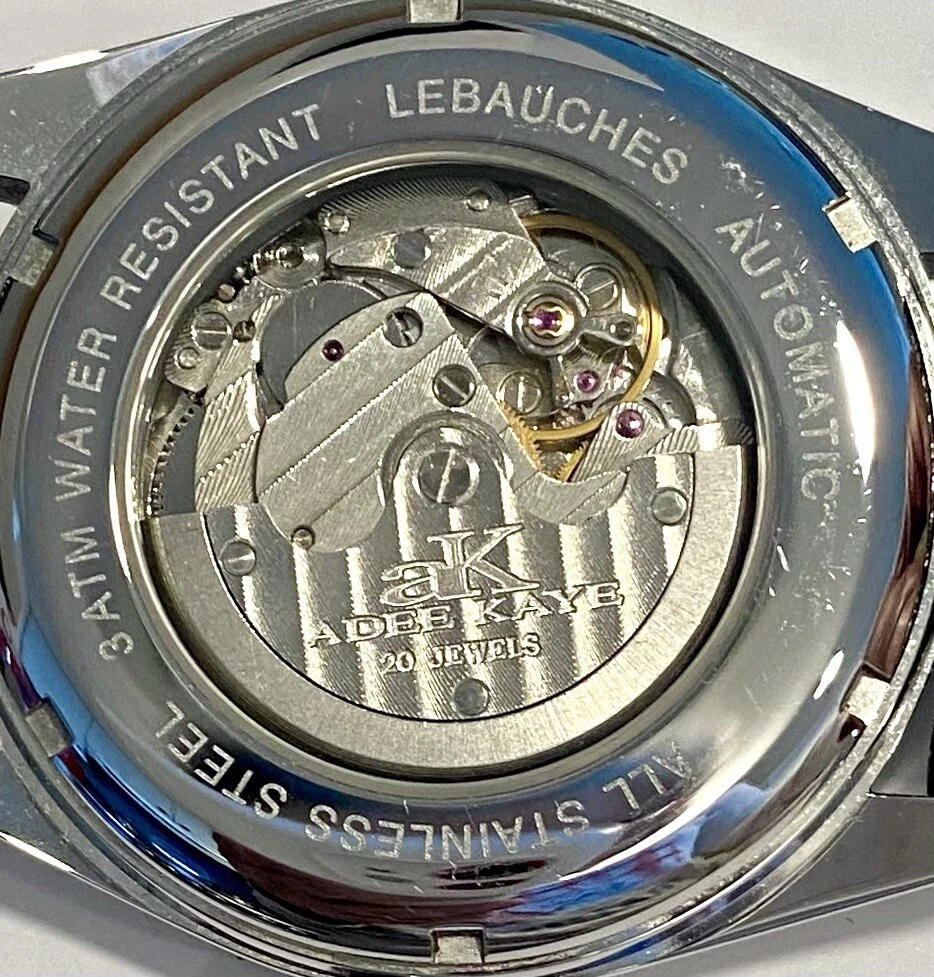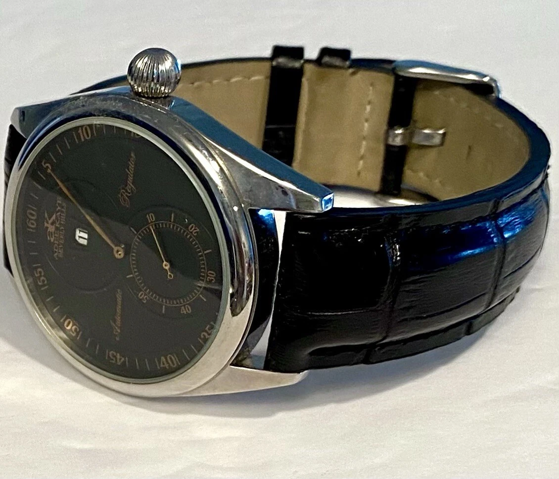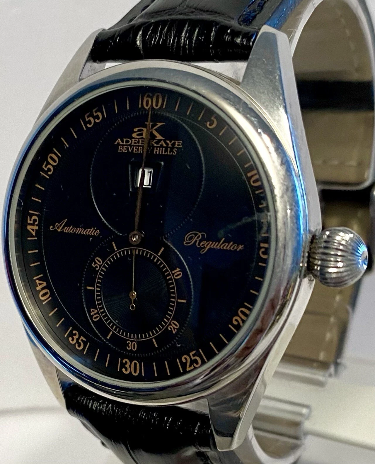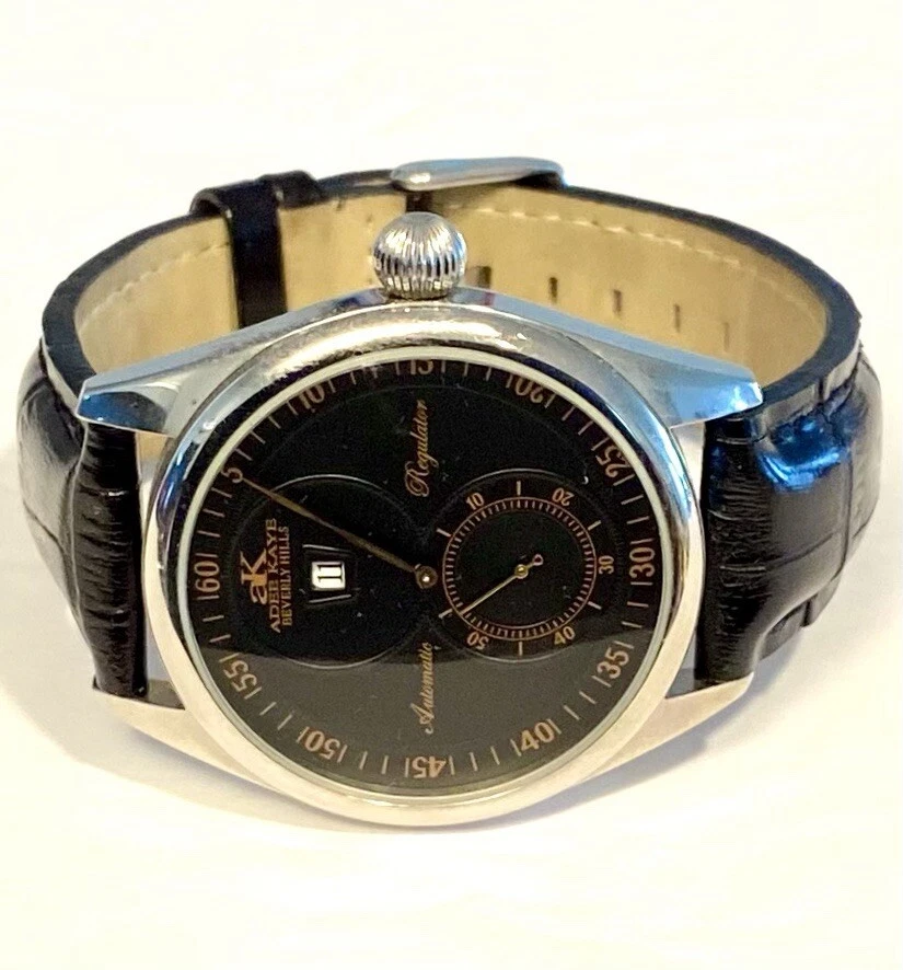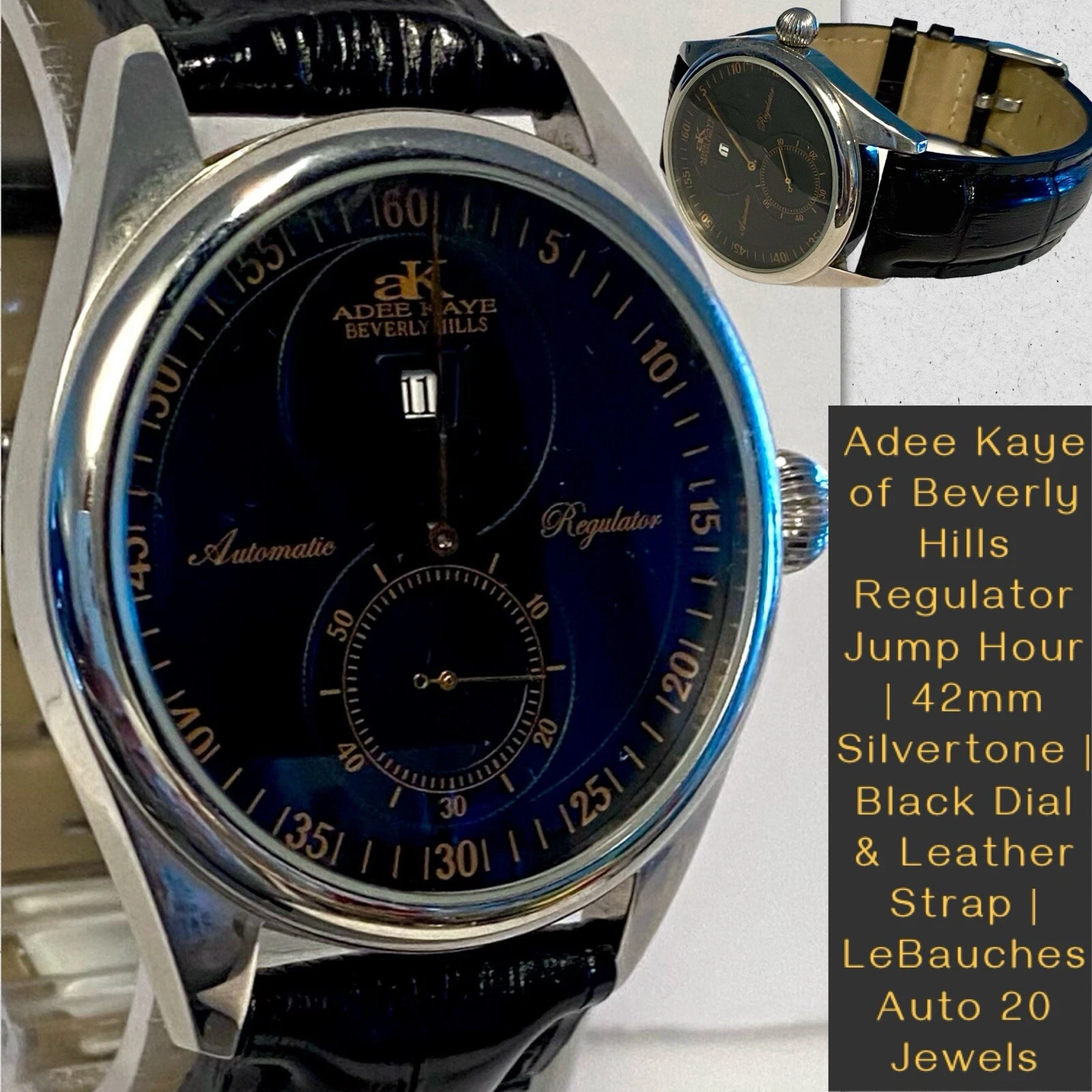 42mm Auto JUMP HOUR Regulator Lebauches Black Dial & Strap ADEE KAYE Mens Watch