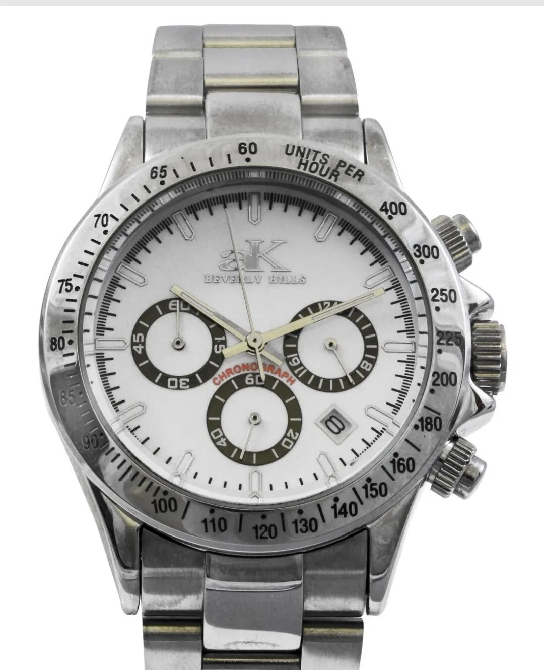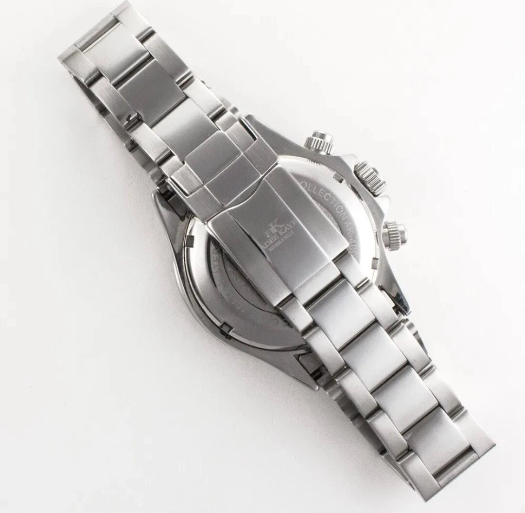Adee Kaye Men's Stainless Steel Sports White Chronograph Watch