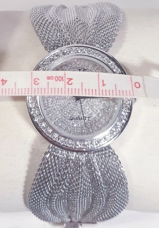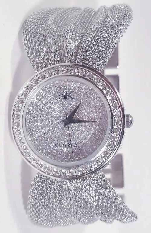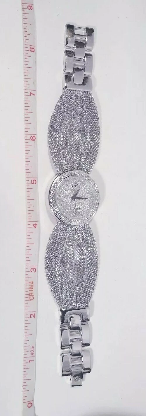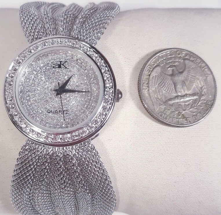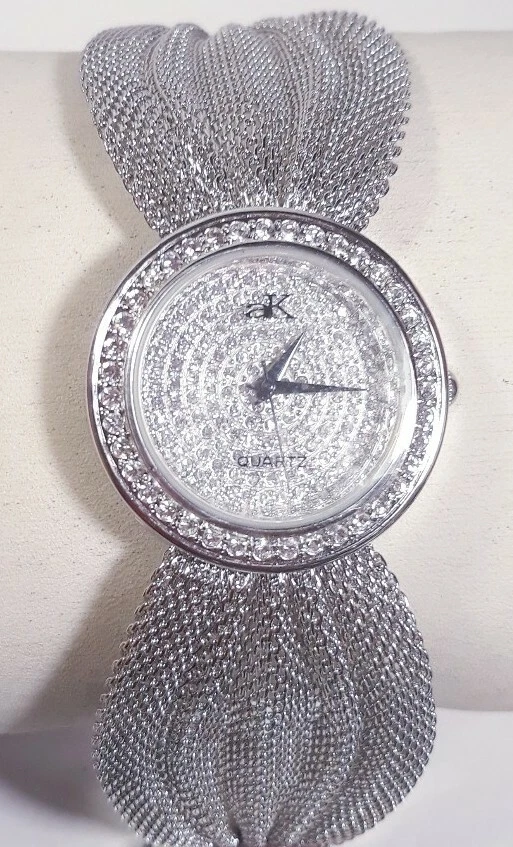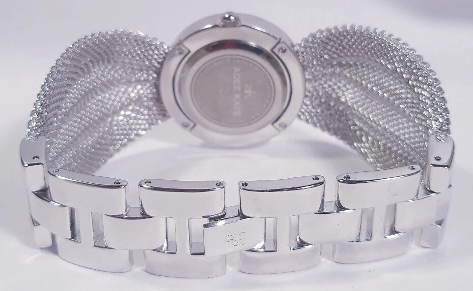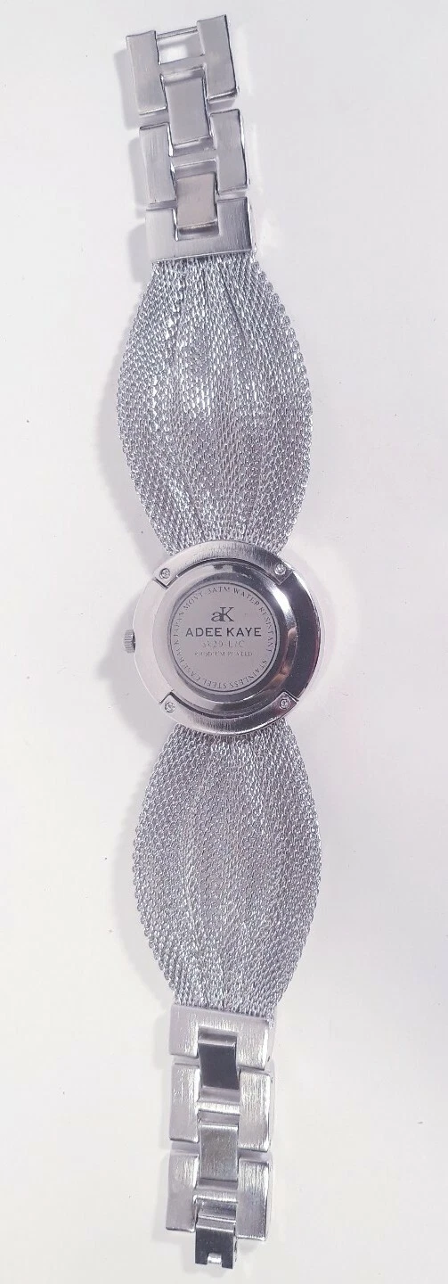 Women Adee Kaye Watch Ak20l Rhodium Plated Silver Mesh Band Austrian Crystal
