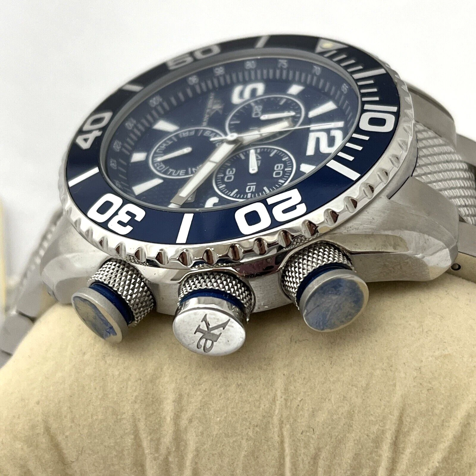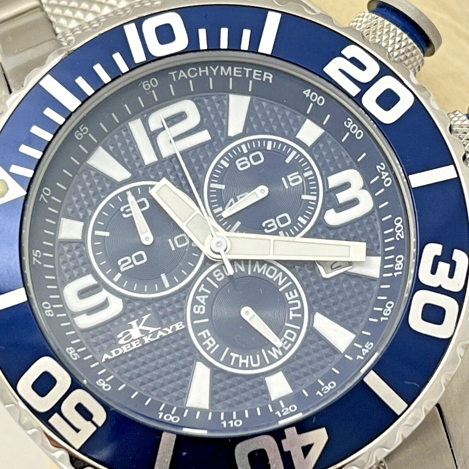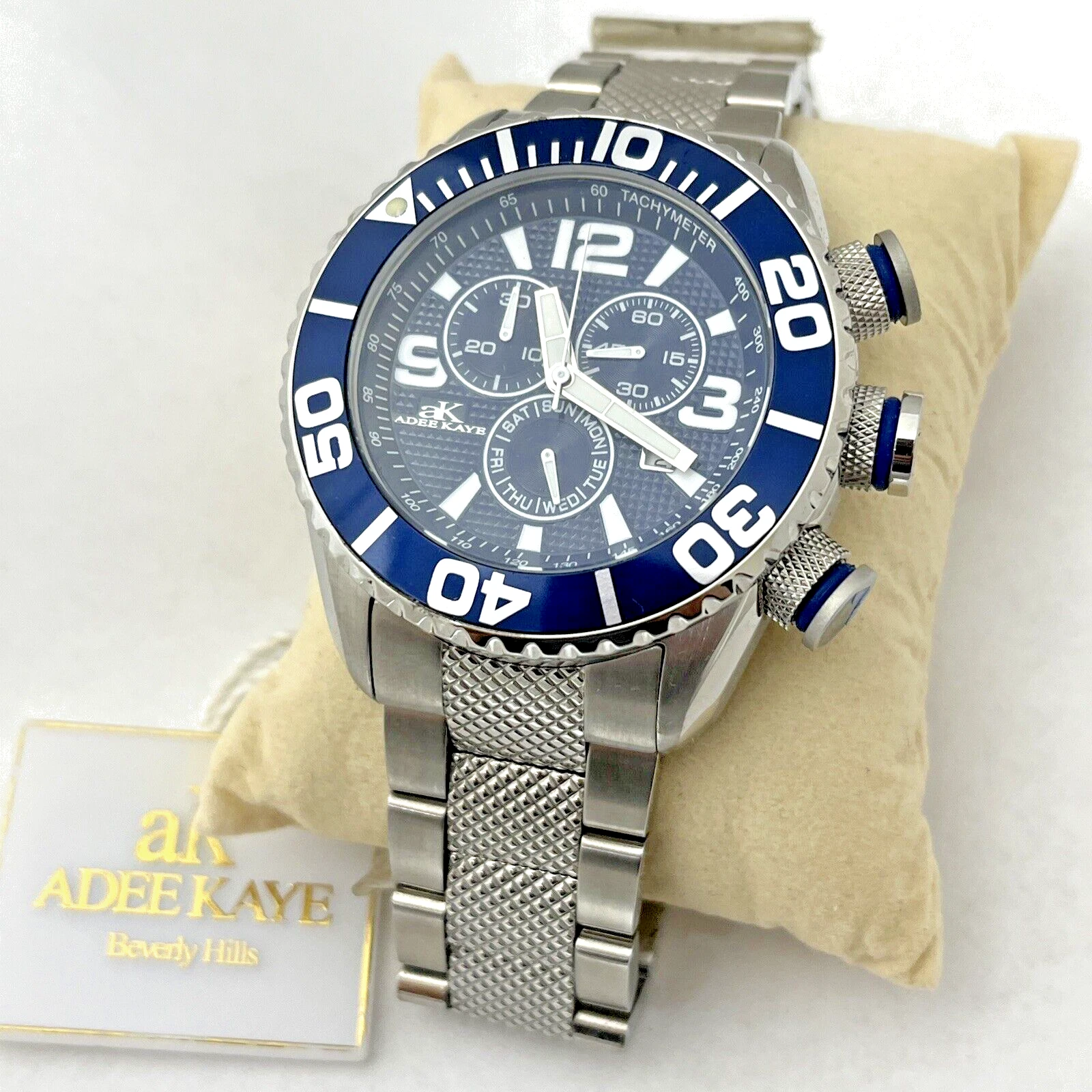 Adee Kaye Men's Chronograph Watch AK5434-M Blue Dial SS Bracelet Box/Warranty