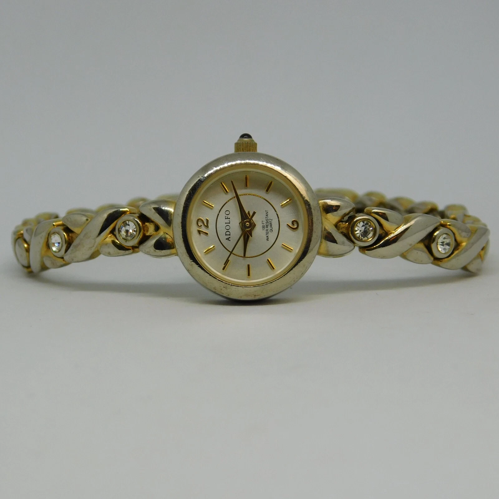ADOLFO AF2188 Two Tone Quartz Analog Women's Watch Sz. 7" New Battery