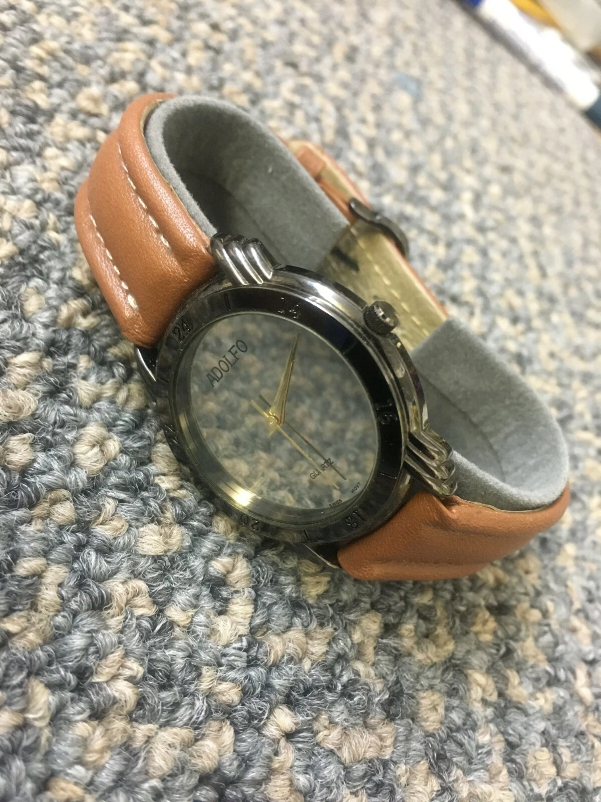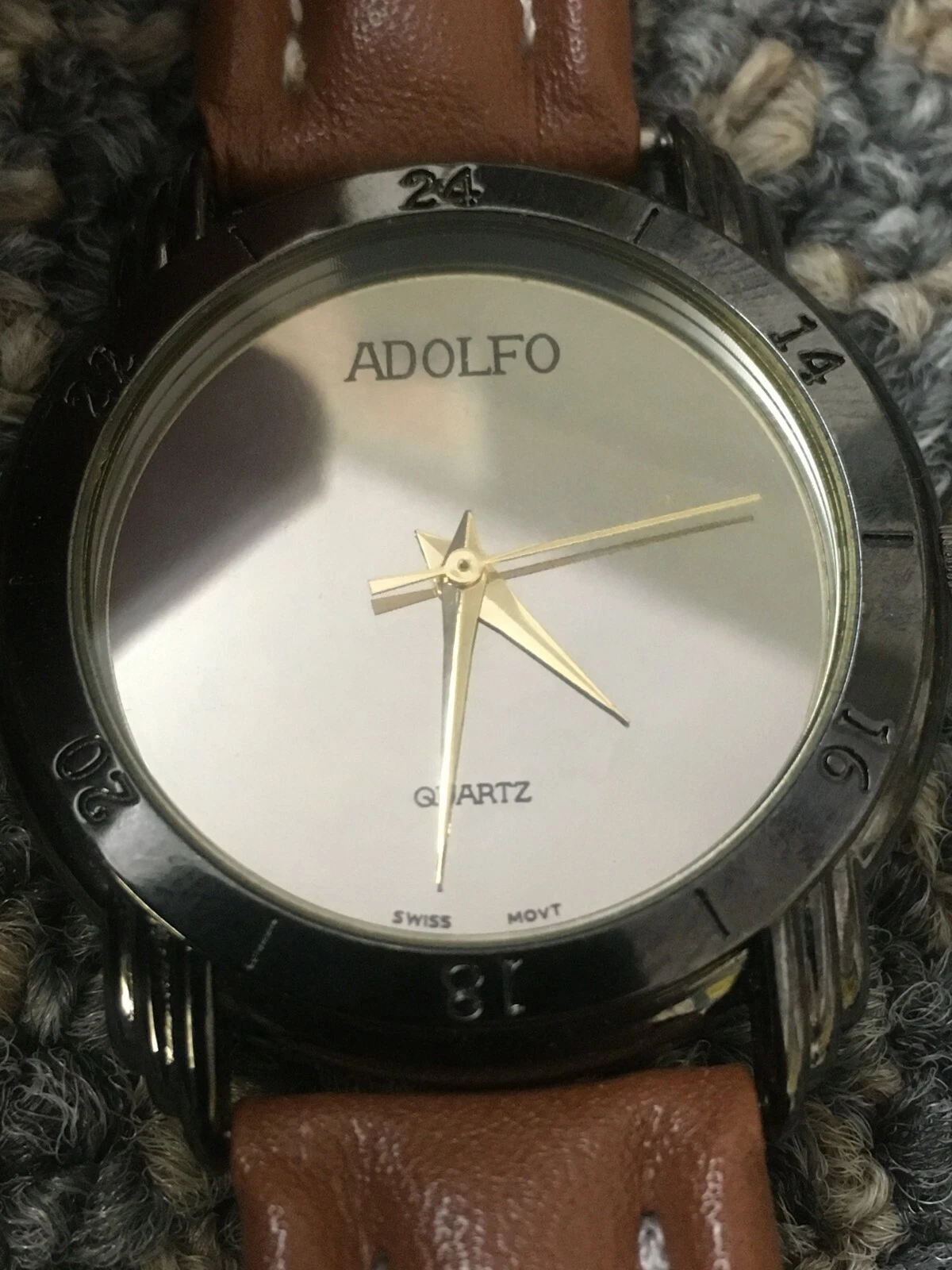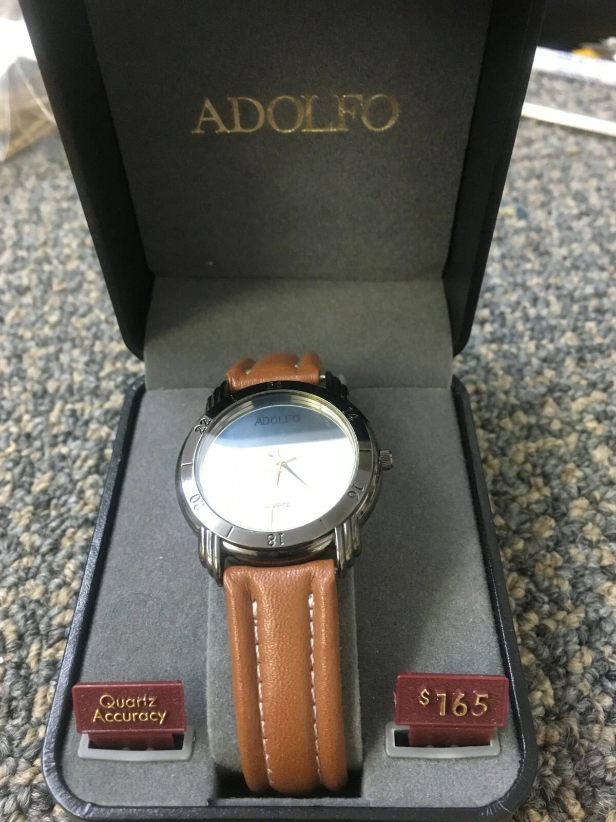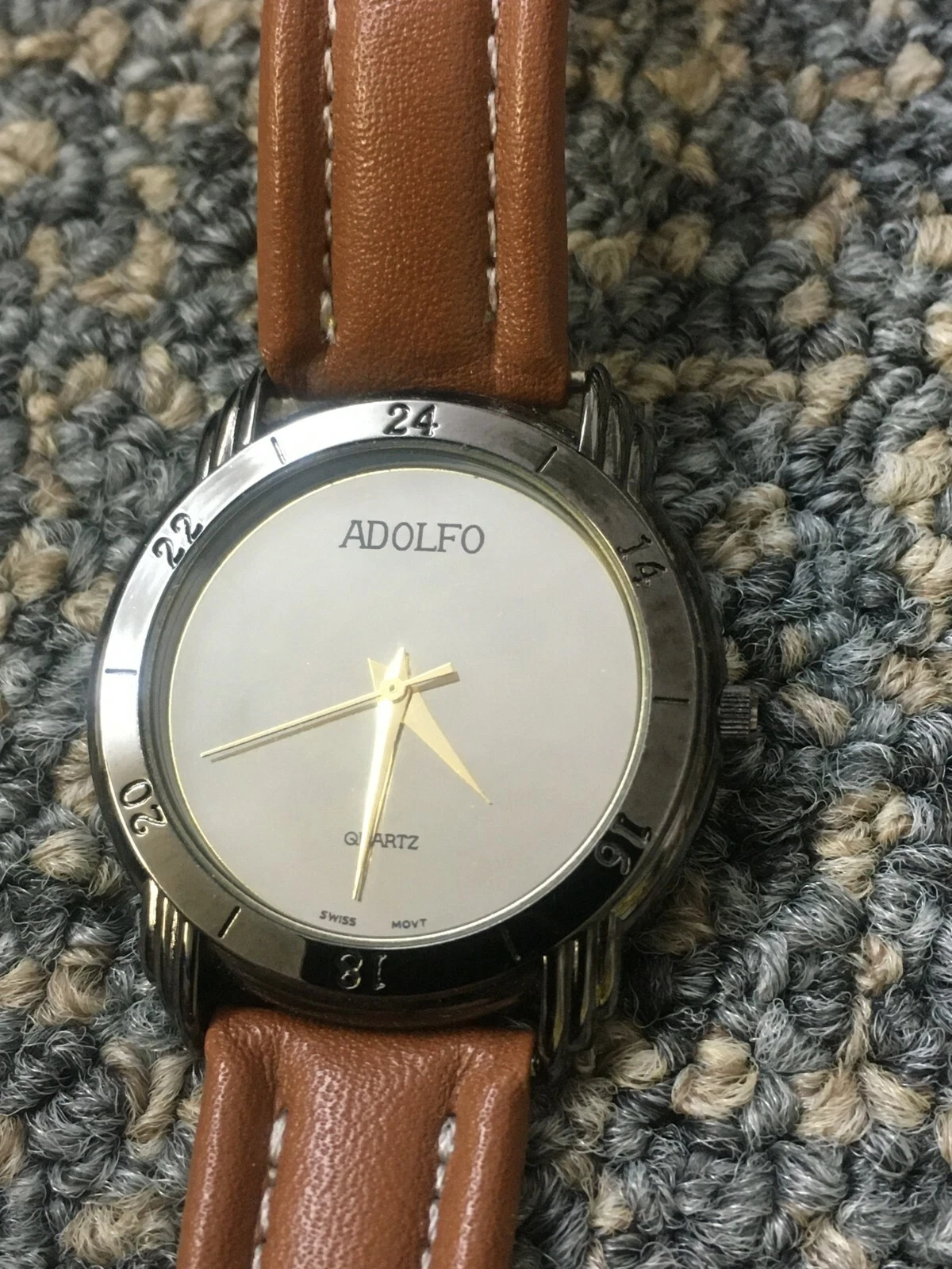 Adolfo Swiss mens watch authentic NEW 8" leather band box battery NEW  MSRP $165