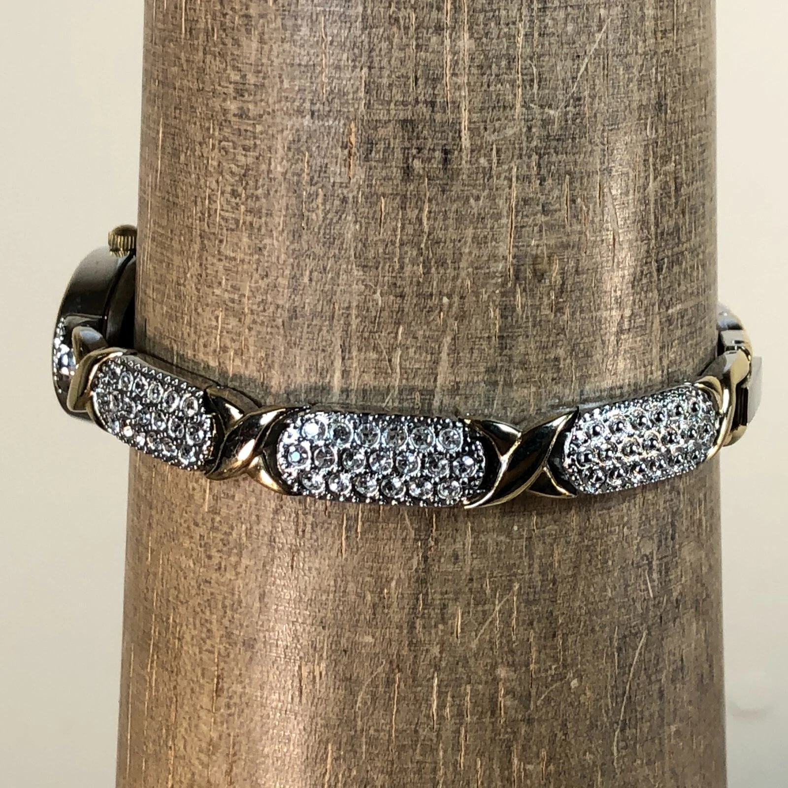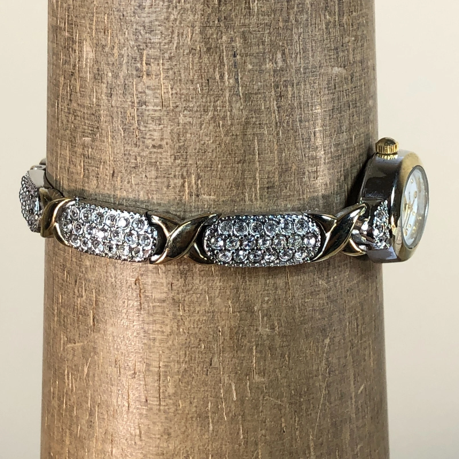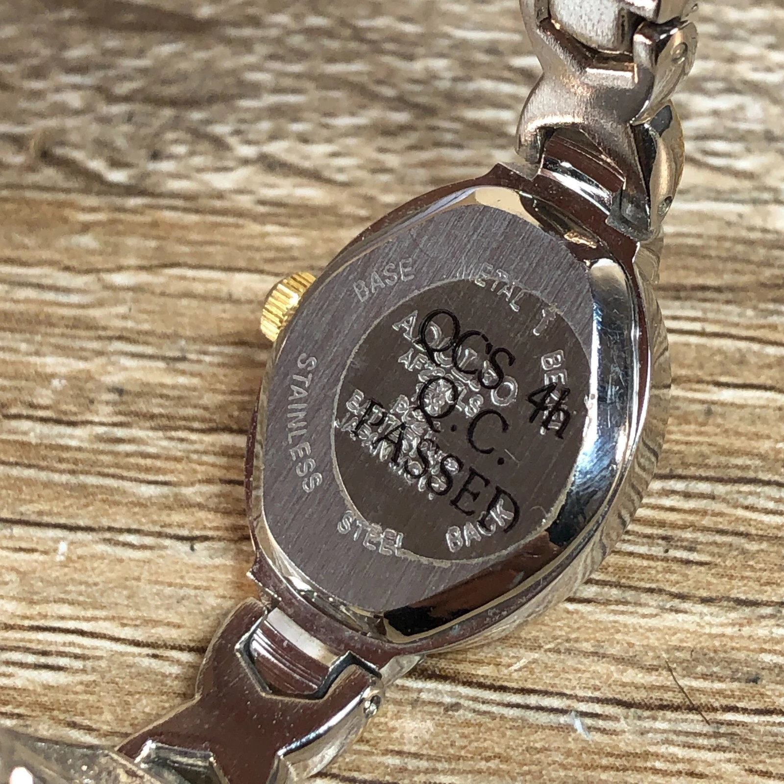 Adolfo Women White Mother of Pearl Dial 18mm Oval Pave Quartz Analog Watch 7"