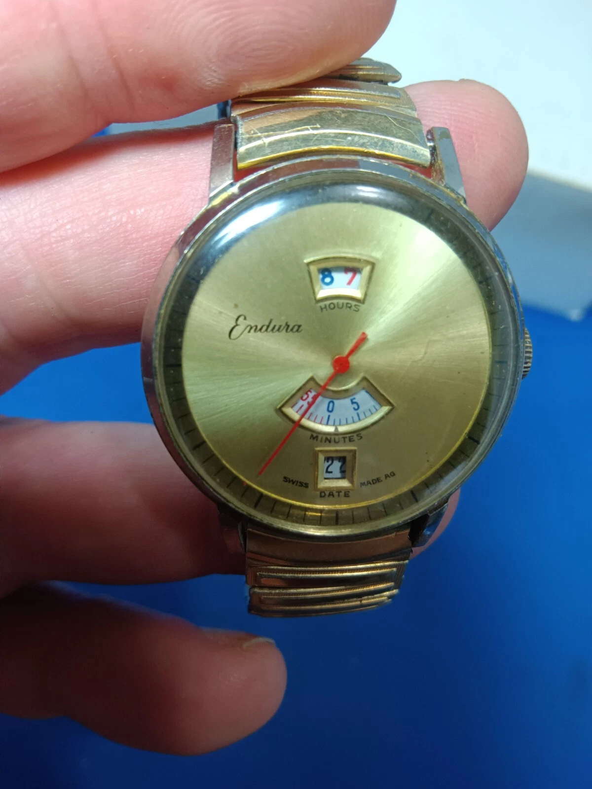 Endura Jump Hour w date Wristwatch watch vintage with Band 19267