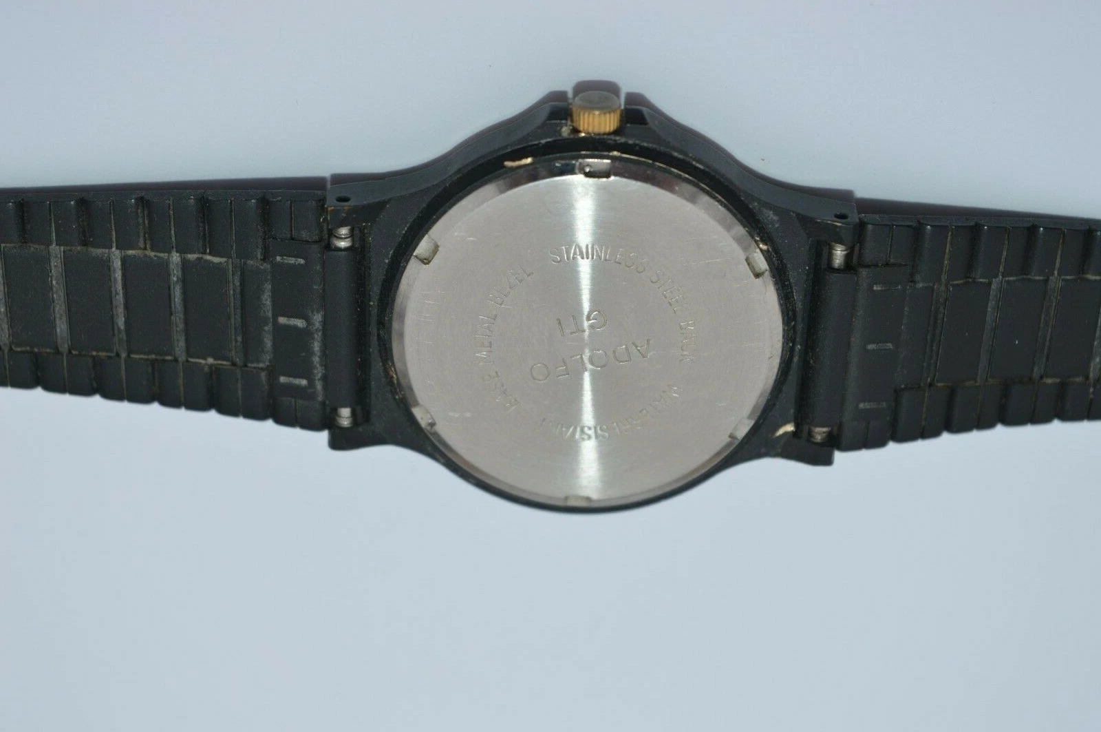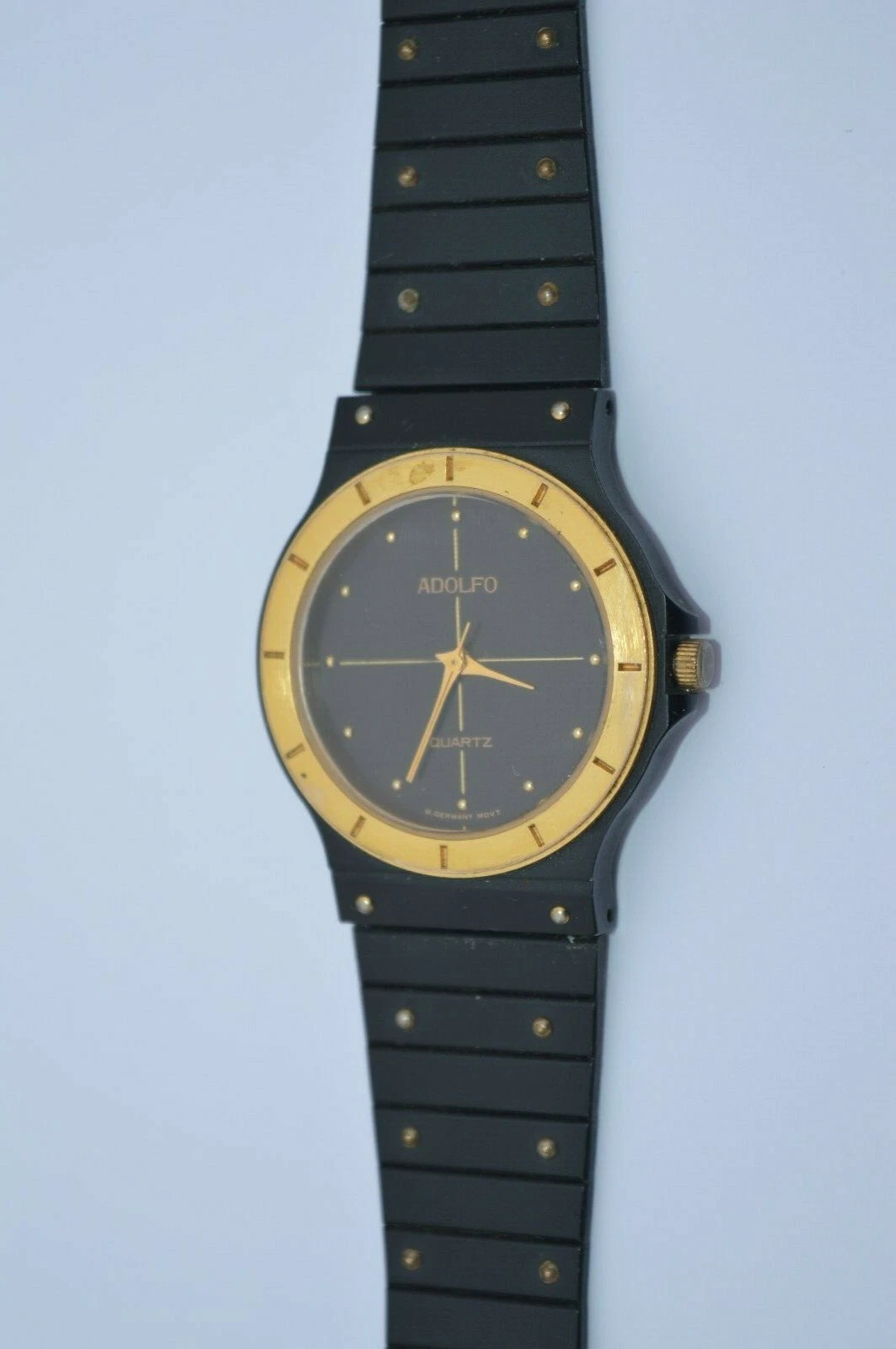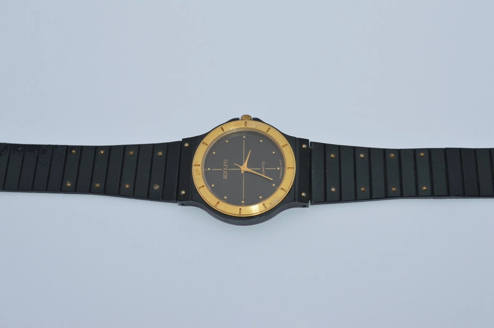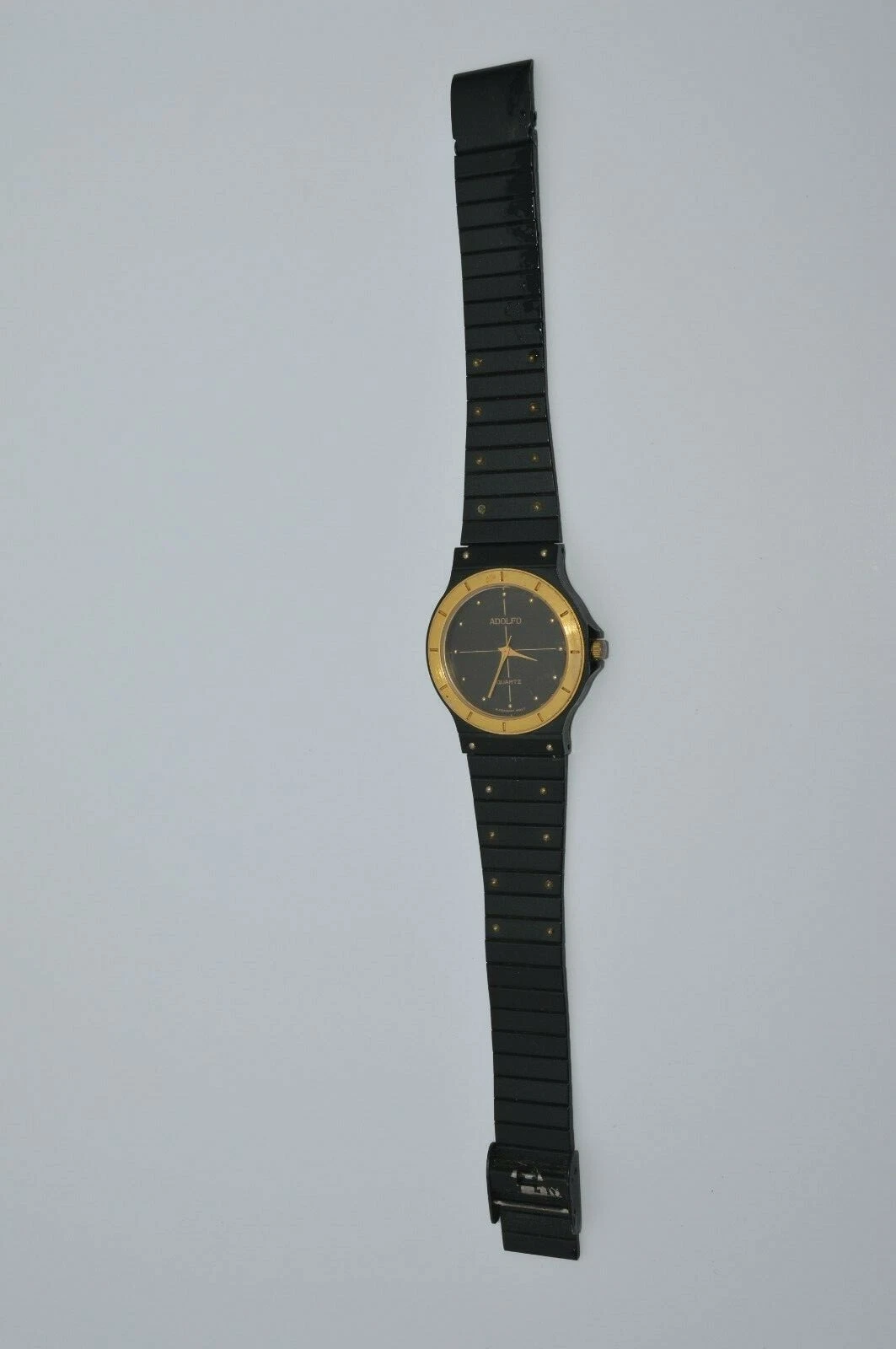 ADOLFO Quartz Watch Black&Gold tone, very nice Runs great New batt. GUARANTEED
