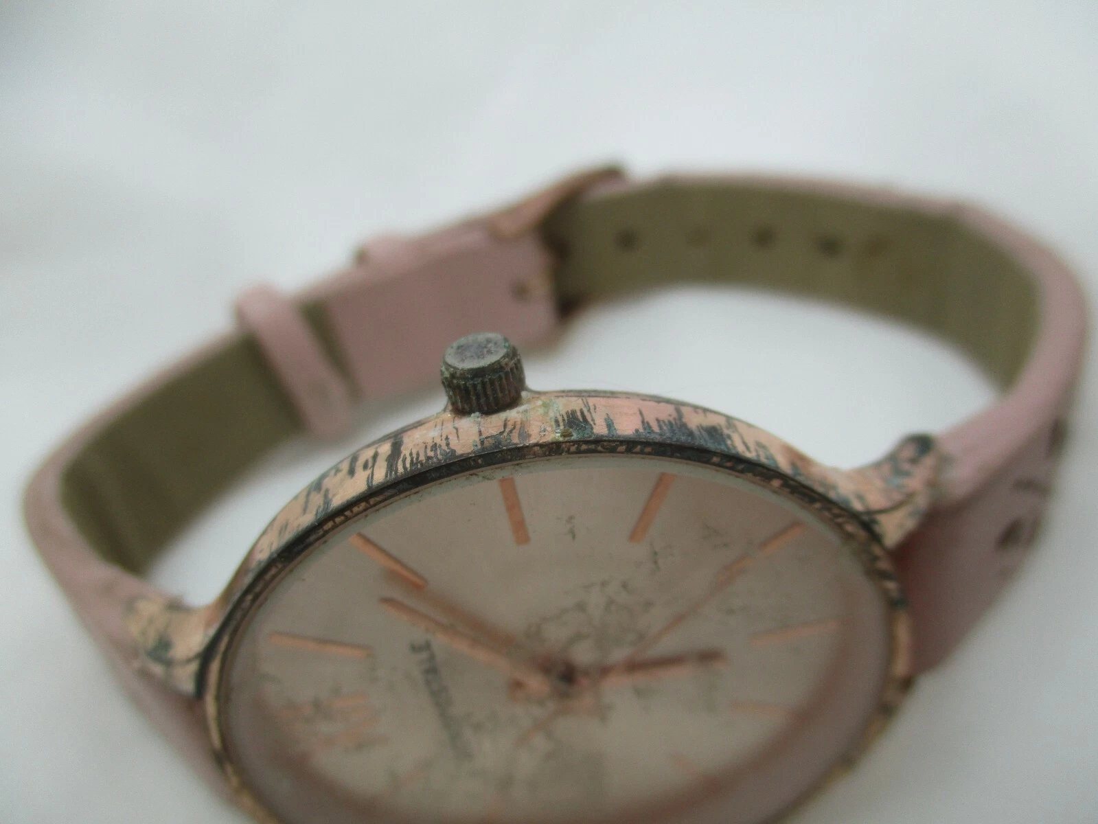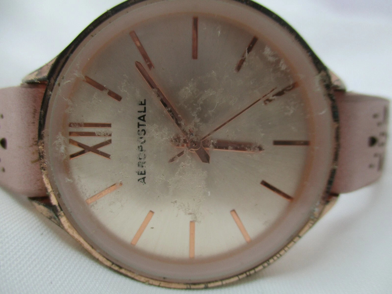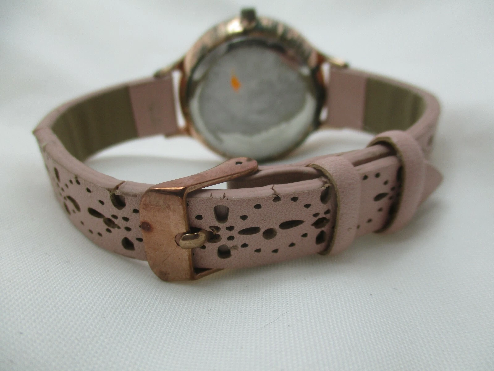 Aeropostale Analog Wristwatch Pink Floral Buckle Band Rose Gold Tone
