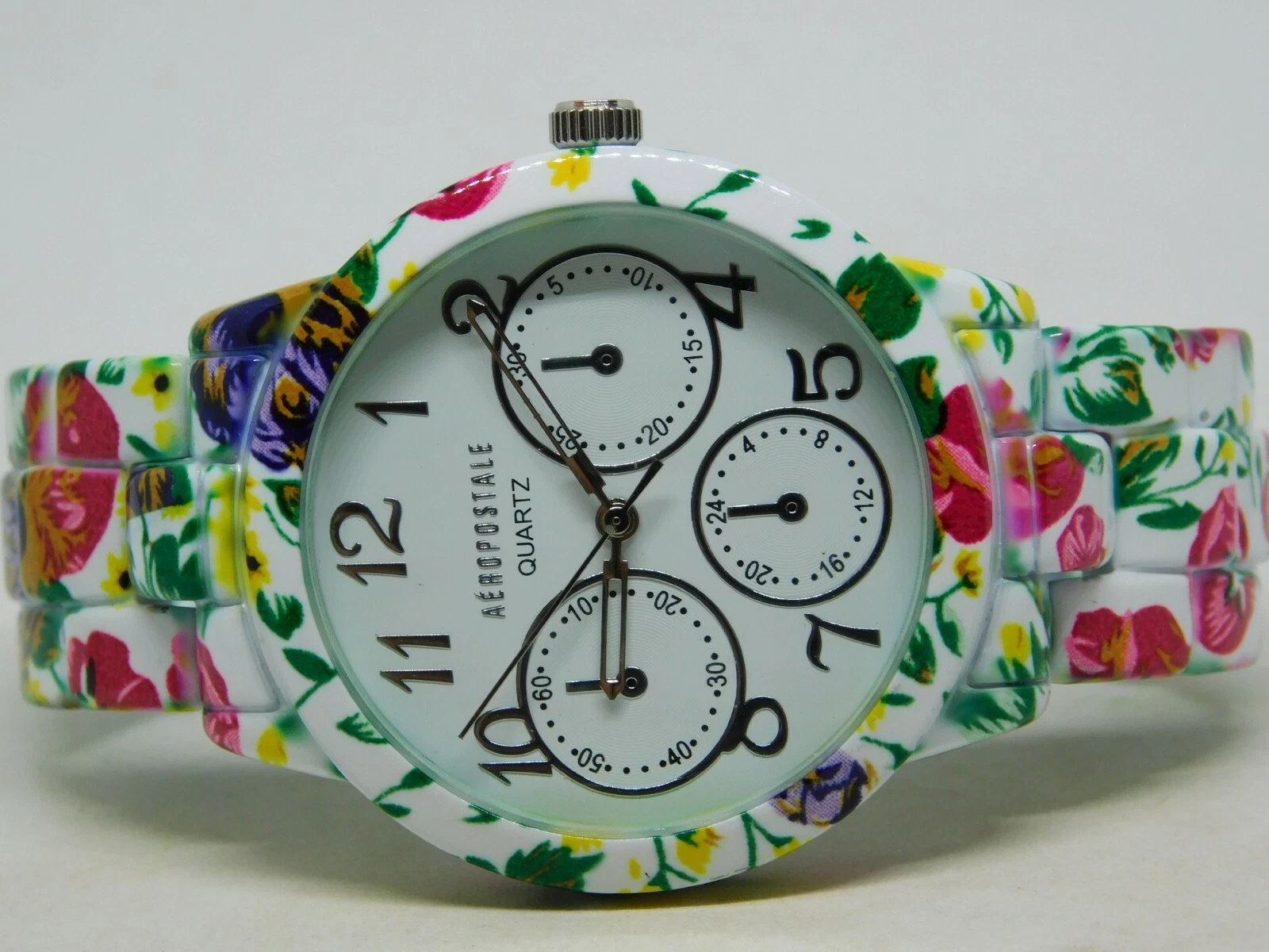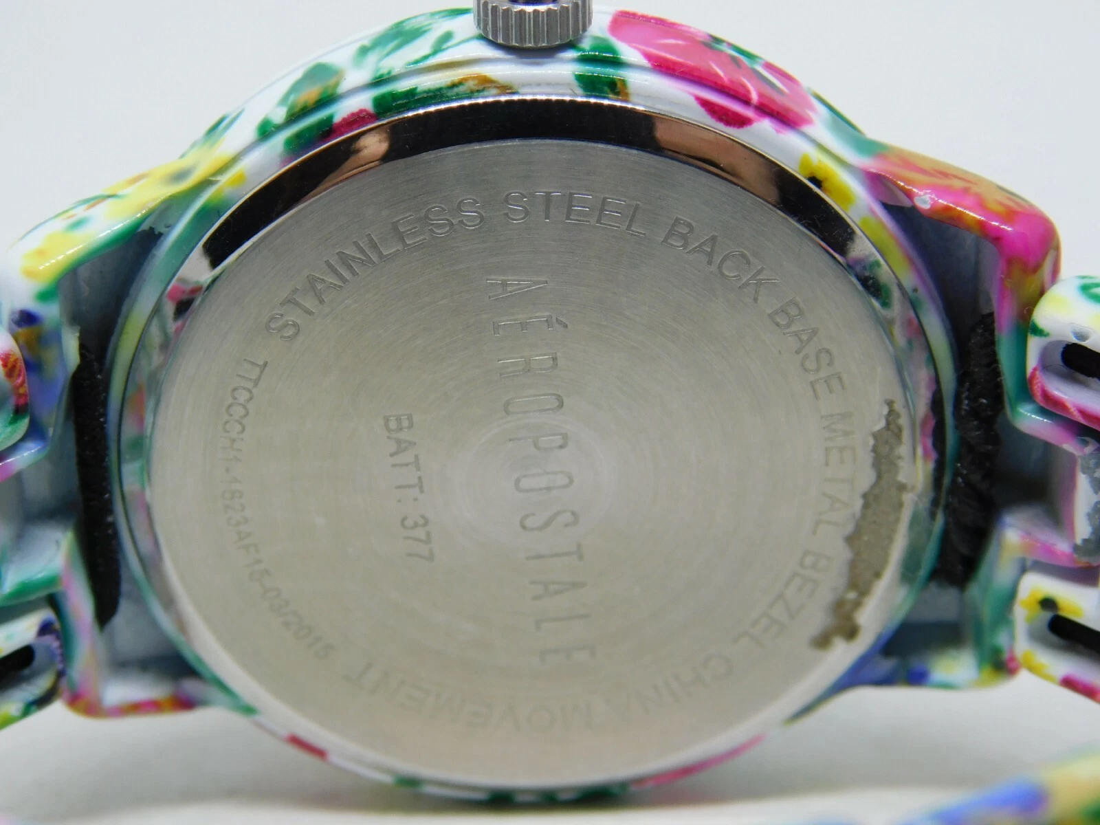 Aeropostale Flower Pattern Quartz Analog Women's Watch Sz. 6 1/2" New Battery