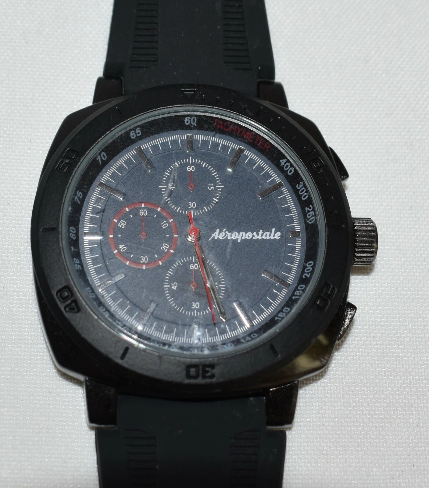 Aeropostale Men's Black Watch, China Movement, 34168, Stainless Steel Back