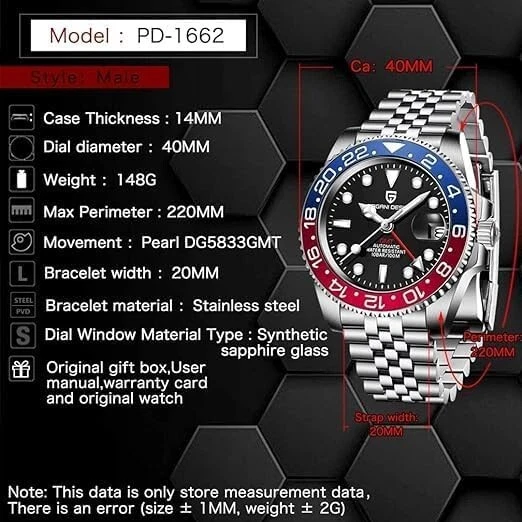 Pagani Design V3 Diver GMT Jubilee Automatic Bracelet Pepsi Bezel Version