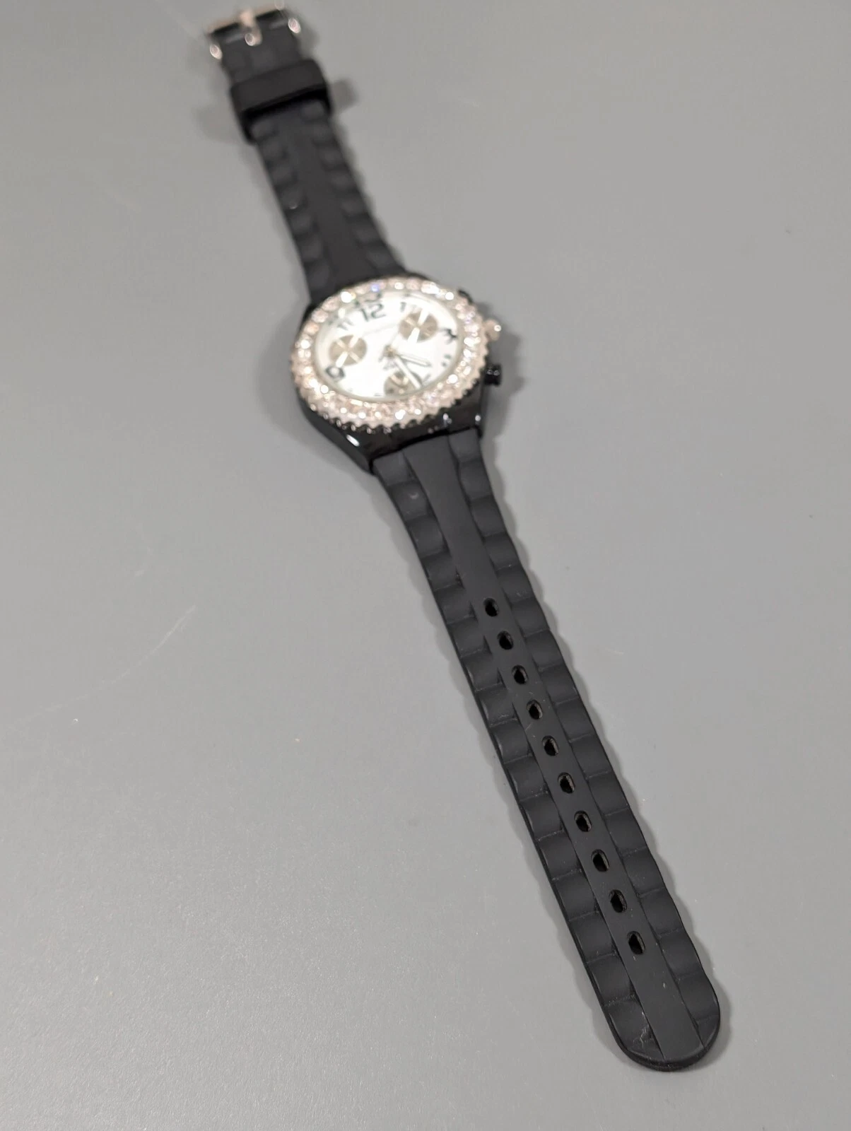 Aeropostale Womens Black Jelly Watch Crystal Accent Faux Chrono New Battery