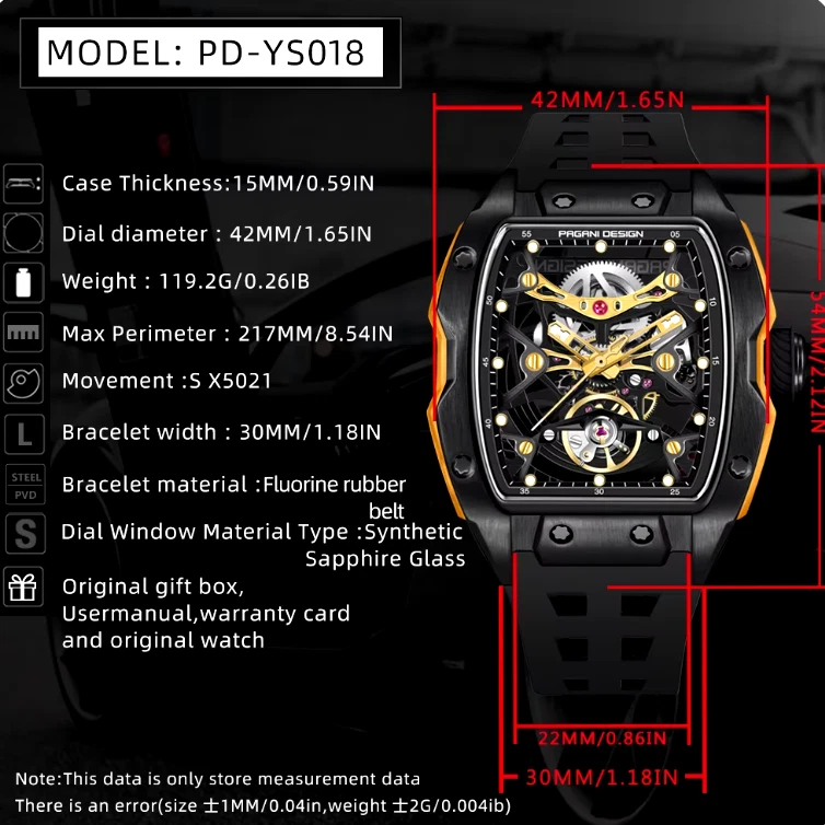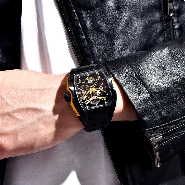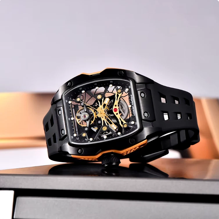 Pagani Design Mens Watch skeleton Dial Luminous Mens Watch Silicone Strap