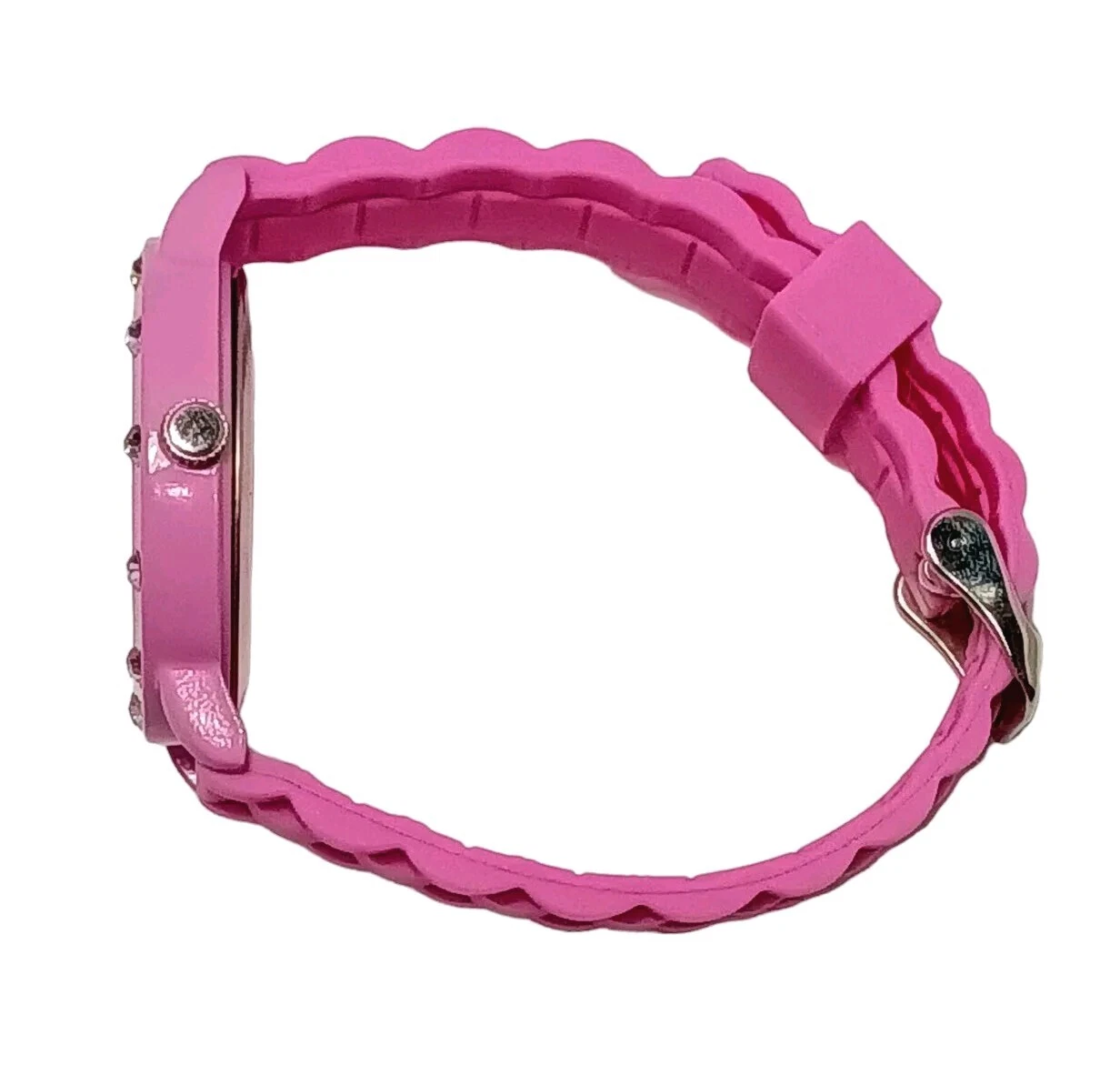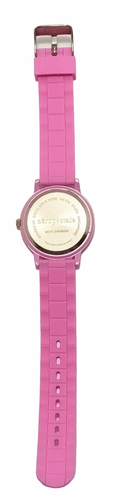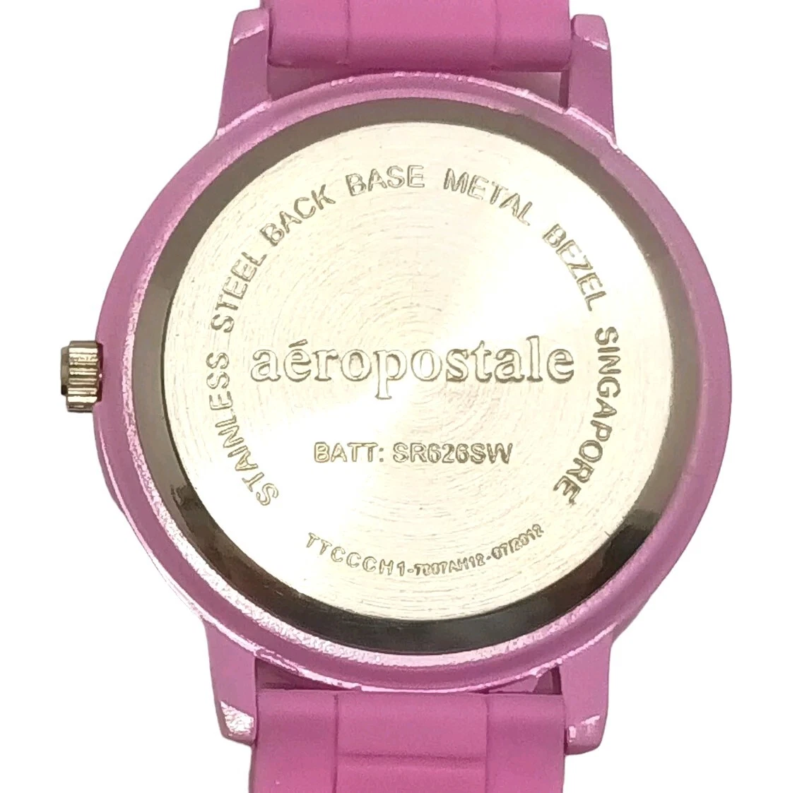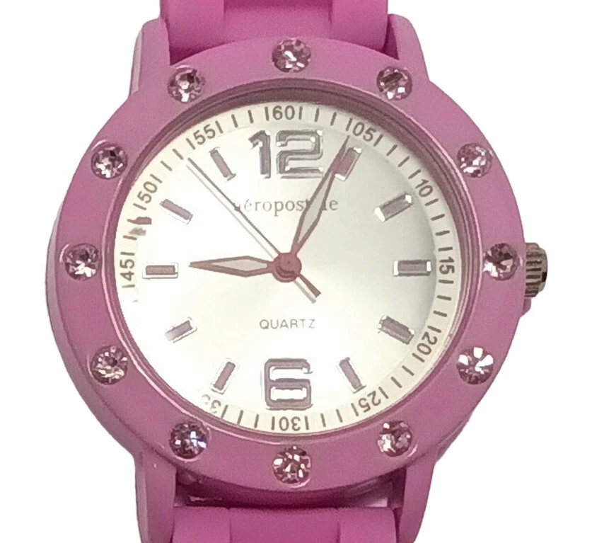 Pink Womens Aeropostale Quartz Watch +Storage Tub Rhinestone Bezel Silicone Band